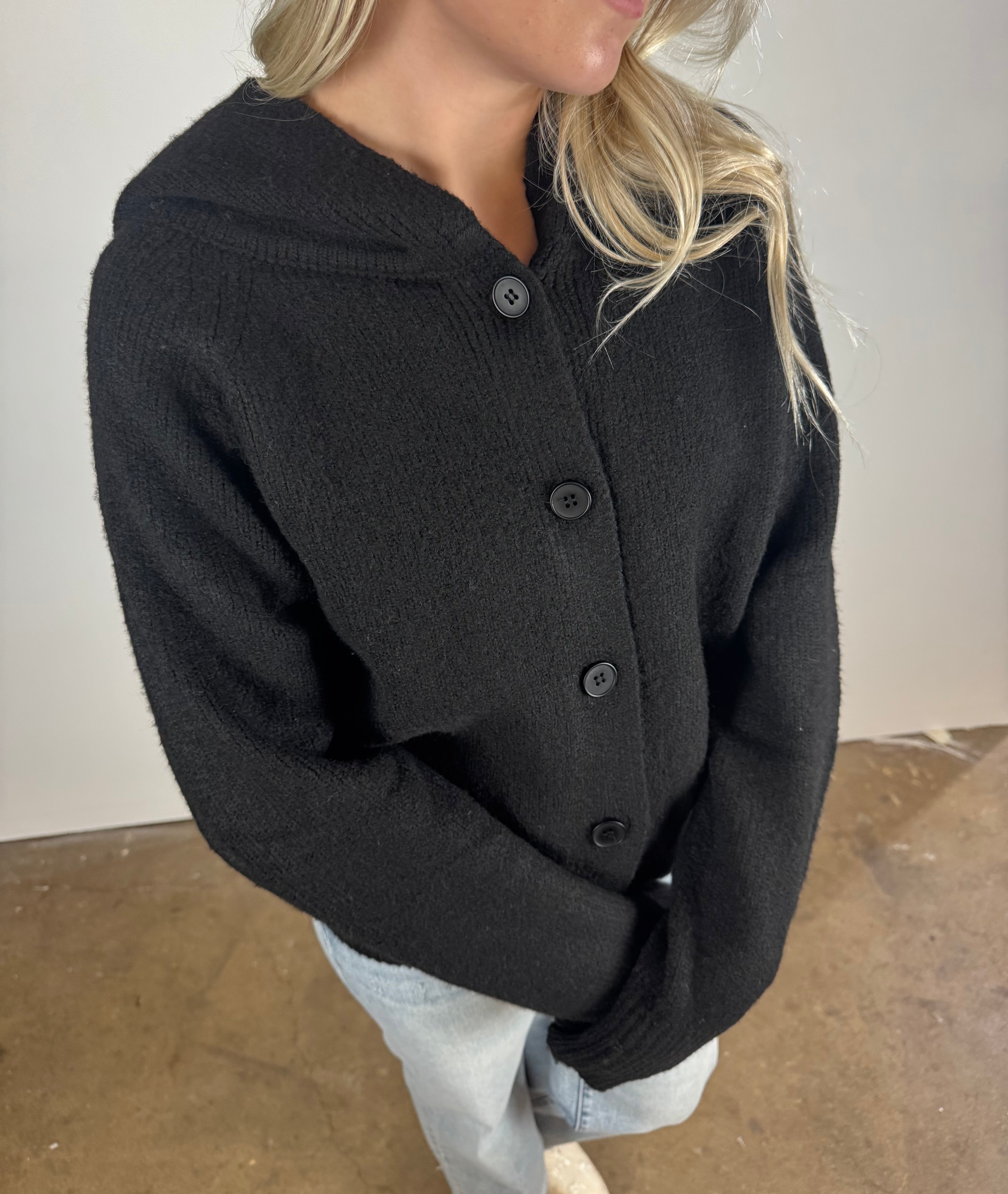 Meet the coziest little upgrade to your everyday basics — our Black Hoodie Cardigan. The relaxed fit, functional buttons, and subtle hood make it the perfect “throw-on-and-go” layer your winter wardrobe has been waiting for.