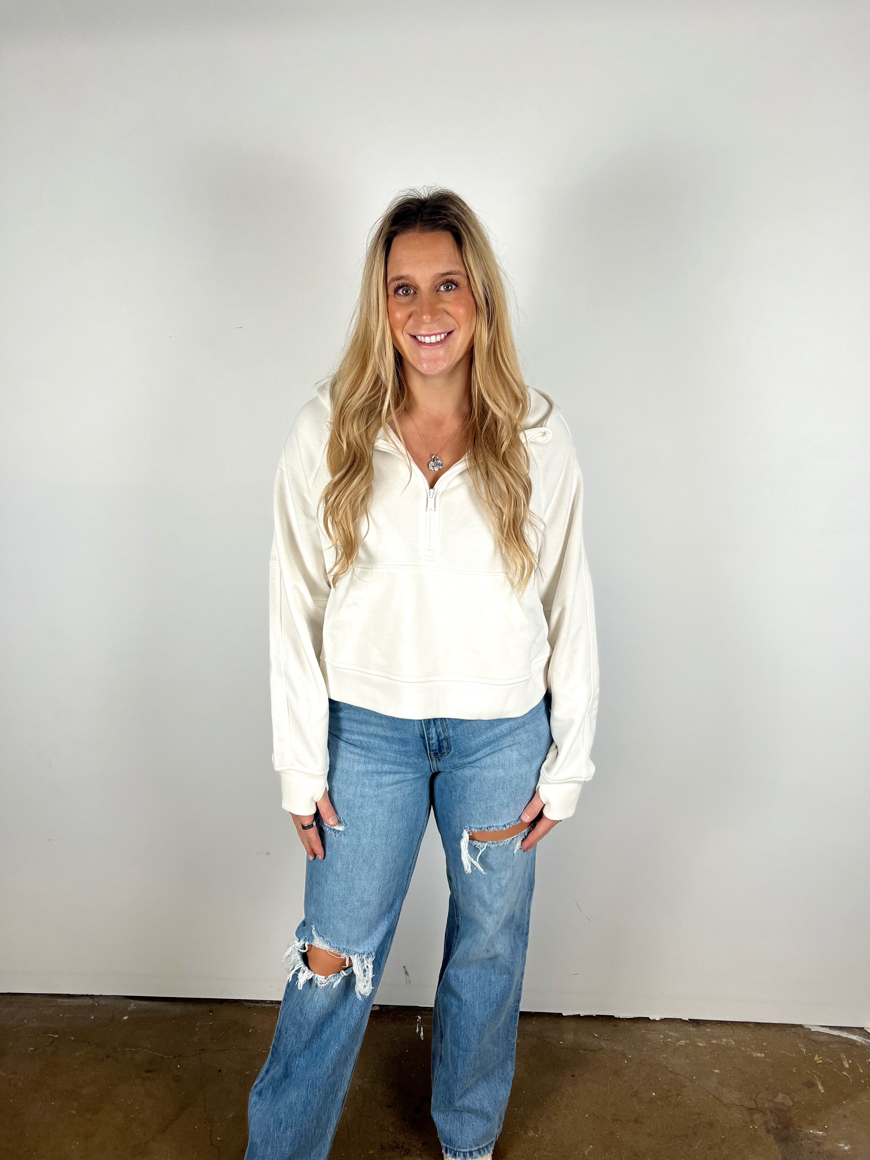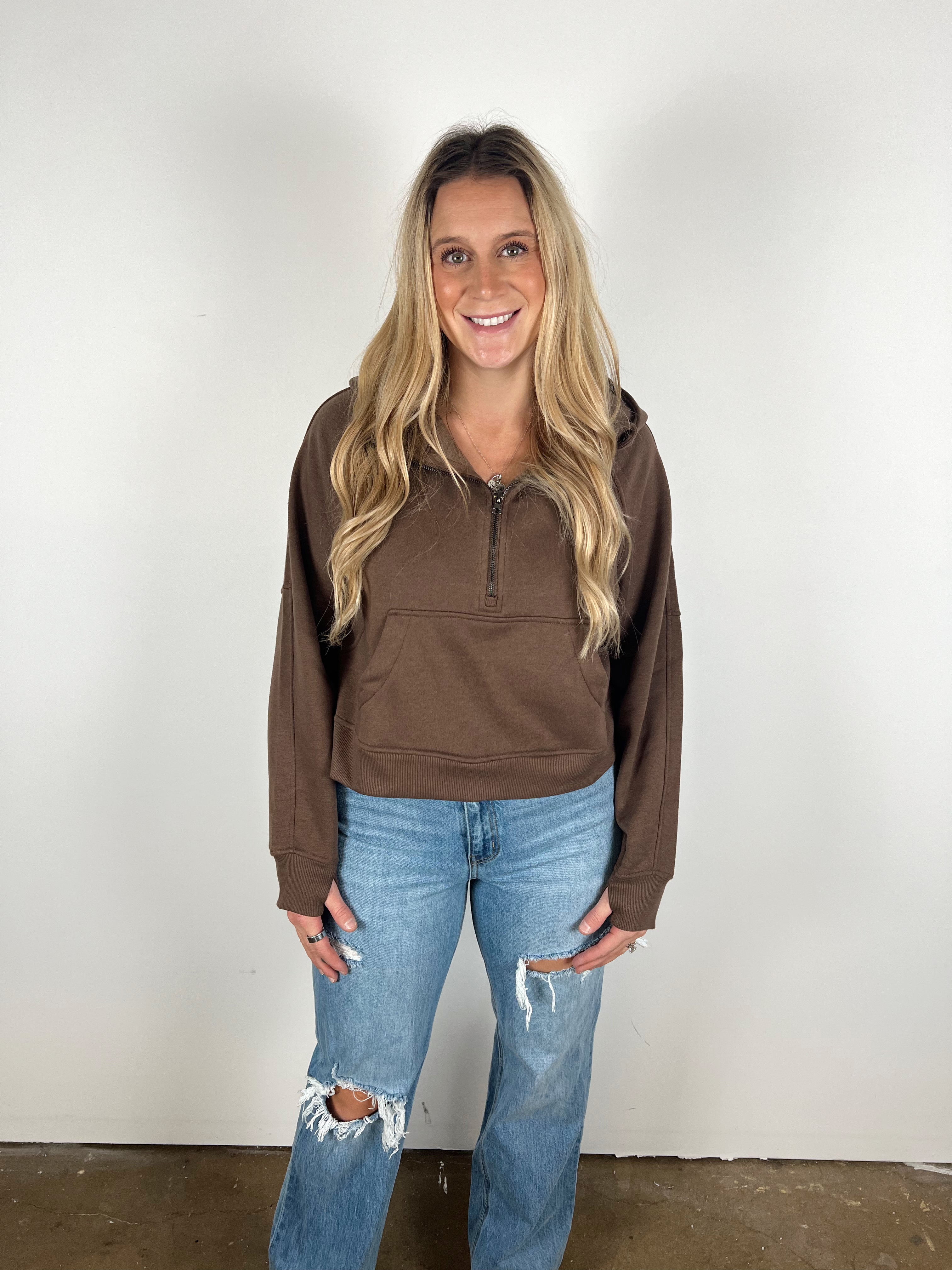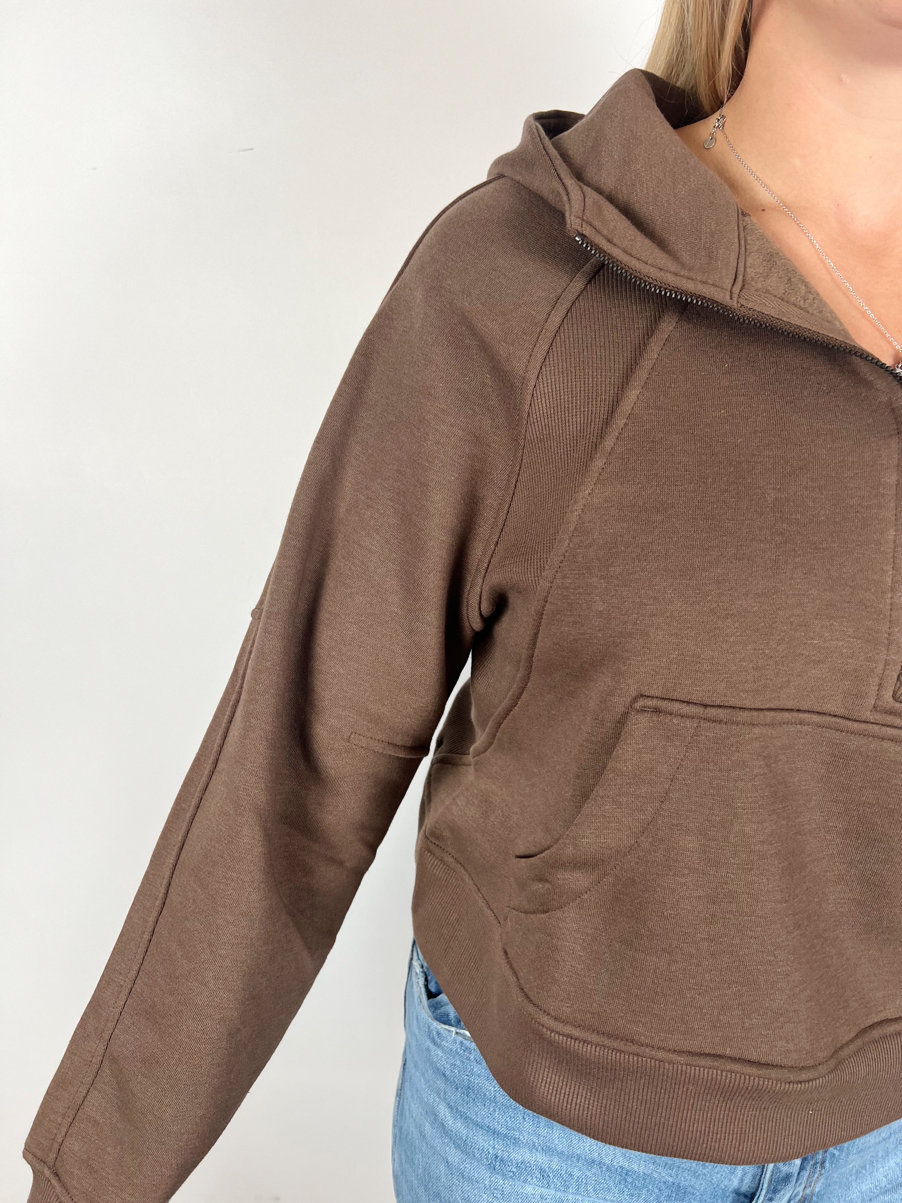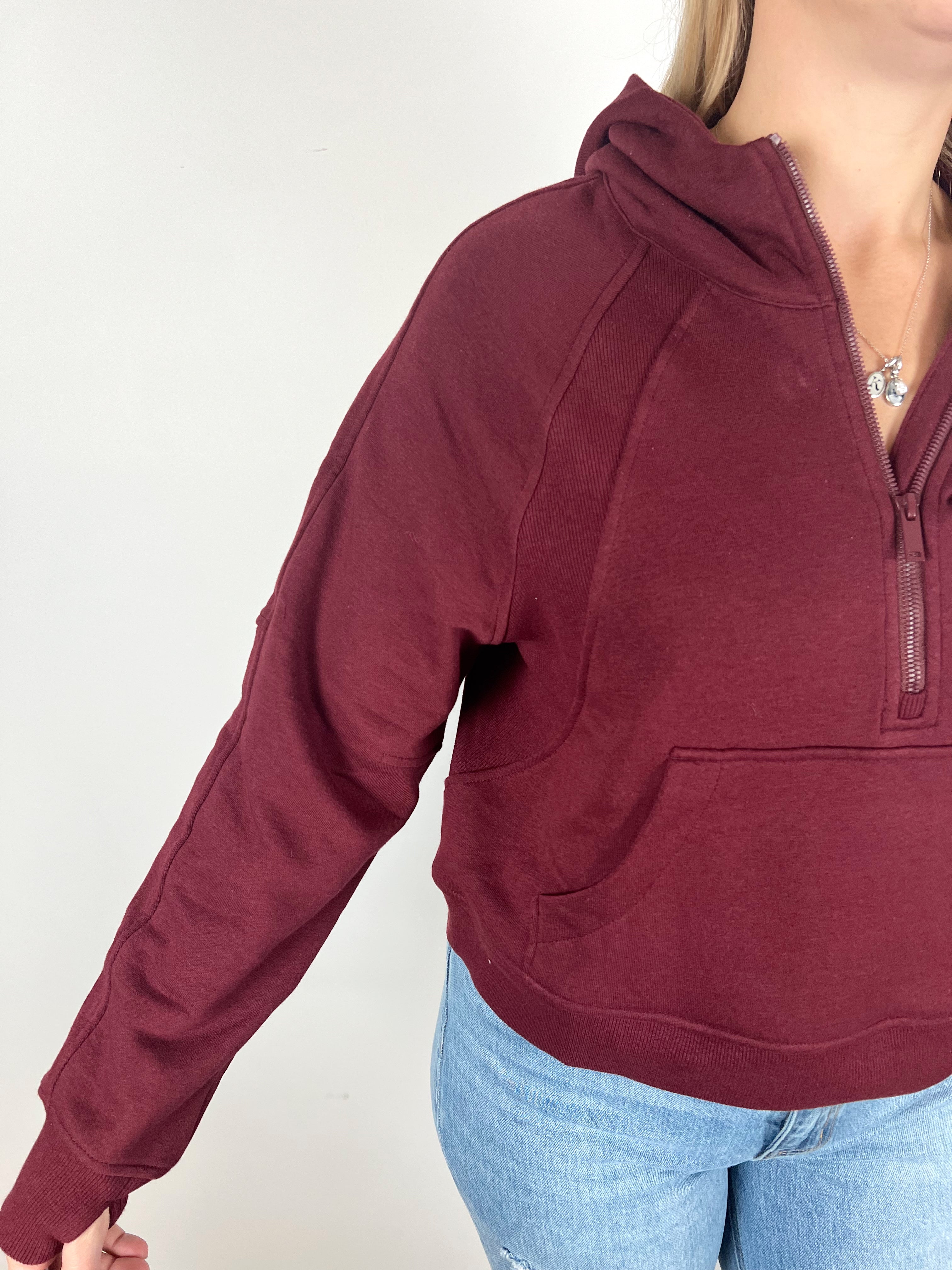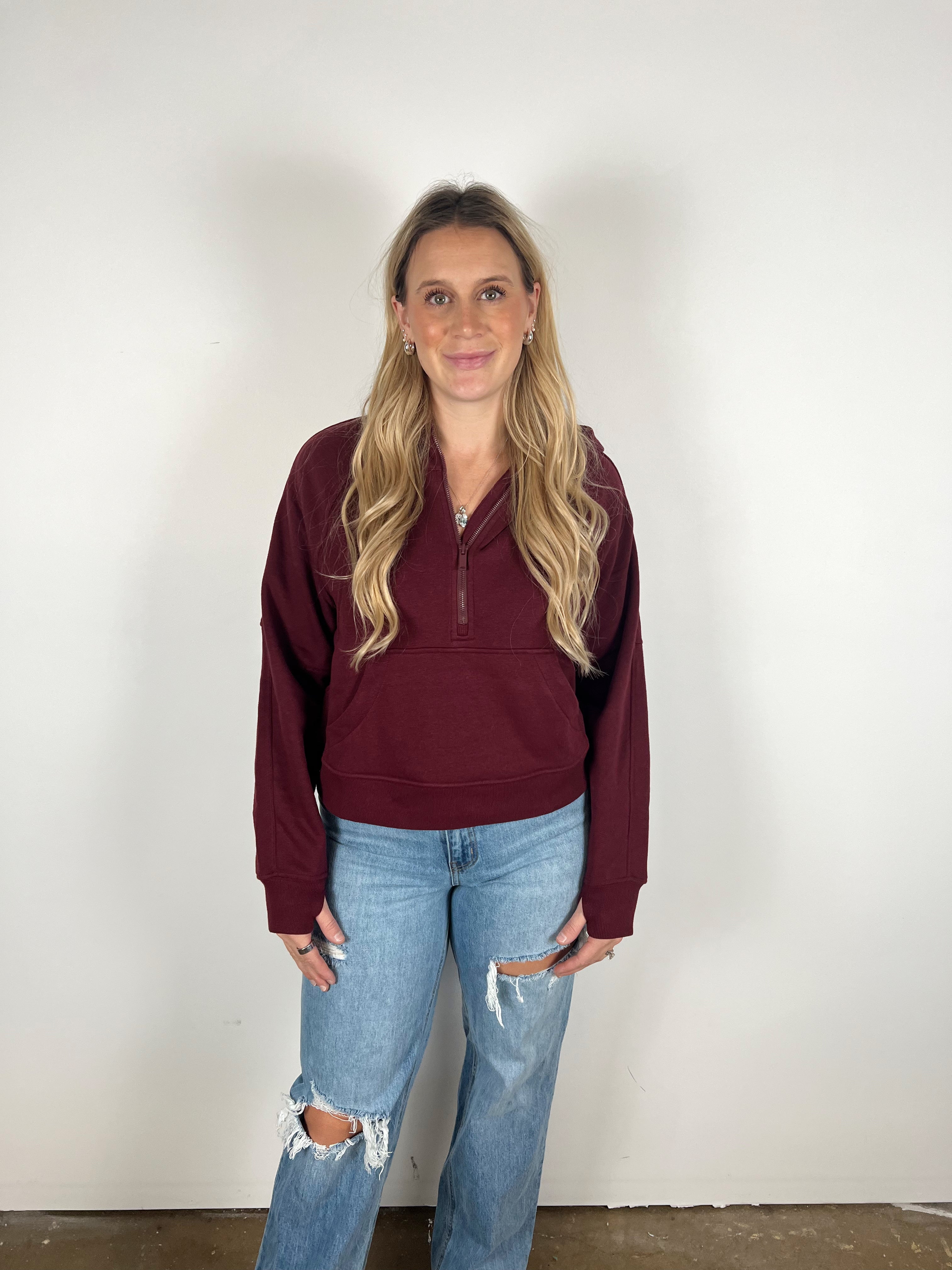 French Terry Fleece Quarter Zip Hoodie Sweatshirt