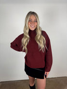 Add this stunning burgundy sweater to your closet before it’s gone — the perfect cozy-chic staple for every fall and winter moment.