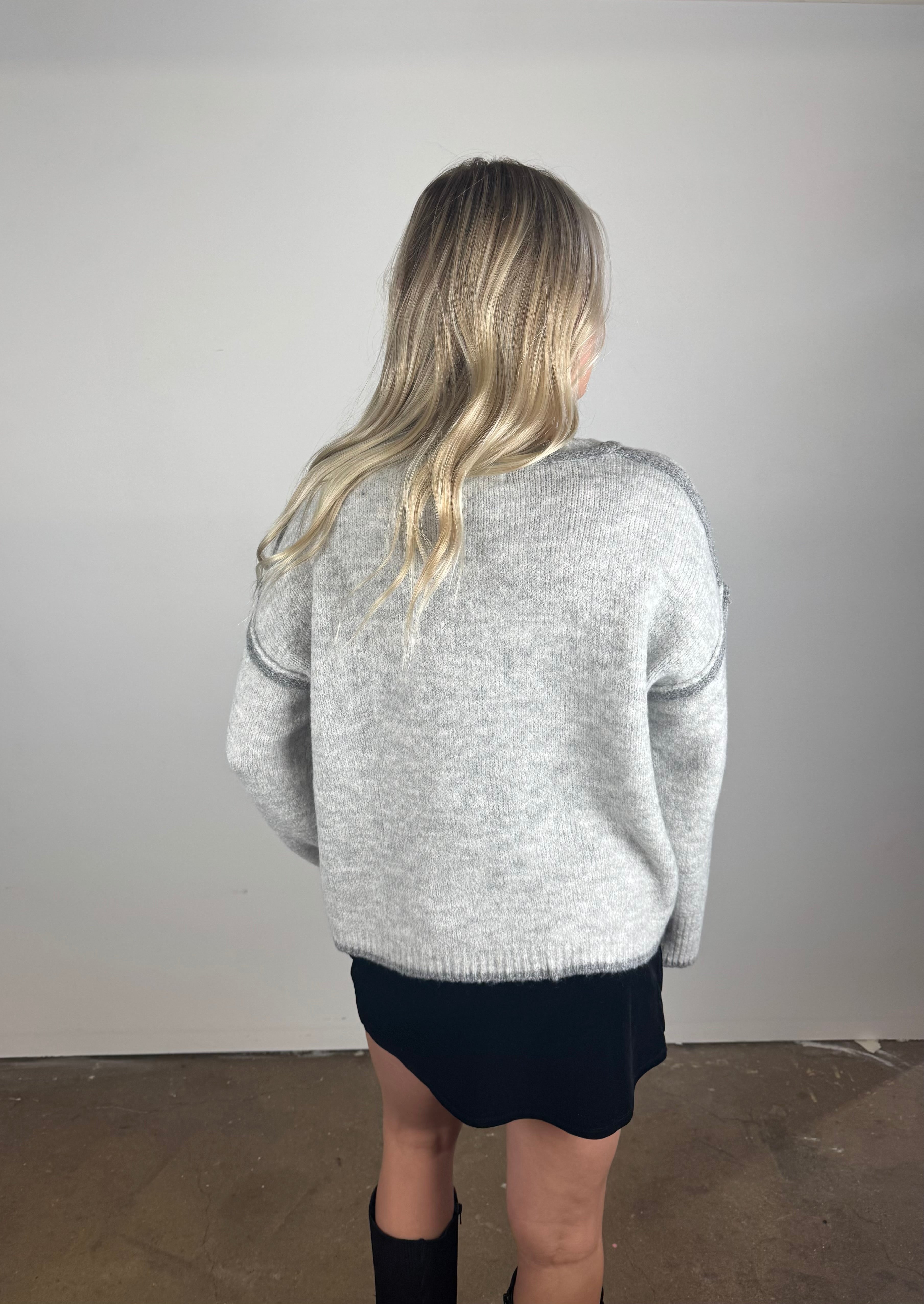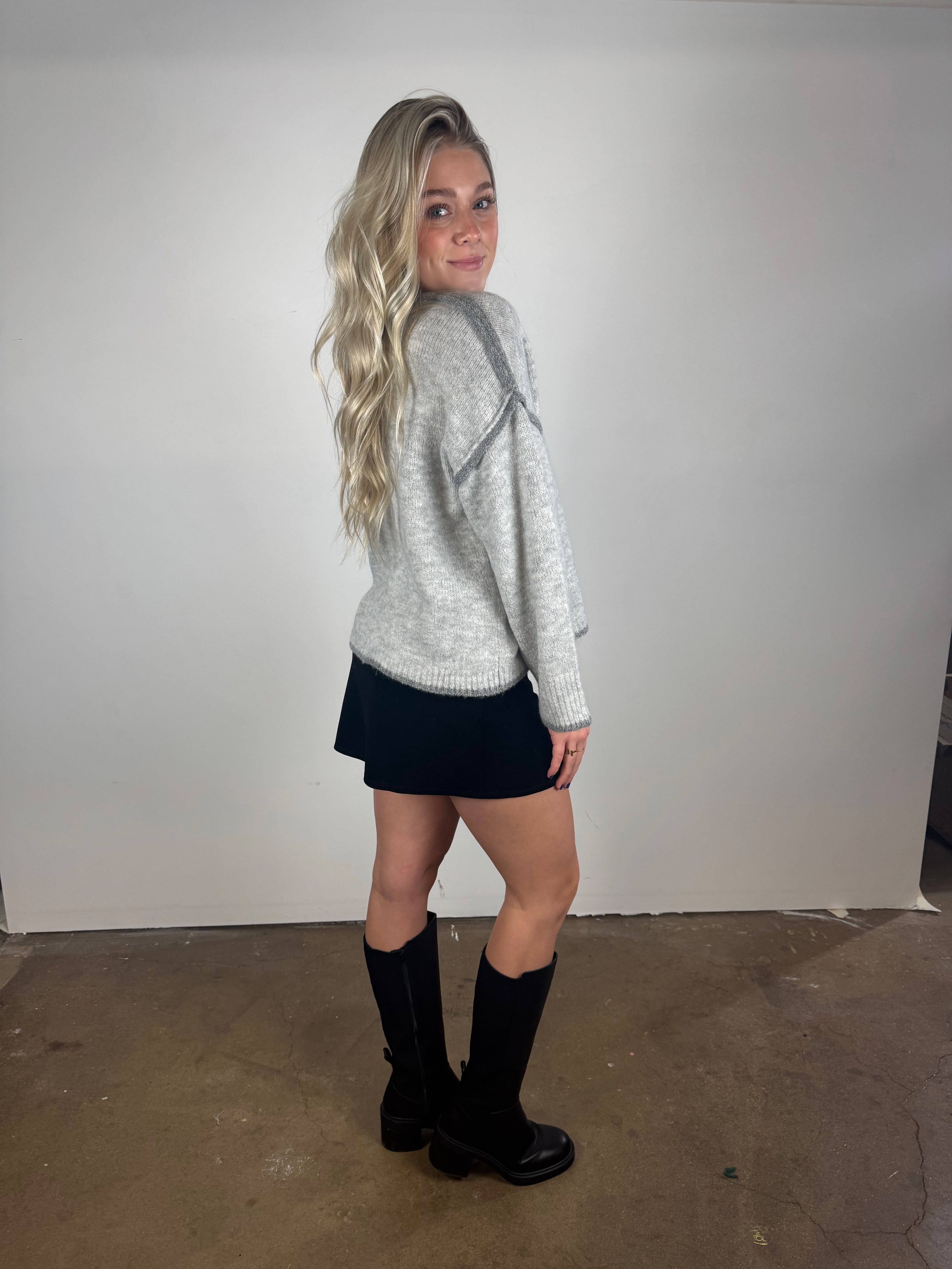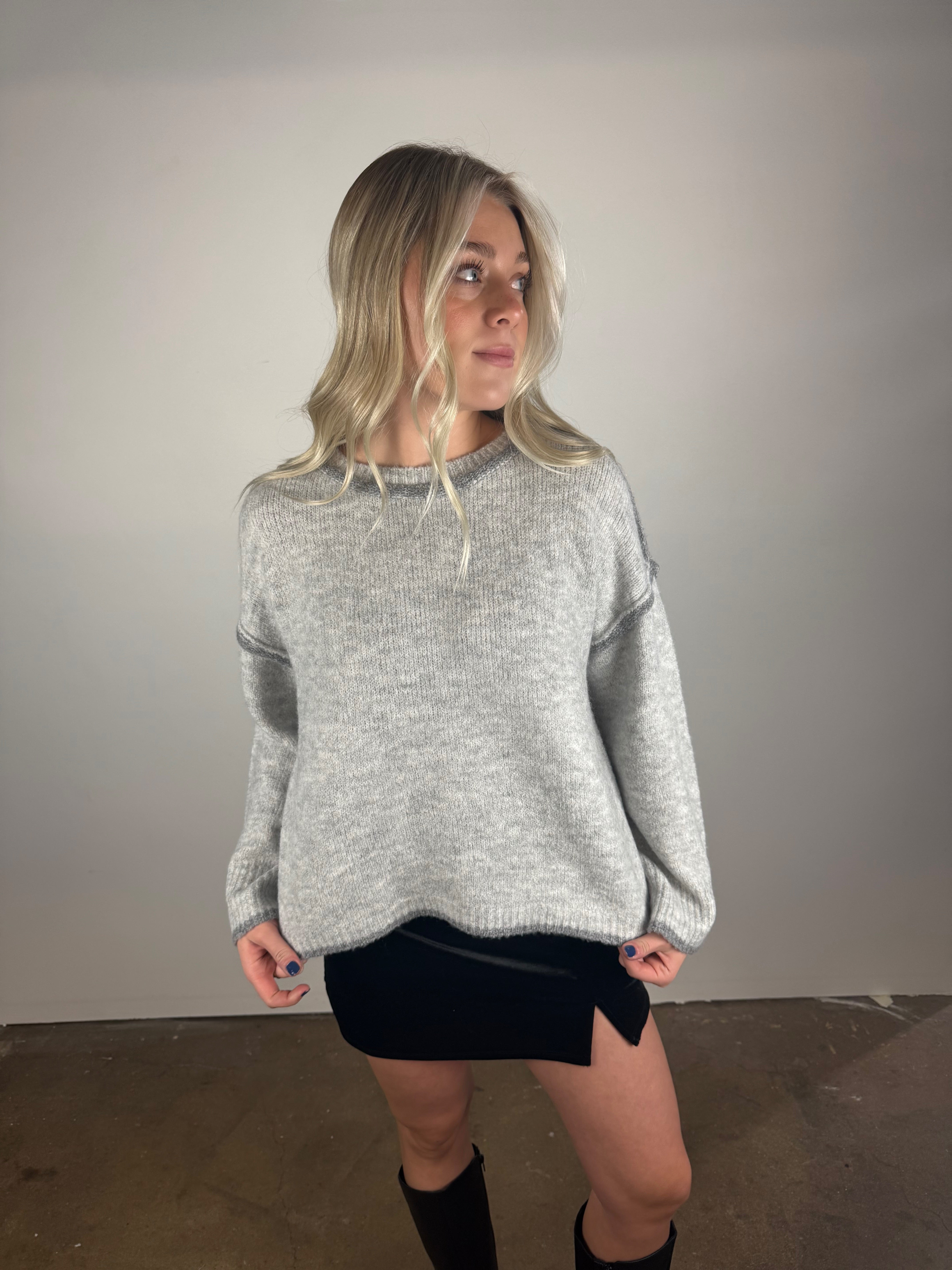 This heather grey sweater is the definition of easy, throw-on style—soft, slouchy, and perfectly relaxed. With exposed seam details and a slightly oversized fit, it gives that cool, effortless vibe while keeping you cozy all season long.