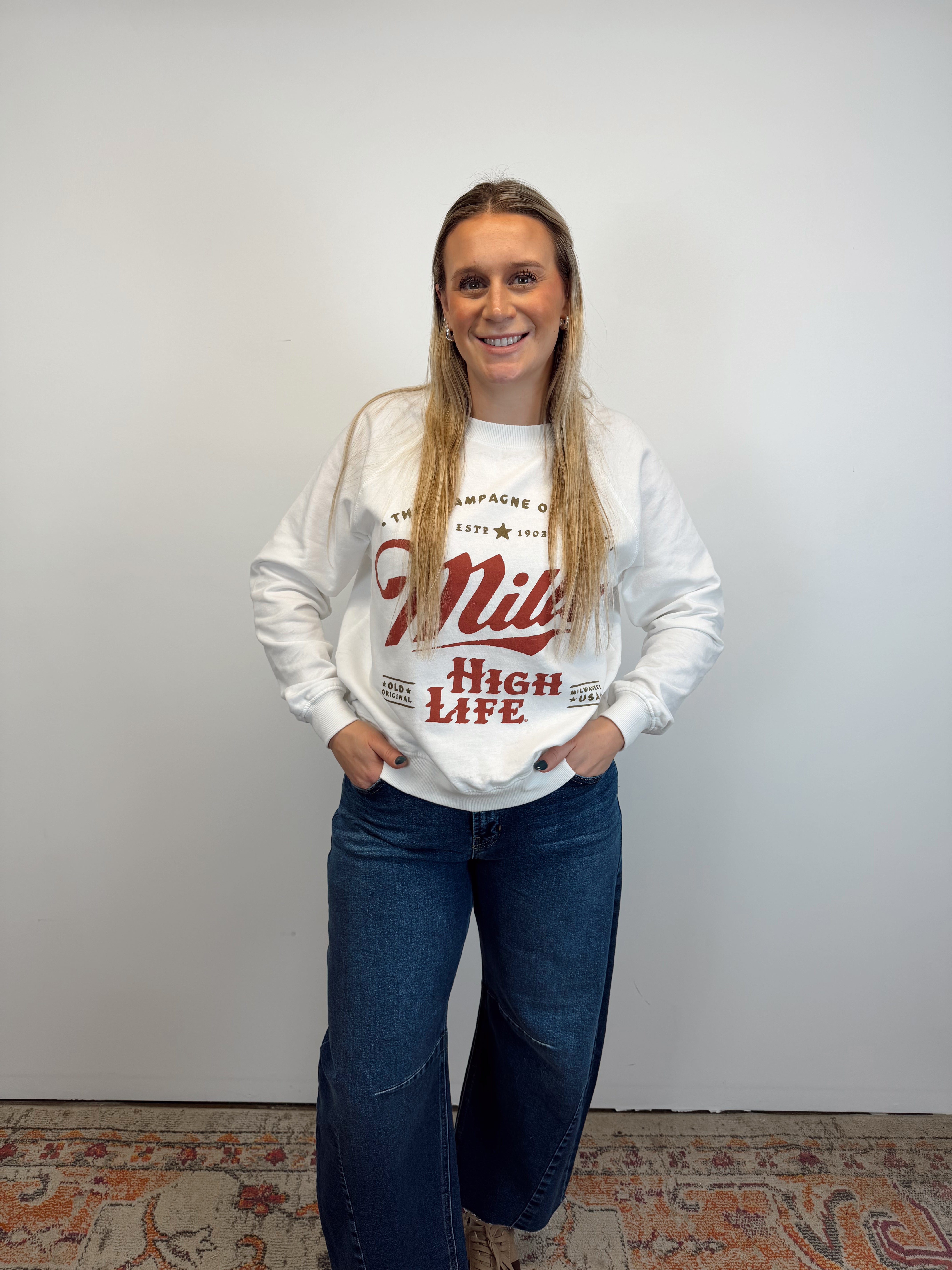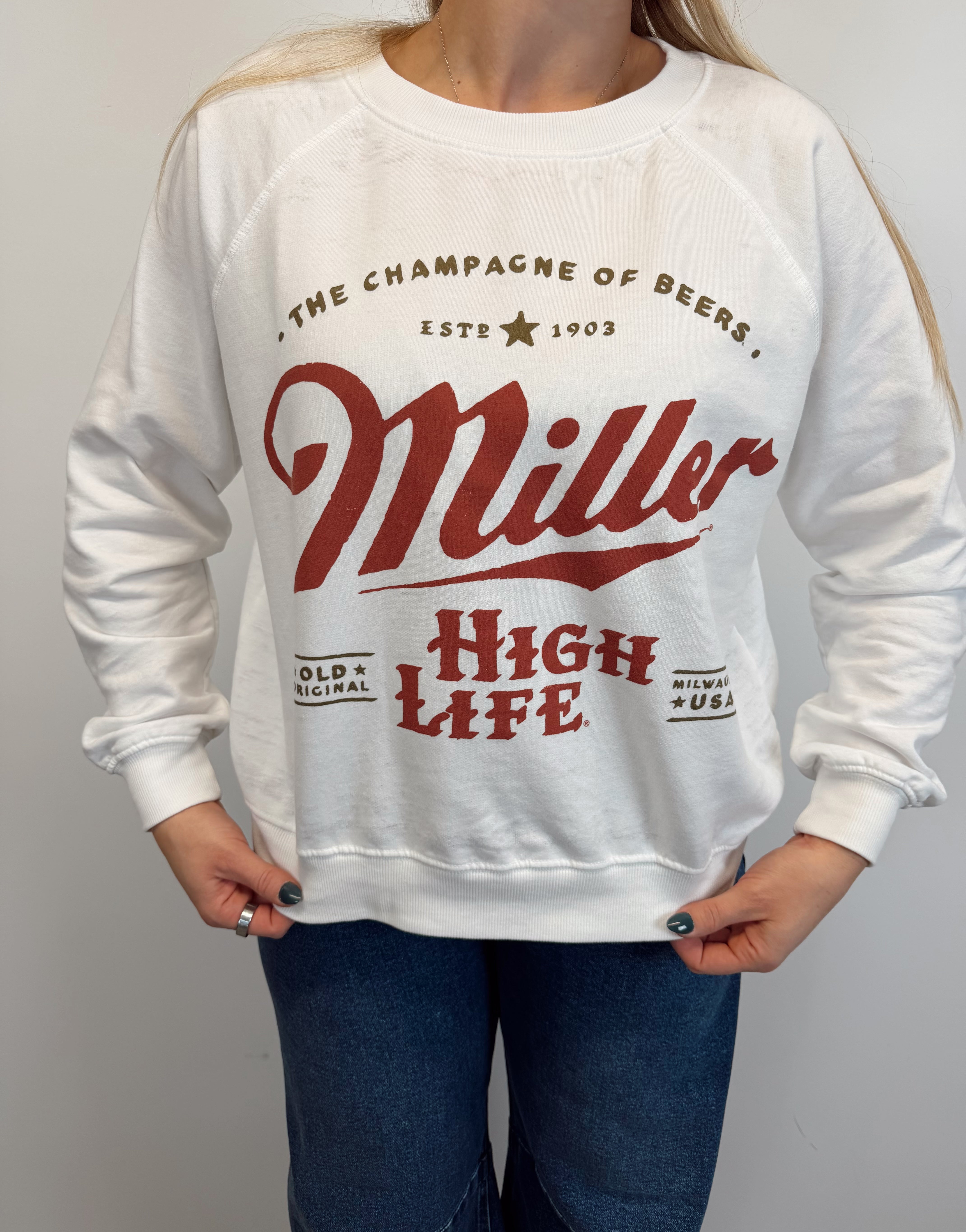This Miller High Life graphic sweatshirt brings classic, throwback vibes with an effortlessly cool feel. Featuring a relaxed fit and timeless graphic, it’s the perfect casual layer for weekends, game days, or kicking back in style.