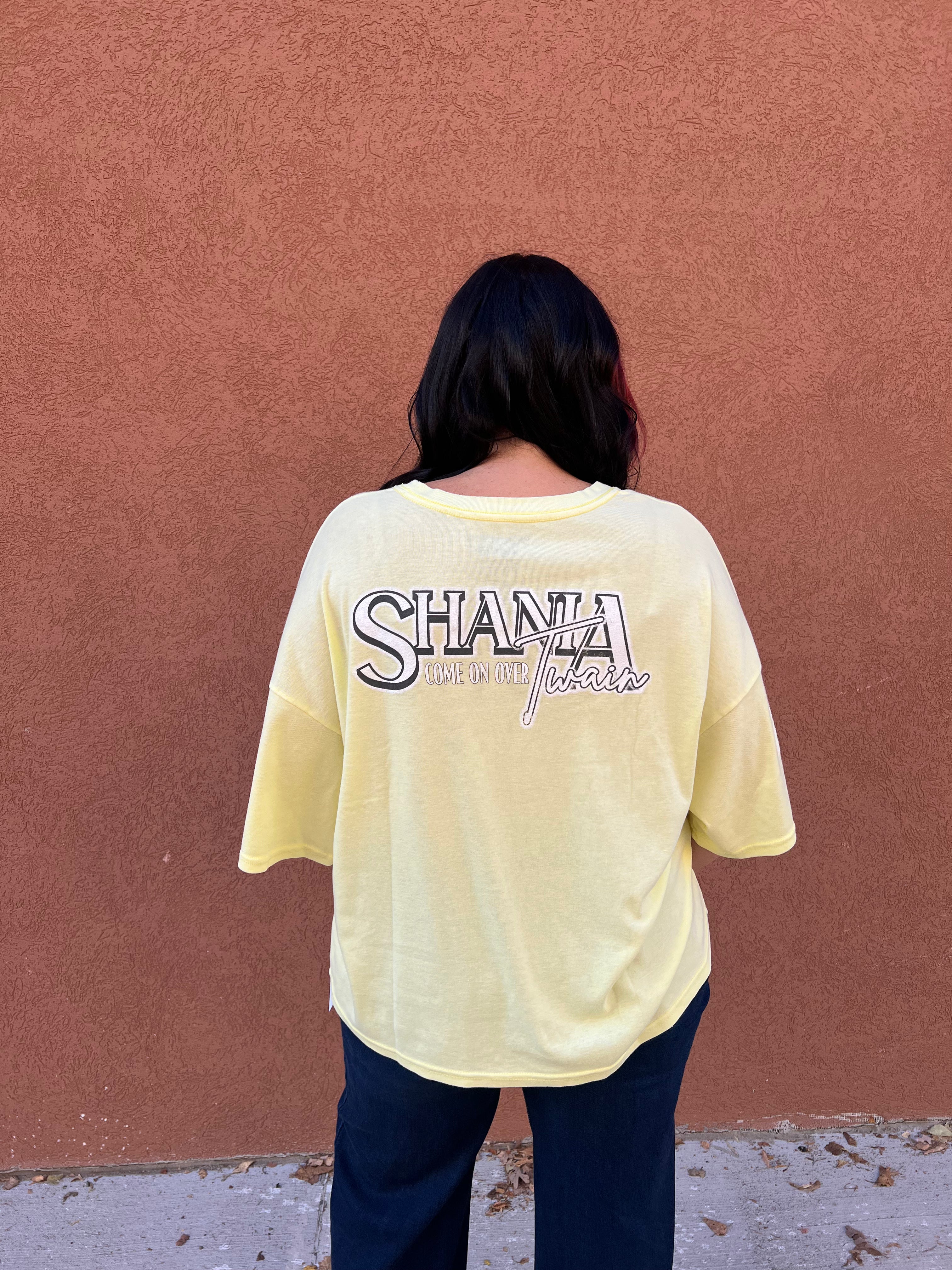 This one-size oversized Shania Twain graphic tee brings that effortlessly cool, vintage vibe with a soft yellow wash bold retro print. Its relaxed, roomy fit makes it the perfect statement piece for laid-back weekends, concerts, or casual layering with denim and boots.