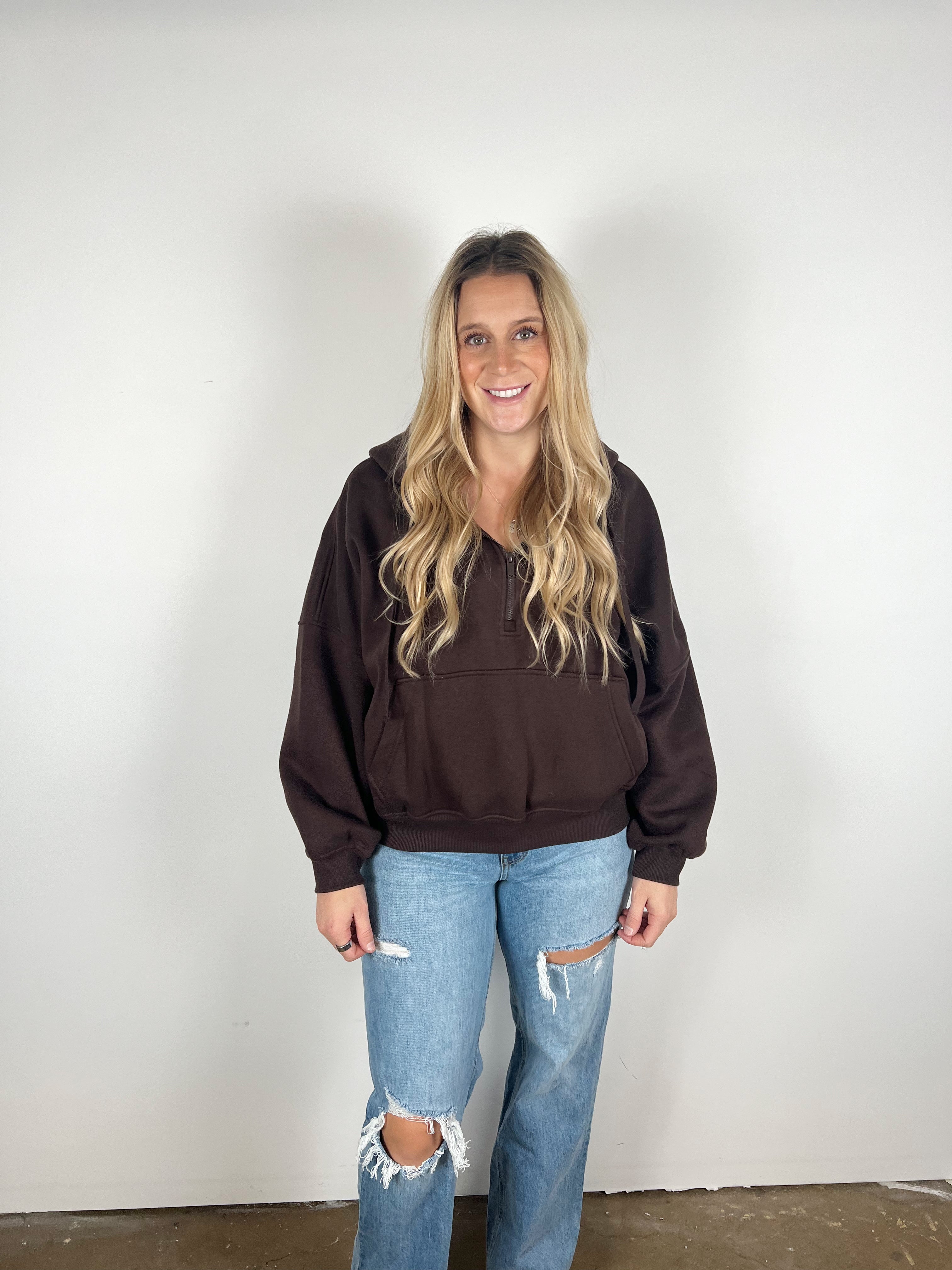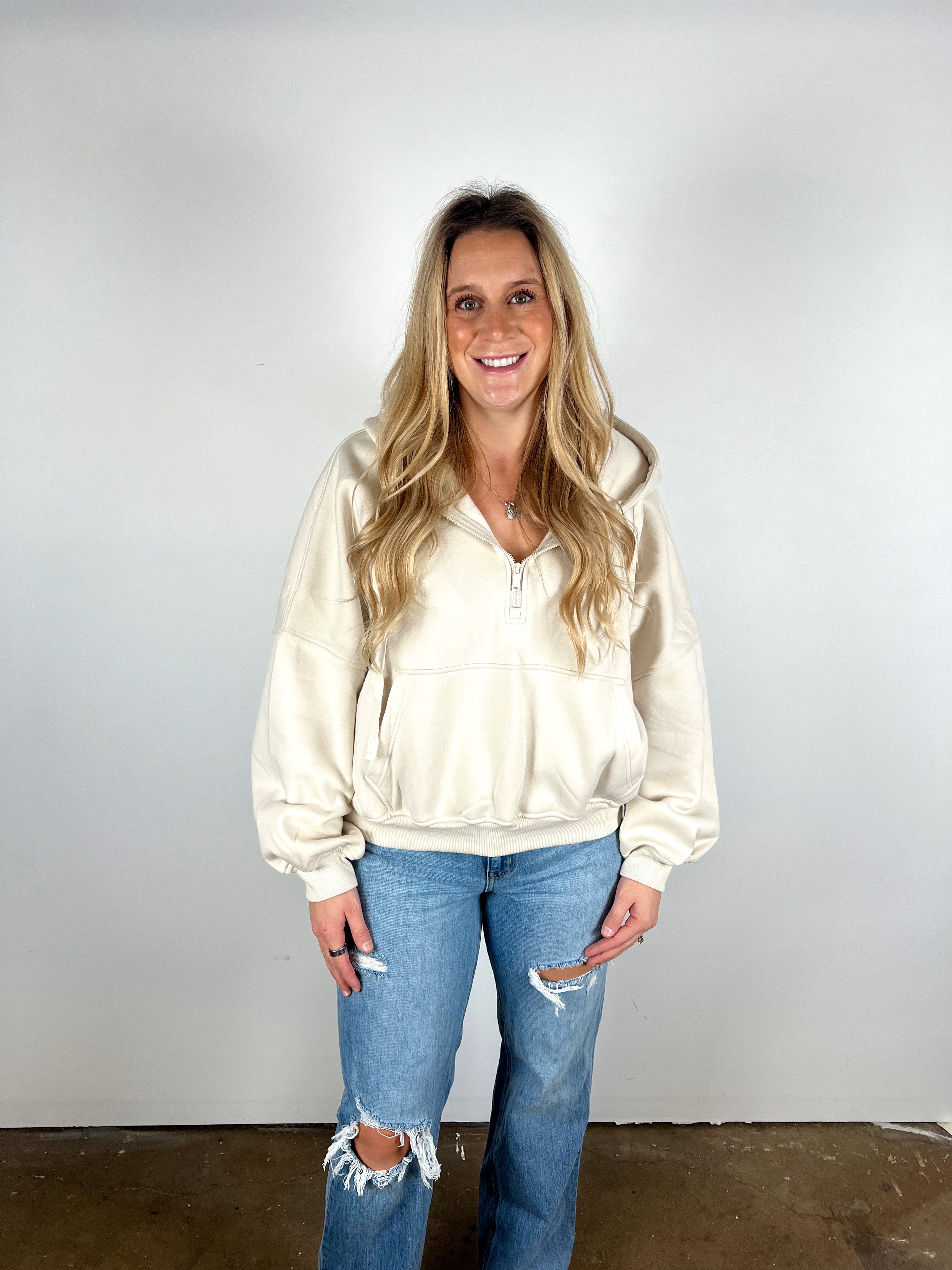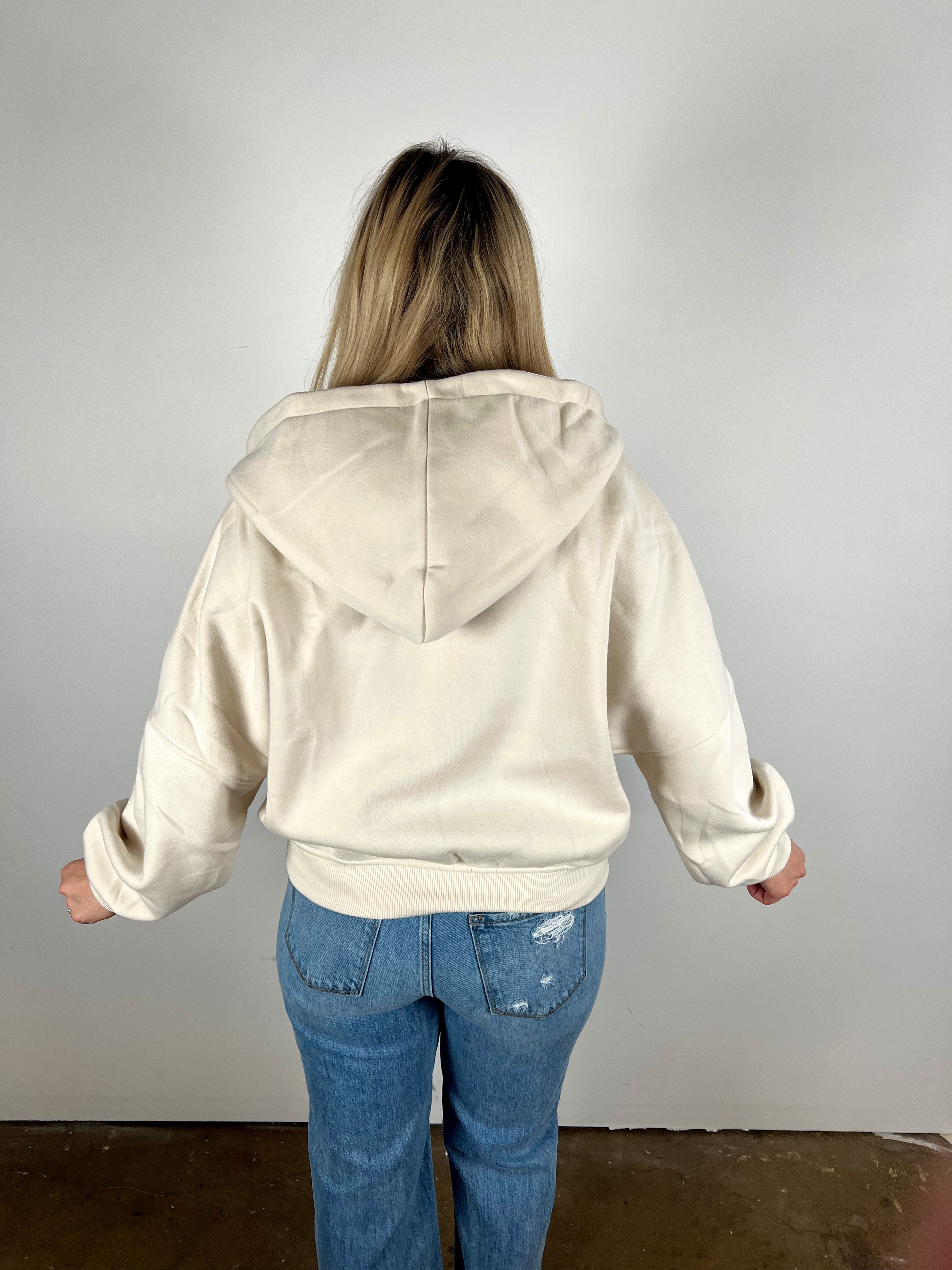 Snag the softest, cutest staple of the season at an unbeatable doorbuster price! This fleece-lined cropped hoodie gives you that perfect laid-back look with a cozy half-zip, relaxed sleeves, and a flattering slightly-cropped fit. The neutral colors make it an instant match-with-anything favorite.