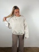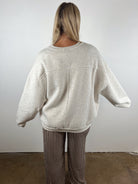 This oatmeal oversized sweatshirt is the ultimate blend of comfort and style. With its relaxed fit, soft fleece feel, and effortlessly cool vibe, it’s perfect for lounging, errands, or pairing with patterned pants for that laid-back, chic look. A go-to staple that keeps you cozy while still looking put together.