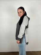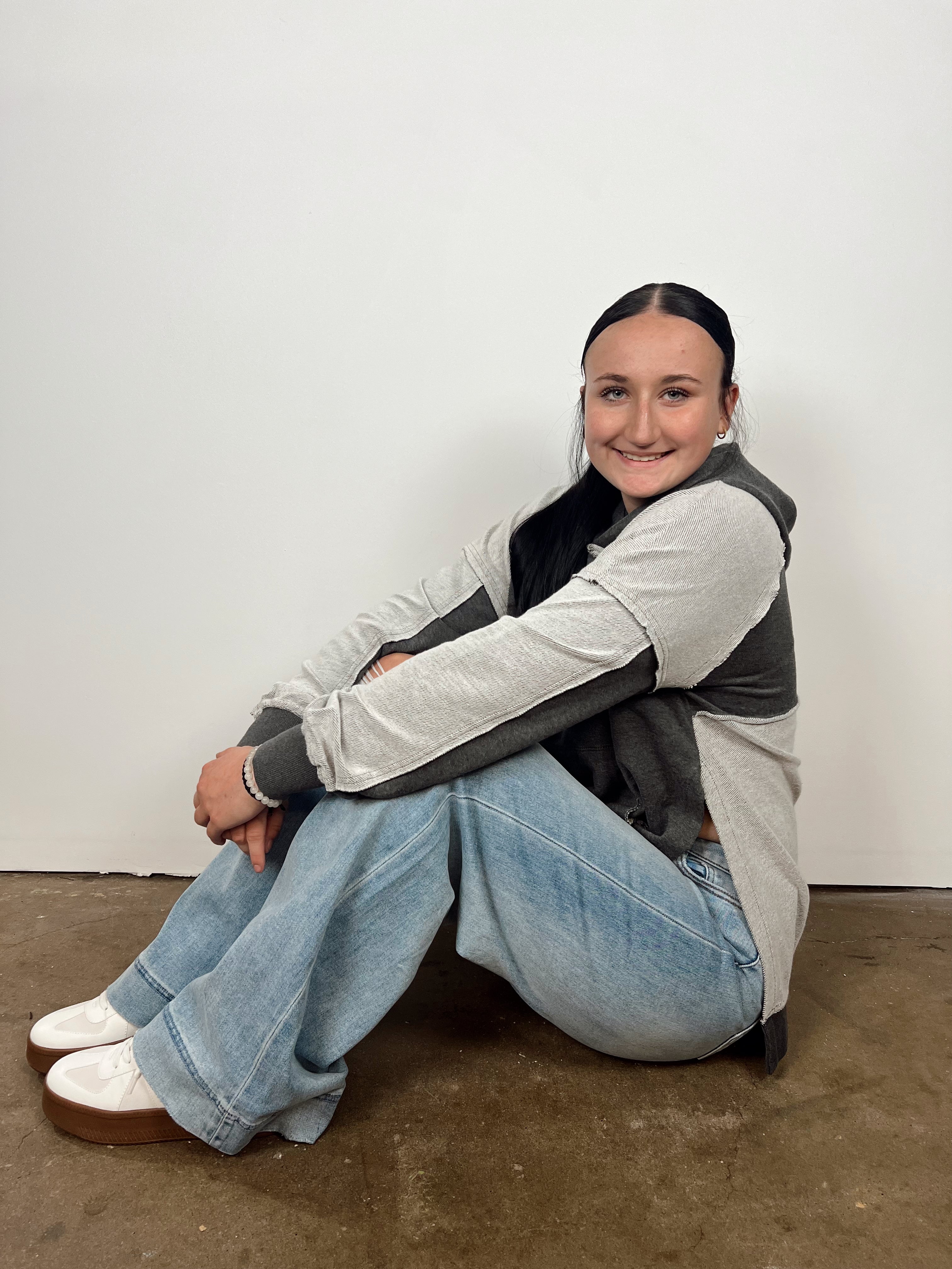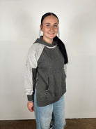 This color-block hoodie is the perfect mix of casual comfort and everyday style. Designed with contrasting gray tones for a laid-back, sporty vibe, it features a soft fleece feel and a relaxed fit that’s perfect for cozy days or weekend errands. Complete with a front kangaroo pocket and subtle raw-edge detailing, it’s the go-to hoodie you’ll live in all season long.