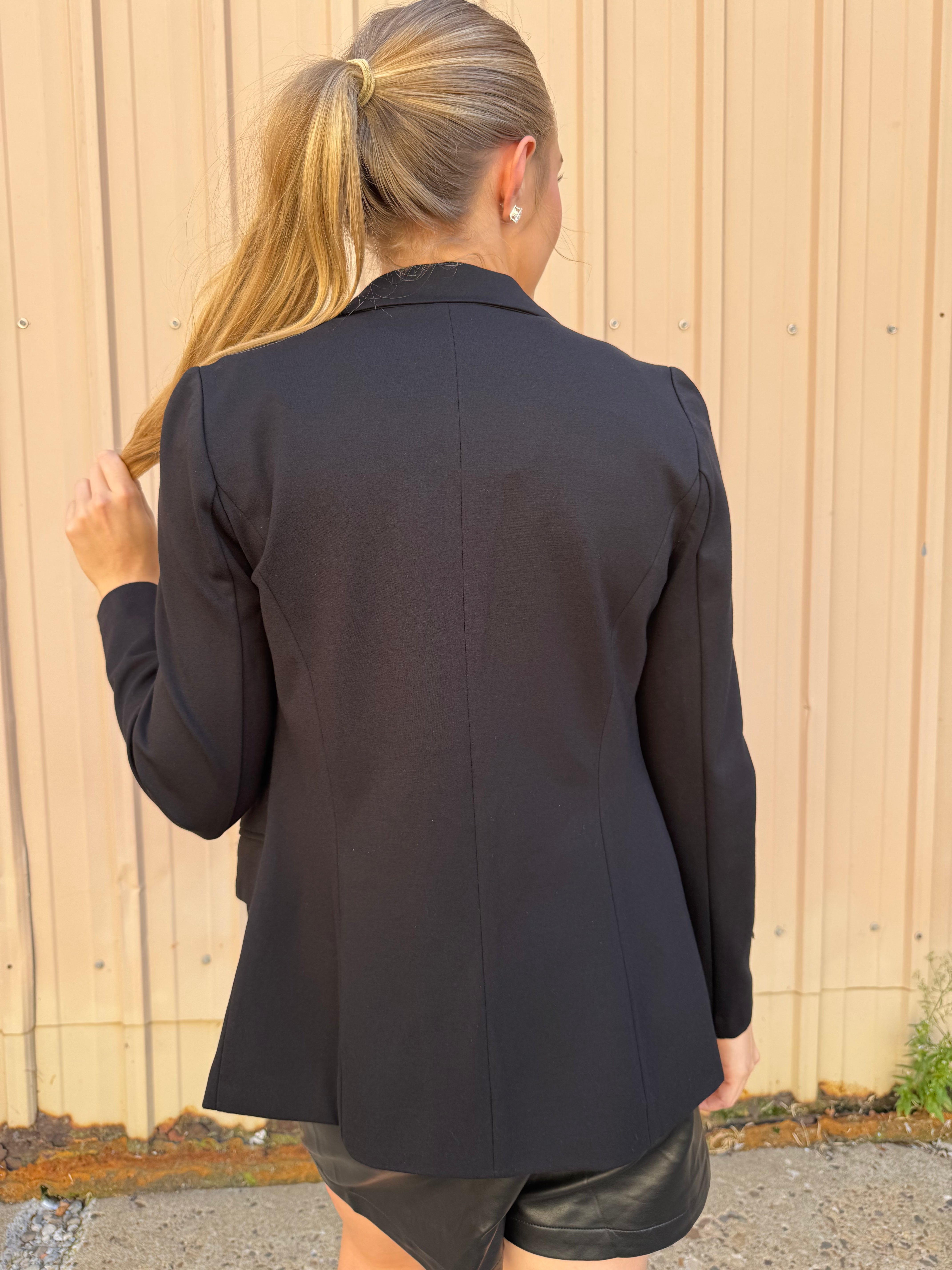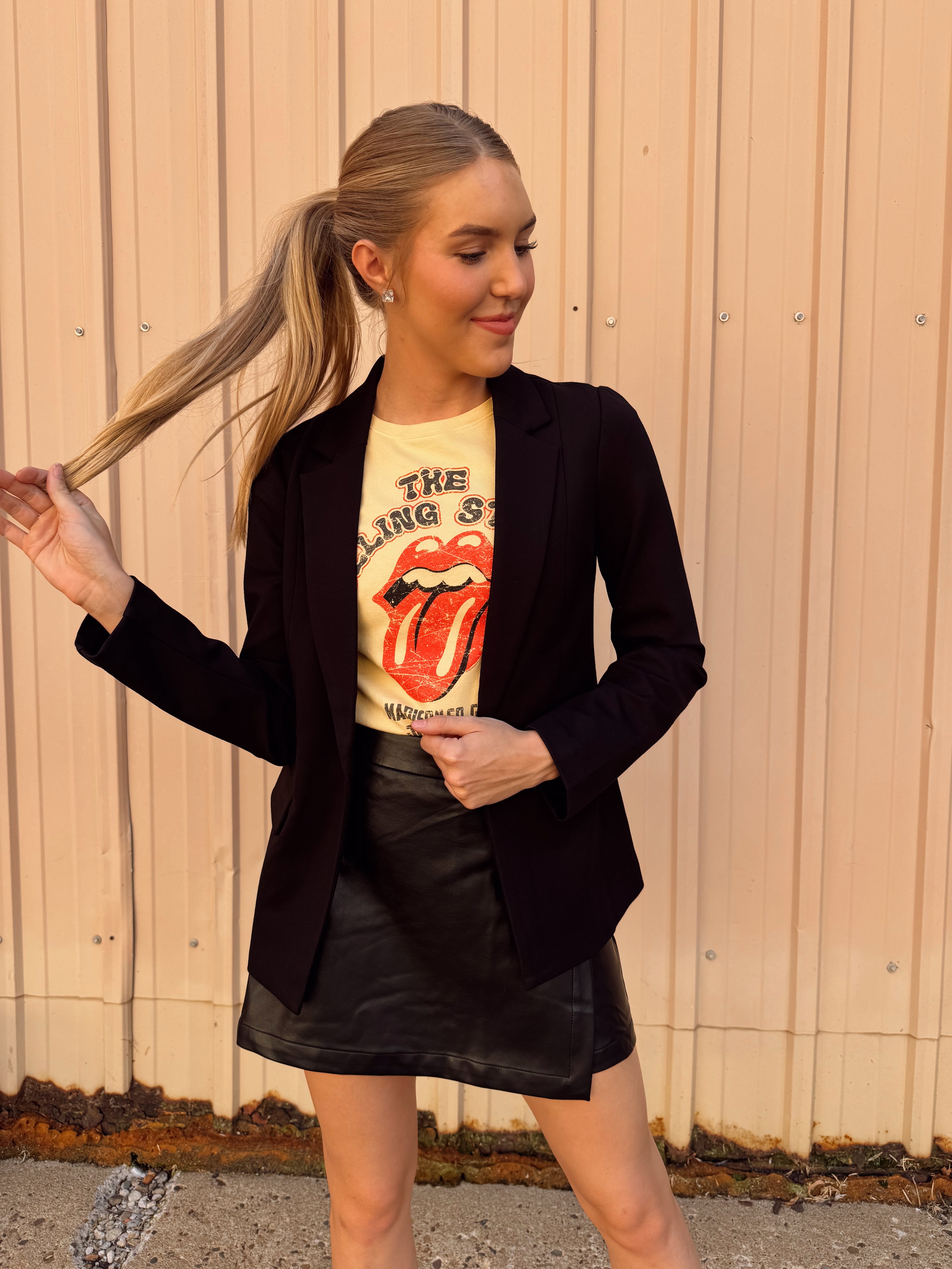 A timeless staple with a modern twist- this blazer was made to elevate any outfit. Designed with a tailored silhouette, sleek lapel, and just-right length, it gives you that polished look without feeling stuffy. Whether you're pairing it with denim for a chic everyday vibe or layering it over a dress for a night out, this piece is the definition of versatile style.