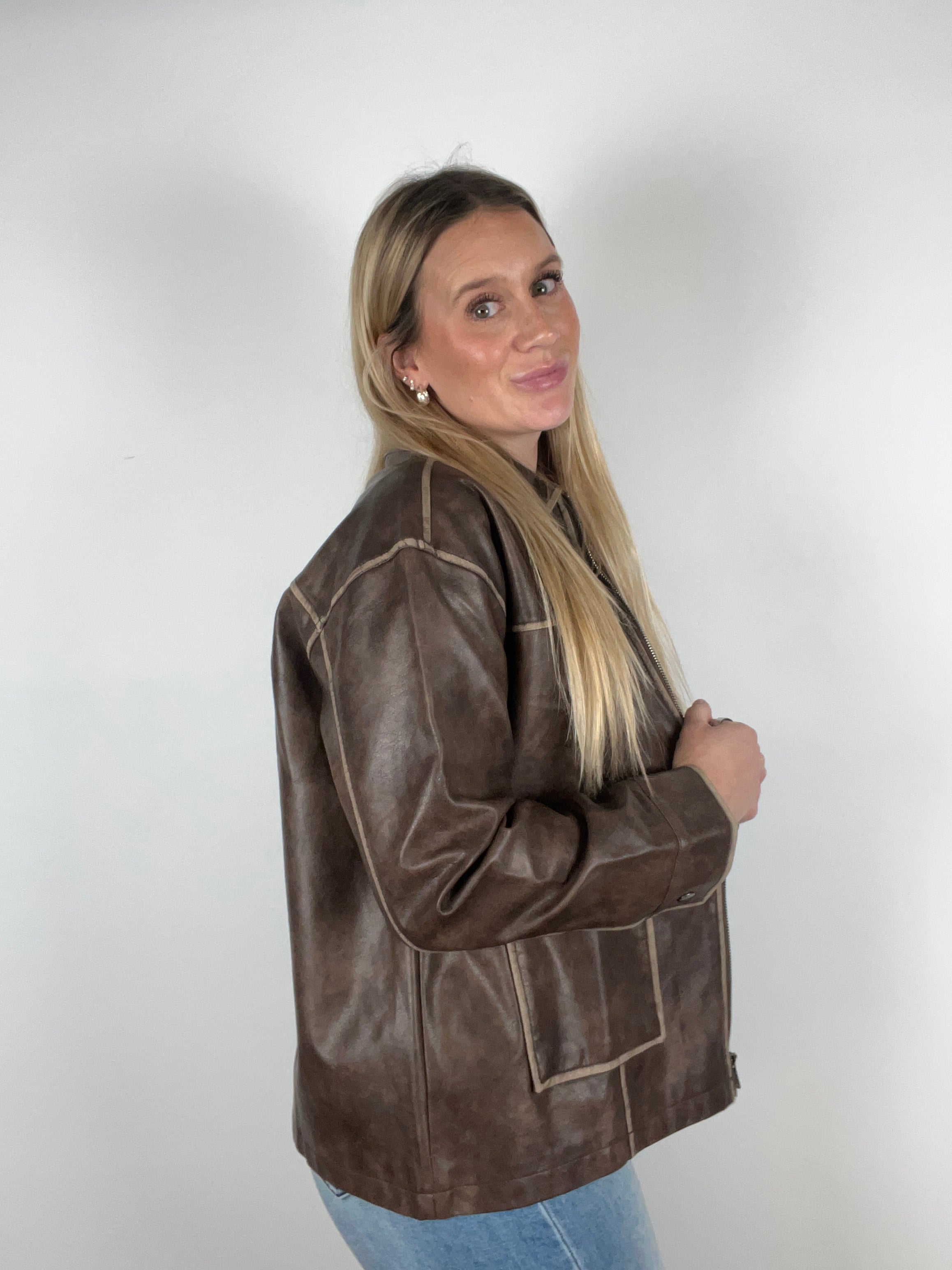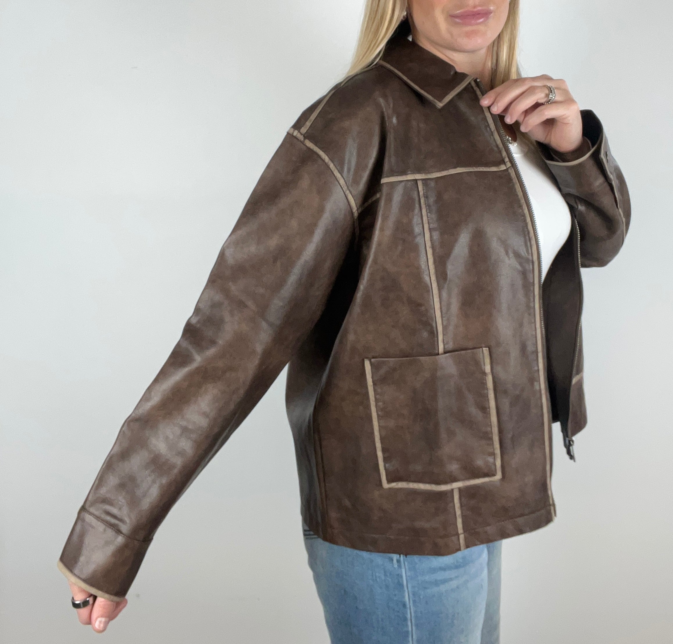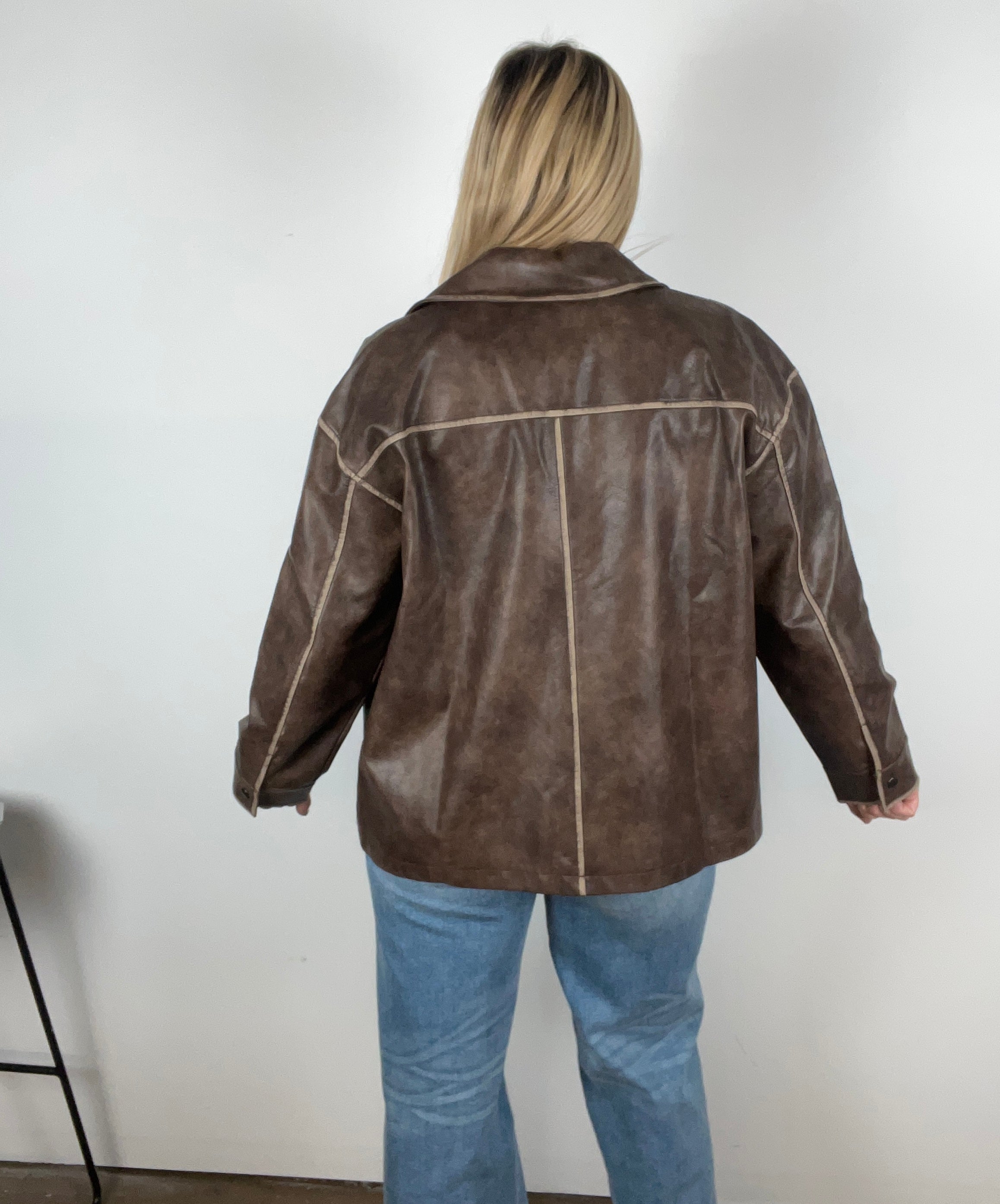 Washed Faux Leather Jacket - Vintage & Luxe-Textured
