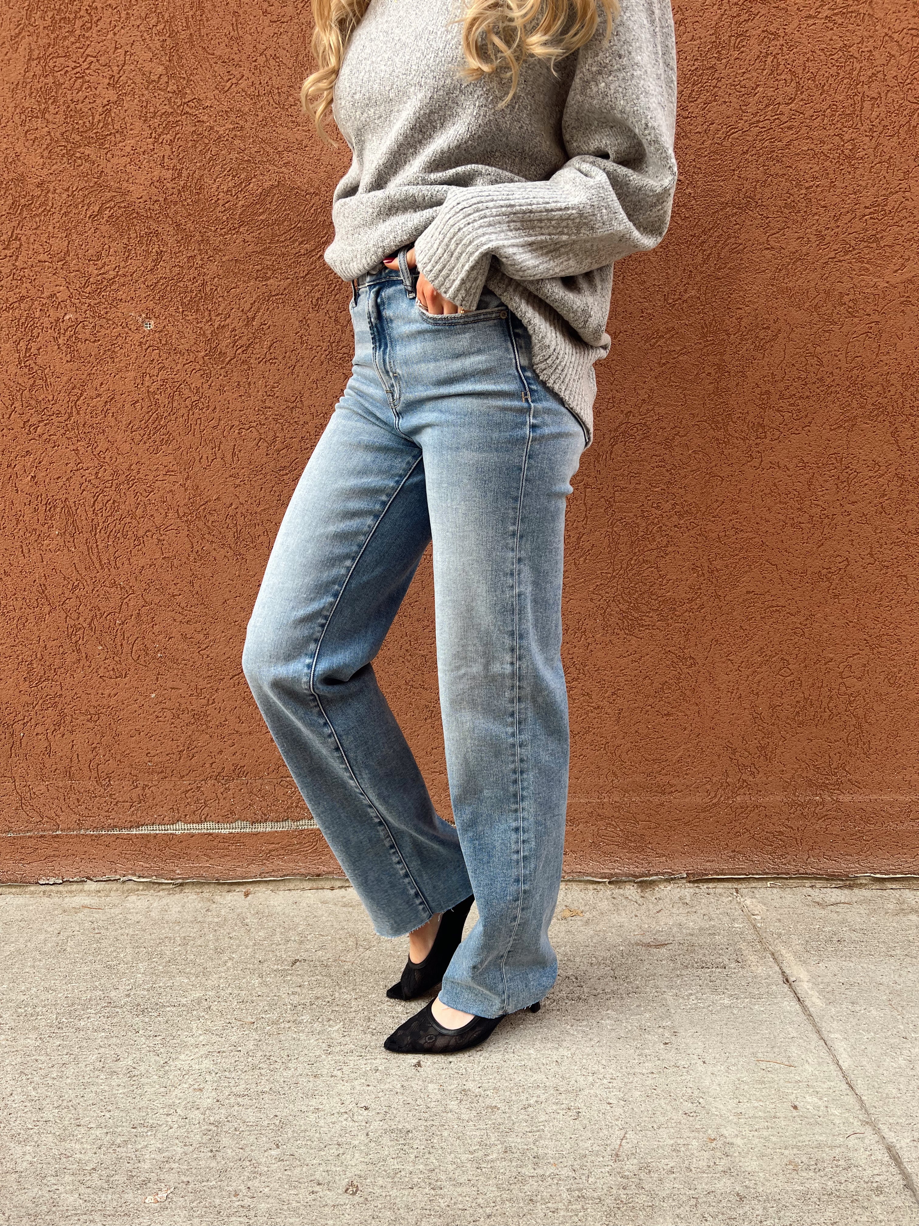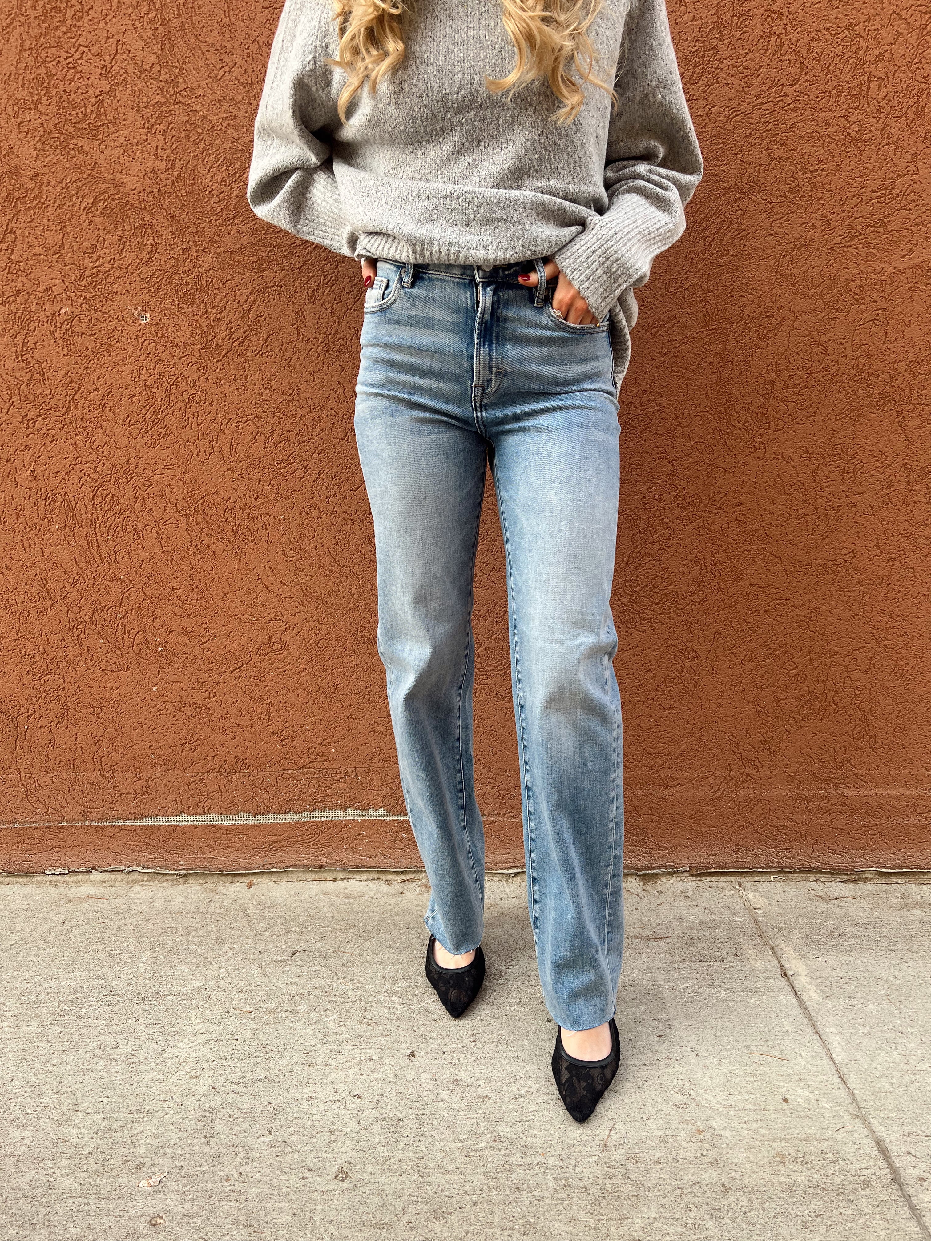 Meet your new “wear-with-everything” denim — a straight-leg jean that delivers that perfectly lived-in look without ever feeling sloppy. This pair features a soft mid-wash, flattering high rise, and a clean straight silhouette that lengthens your legs and keeps your outfit feeling modern and pulled-together.