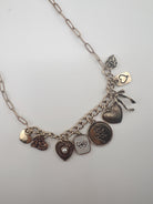 Charm Necklace-Custer Bow Heart Pearl Link