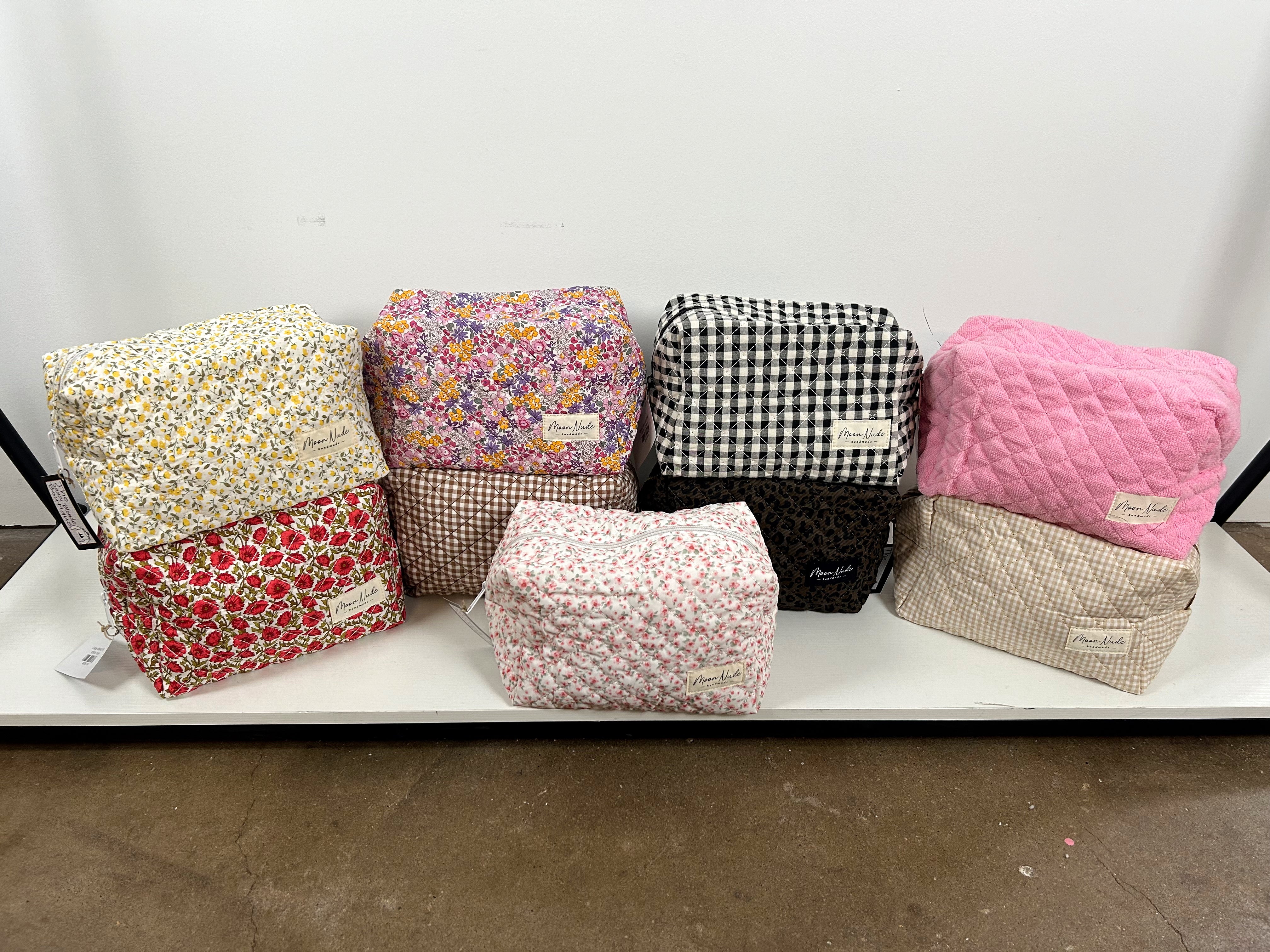 Meet the makeup bags that actually fit it all. These oversized, soft-structured cosmetic bags come in the cutest mix of florals, gingham, quilted textures, and playful prints- making them just as stylish as they are functional. With a roomy interior and sturdy zip closure, they're perfect for travel, everyday use, or tossing all your must-haves in one spot.