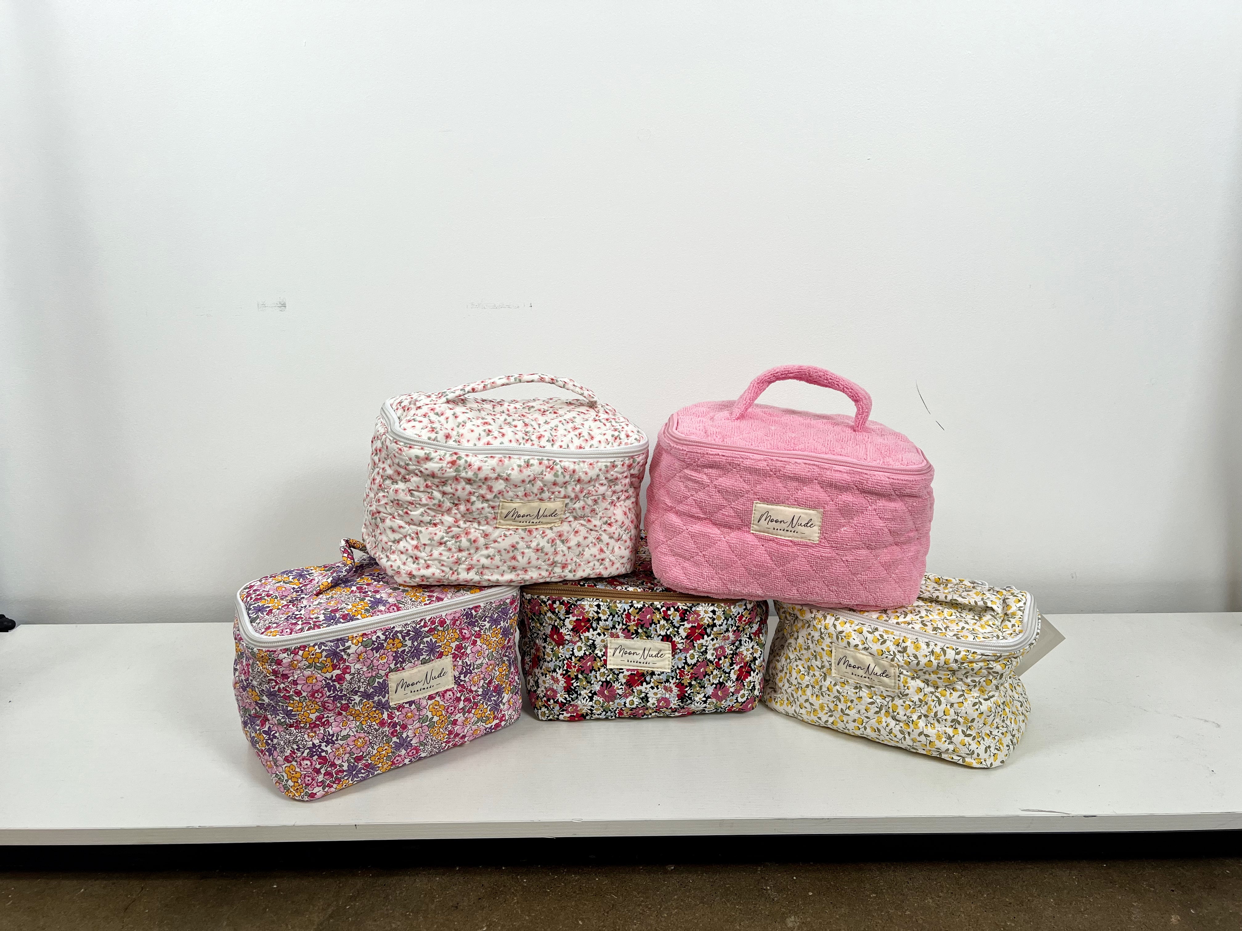 Available in the sweetest quilted pink and a mix of floral prints, each one brings a fun pop of personality to your bathroom counter, tote bag, or suitcase. Whether you’re packing for a trip or tidying up your glam routine at home, these makeup bags make staying organized so much prettier.