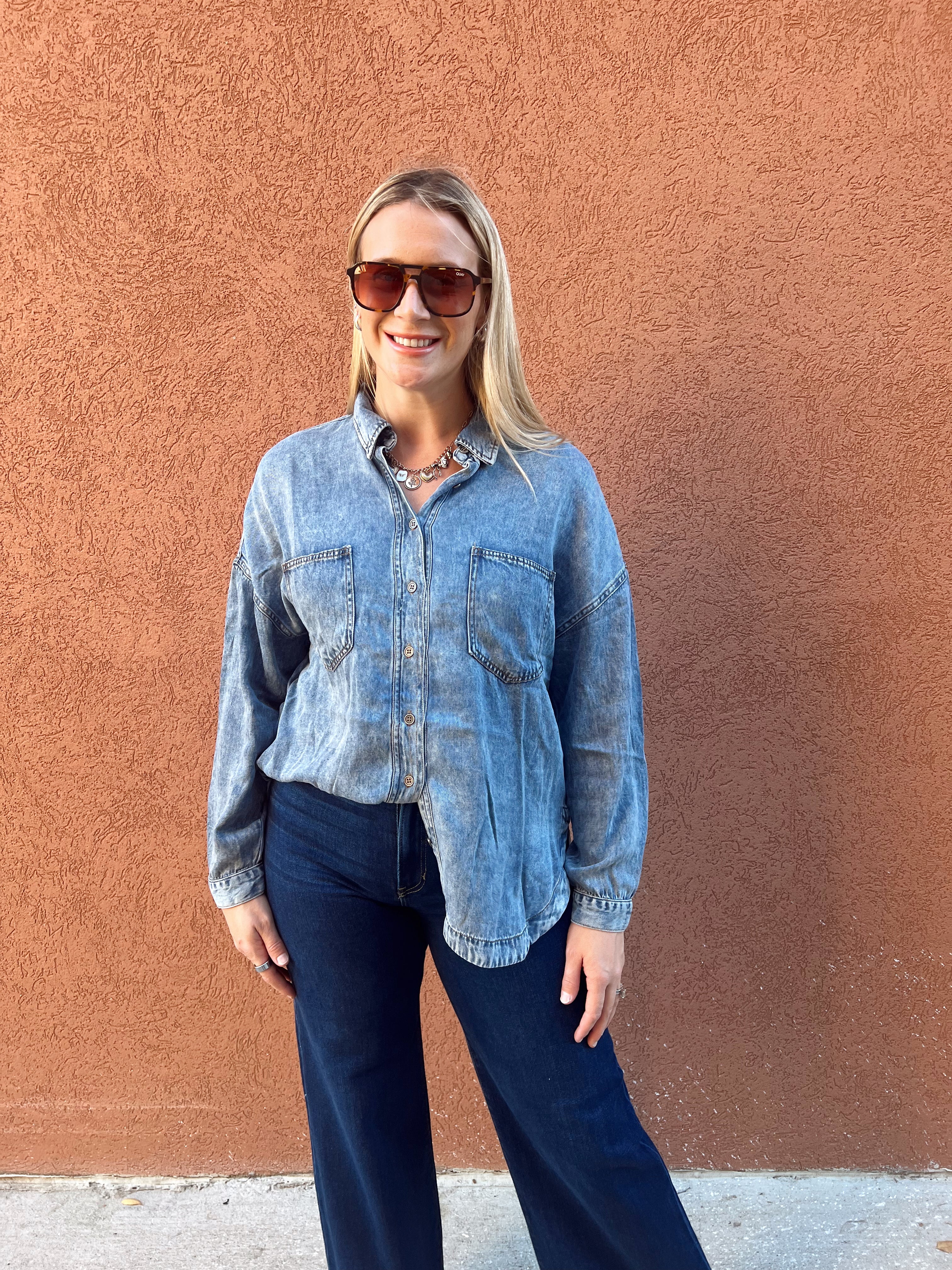 Your new go-to denim button-up is here- effortless, timeless, and endlessly wearable. Style it your way and make it yours today!