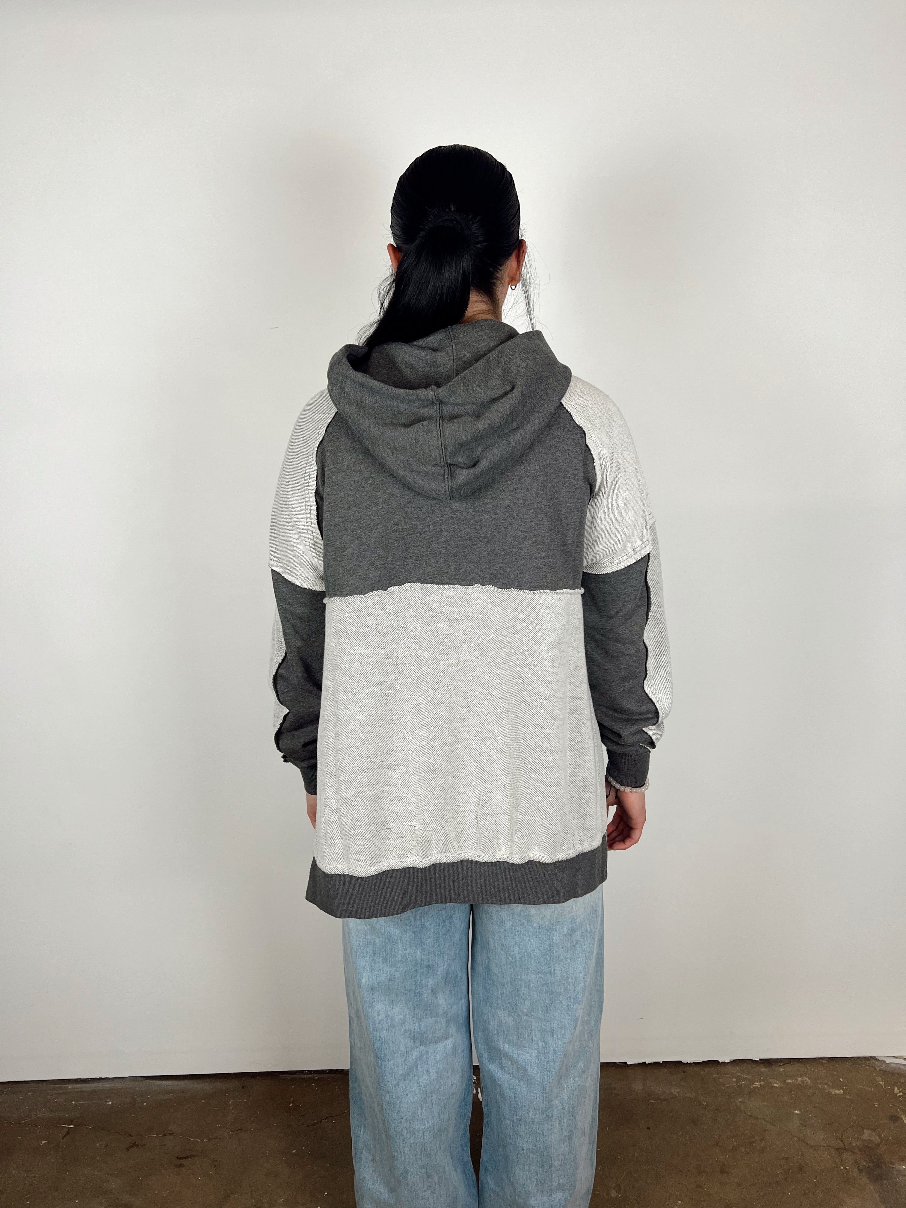 This color-block hoodie is the perfect mix of casual comfort and everyday style. Designed with contrasting gray tones for a laid-back, sporty vibe, it features a soft fleece feel and a relaxed fit that’s perfect for cozy days or weekend errands. Complete with a front kangaroo pocket and subtle raw-edge detailing, it’s the go-to hoodie you’ll live in all season long.