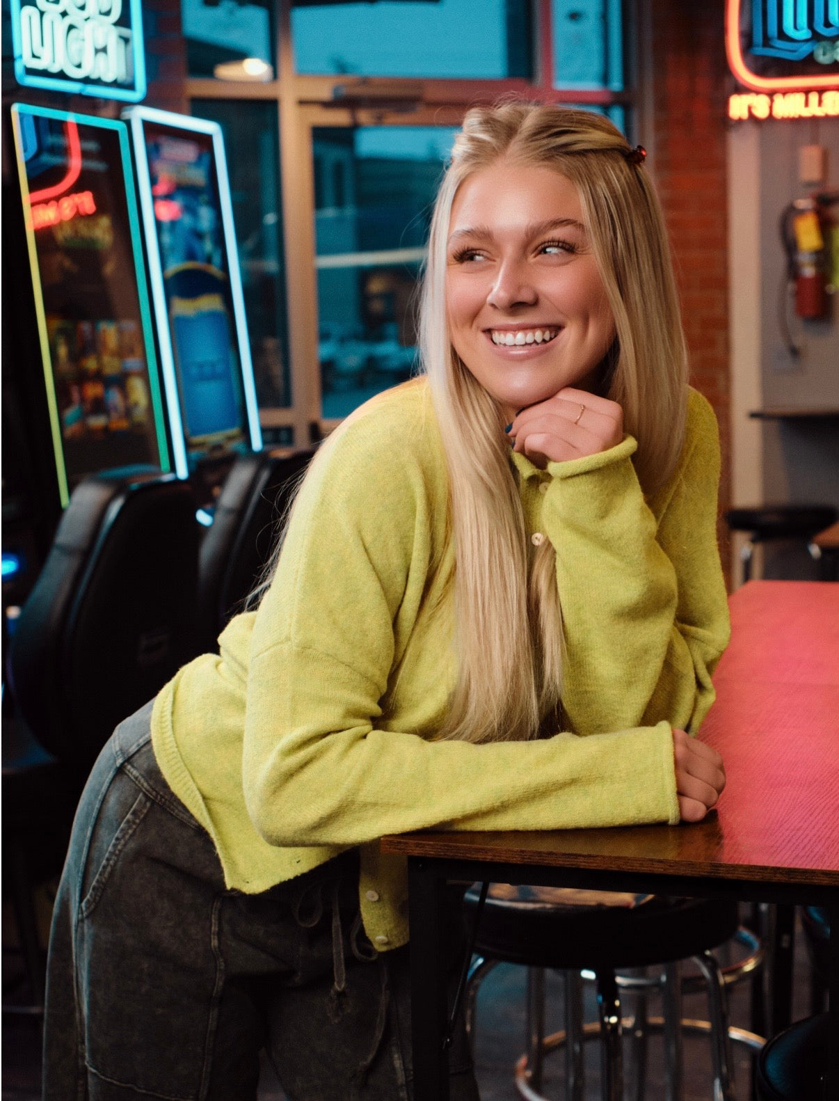 A lightweight button-front cardi in the perfect pop-of-color green that instantly brightens any outfit. Easy, effortless, and made for everyday wear—this one’s a fun twist on a classic layer you’ll keep reaching for.