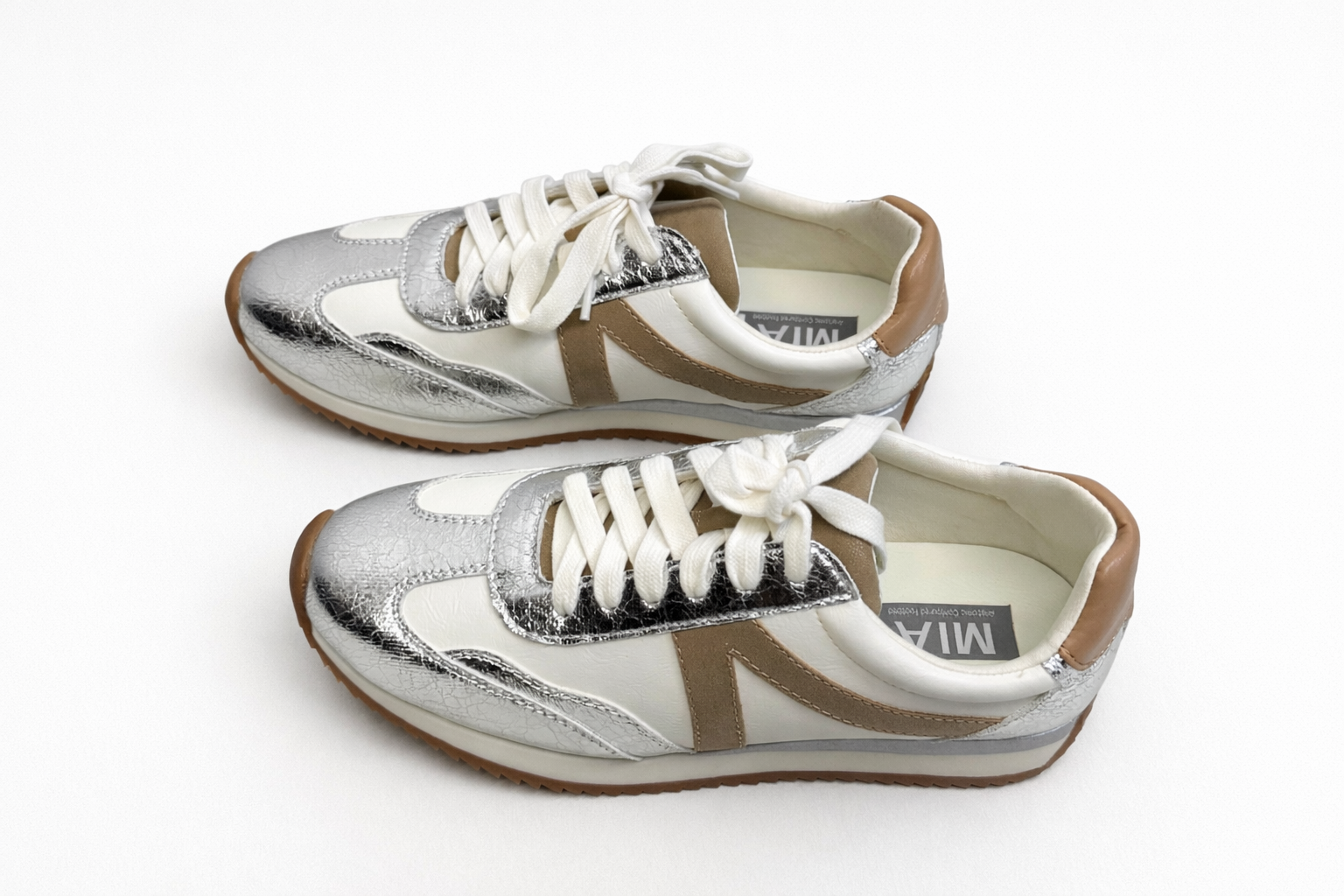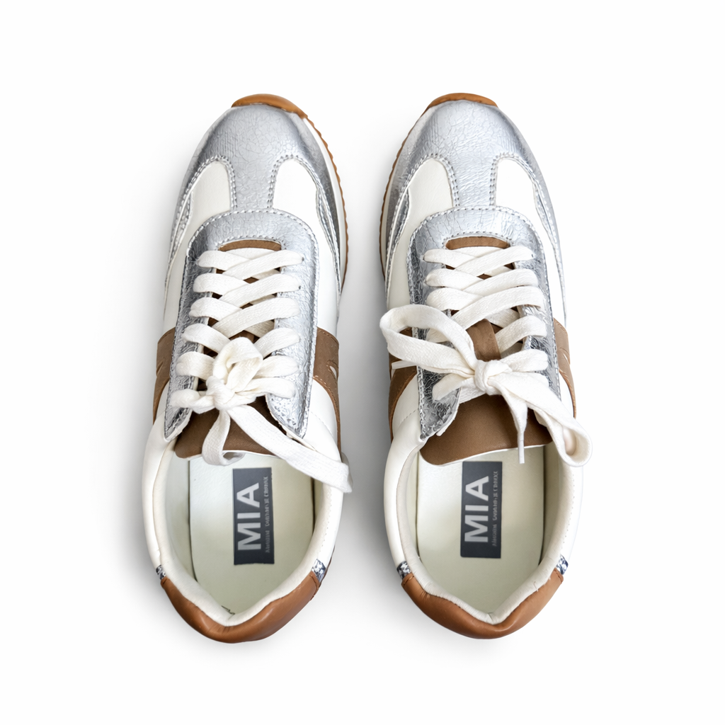 Meet your new everyday go-to. The Silver Lining Sneaker blends creamy white, soft tan, and eye-catching metallic silver for the perfect mix of neutral + statement. She’s sporty enough for errands but polished enough for lunch dates.