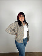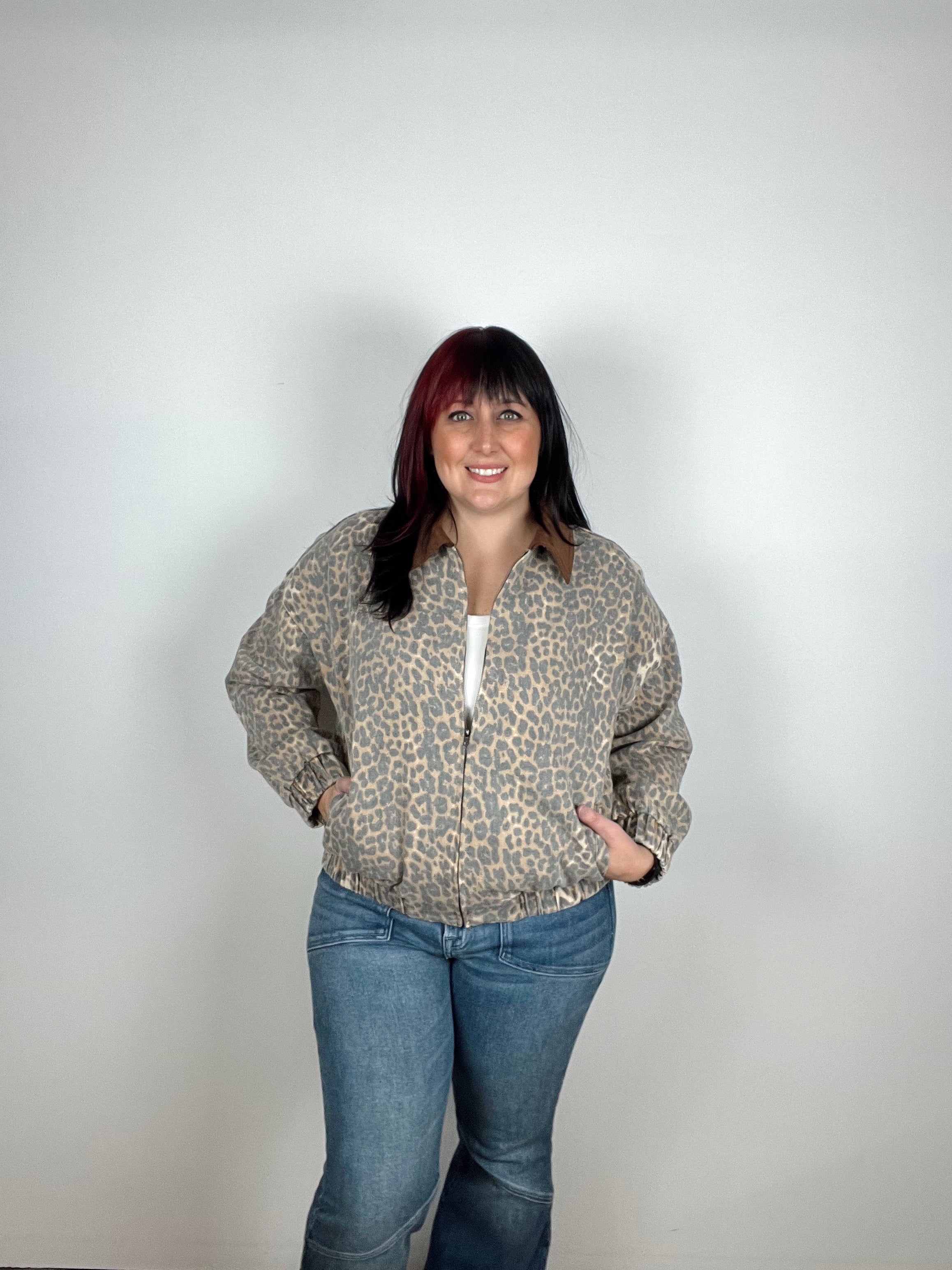 Turn heads in this effortlessly chic leopard bomber jacket — the perfect mix of wild and wearable. Designed with a soft neutral animal print, it features elastic hem detailing, a zip-up front, and a relaxed silhouette that layers flawlessly over tanks, tees, or turtlenecks. Pair it with denim or black skinnies for an easy statement look that screams confidence and cool-girl charm.