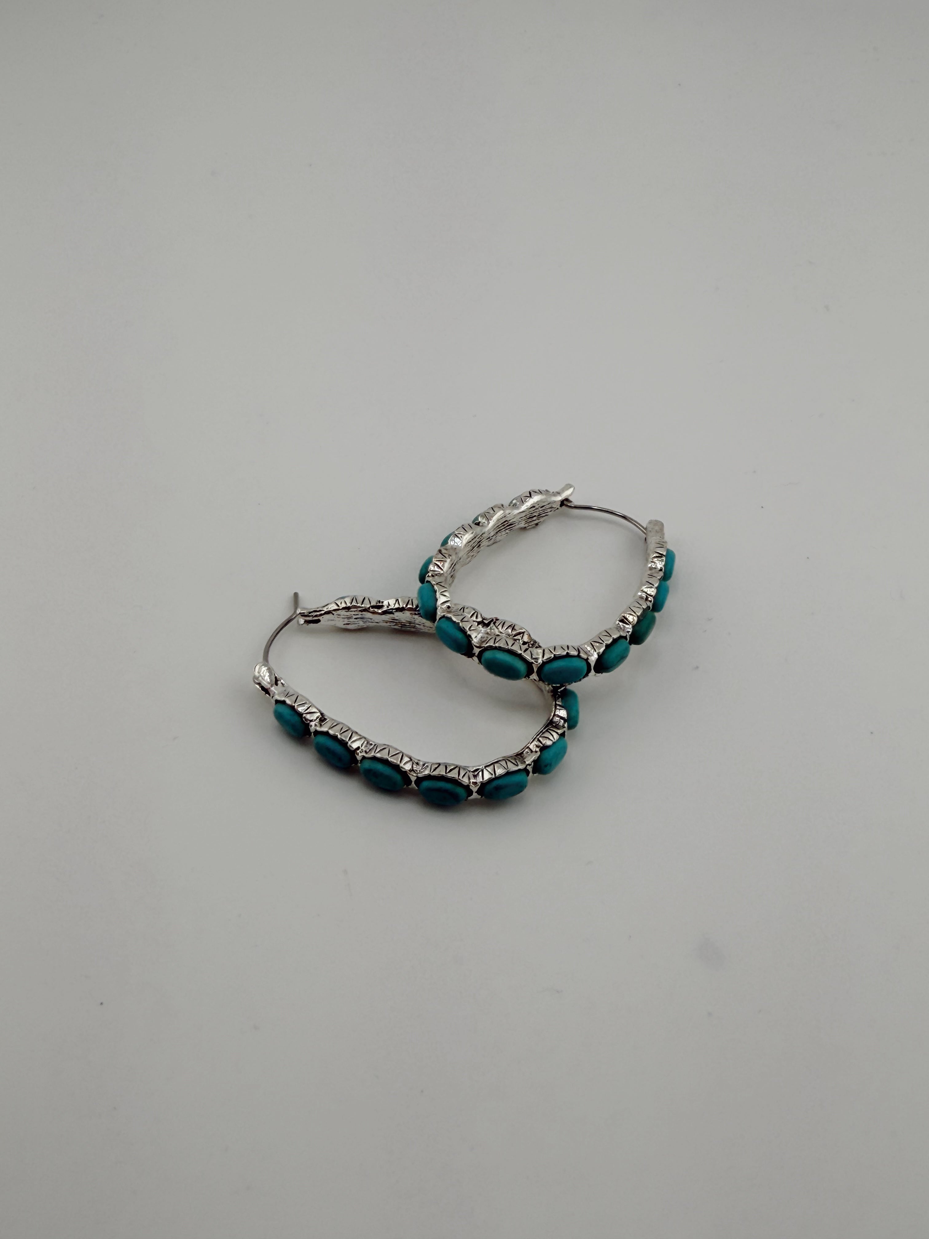 Western Turq Stone Hoop Earrings