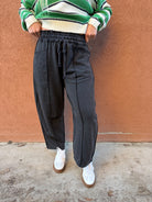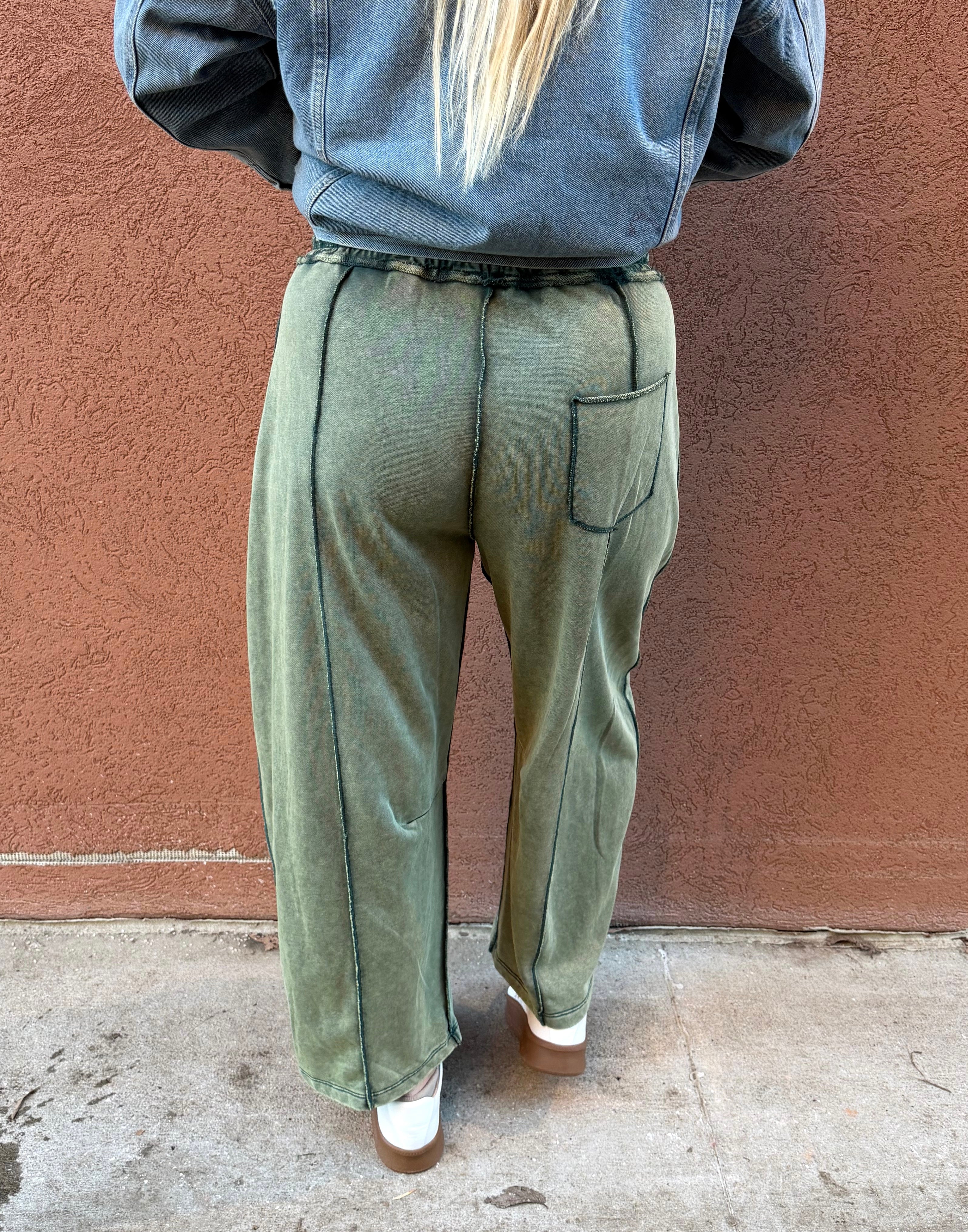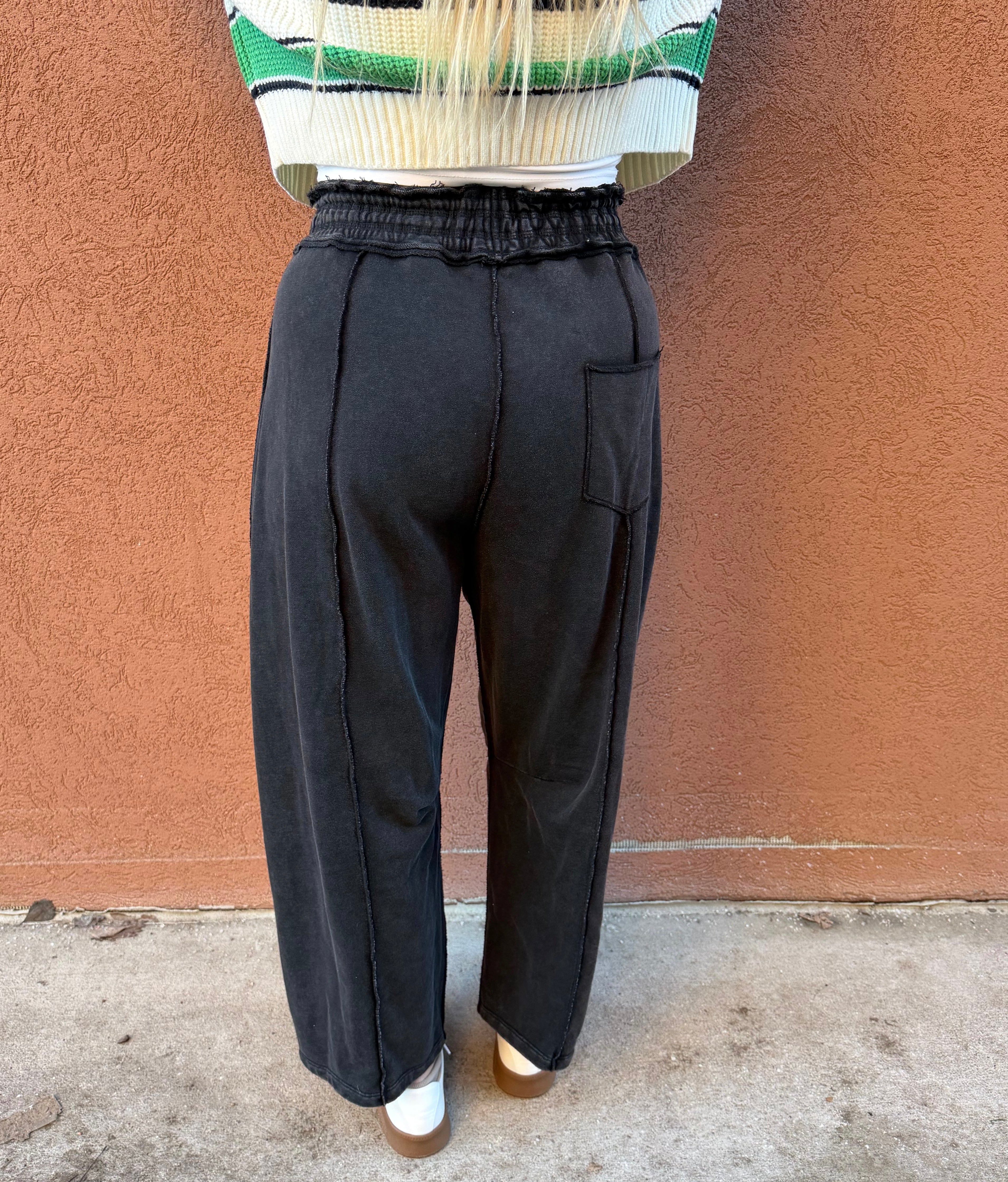 These joggers are the definition of effortless cool. Designed with a soft, lived-in wash and exposed seam detailing down the leg, they give off that perfectly worn vibe while still feeling polished. The relaxed straight-leg fit, elastic waistband, and adjustable drawstring make them ultra comfortable for everyday wear—whether you’re running errands, traveling, or styling them up with a denim jacket and sneakers.
