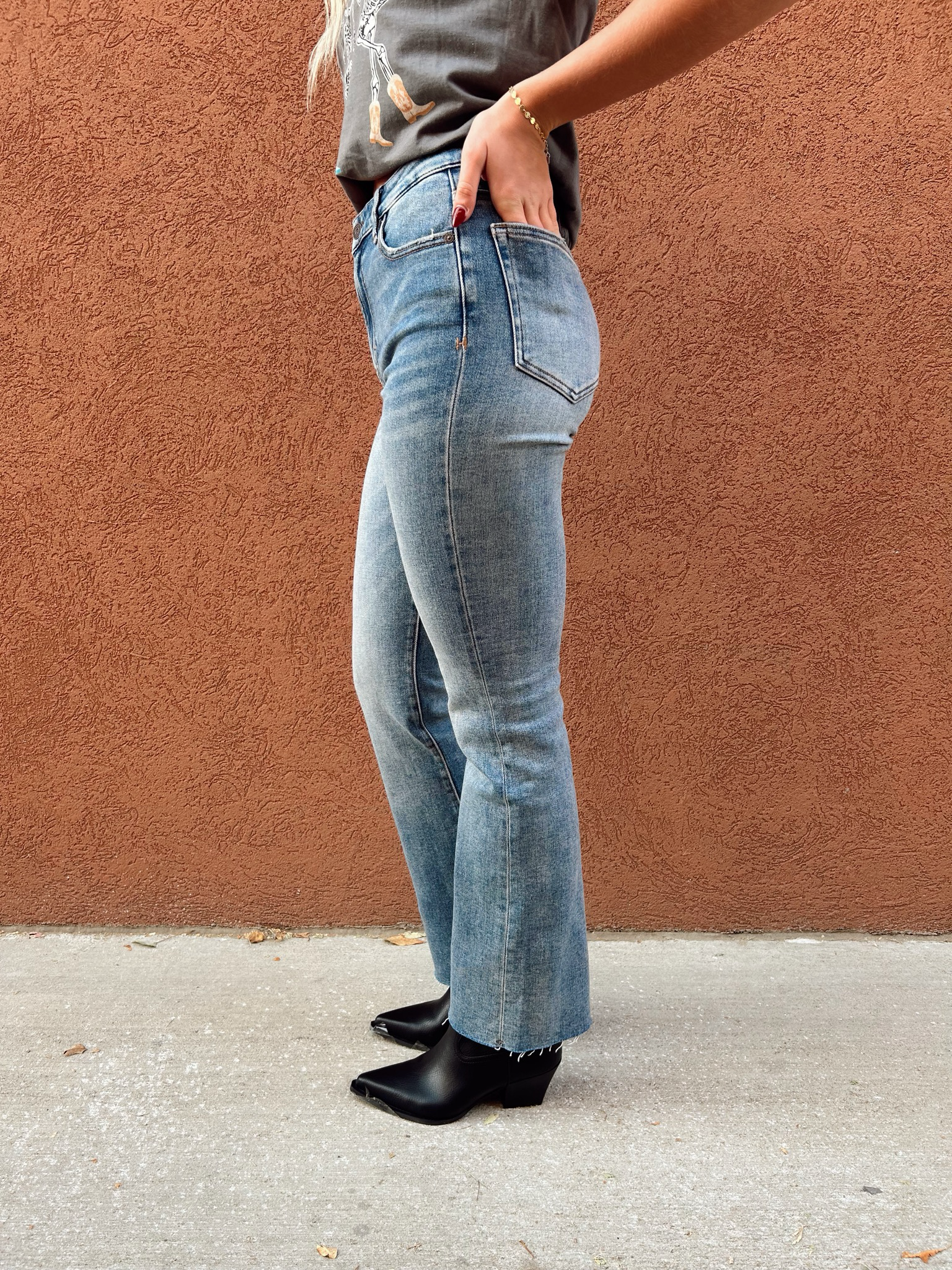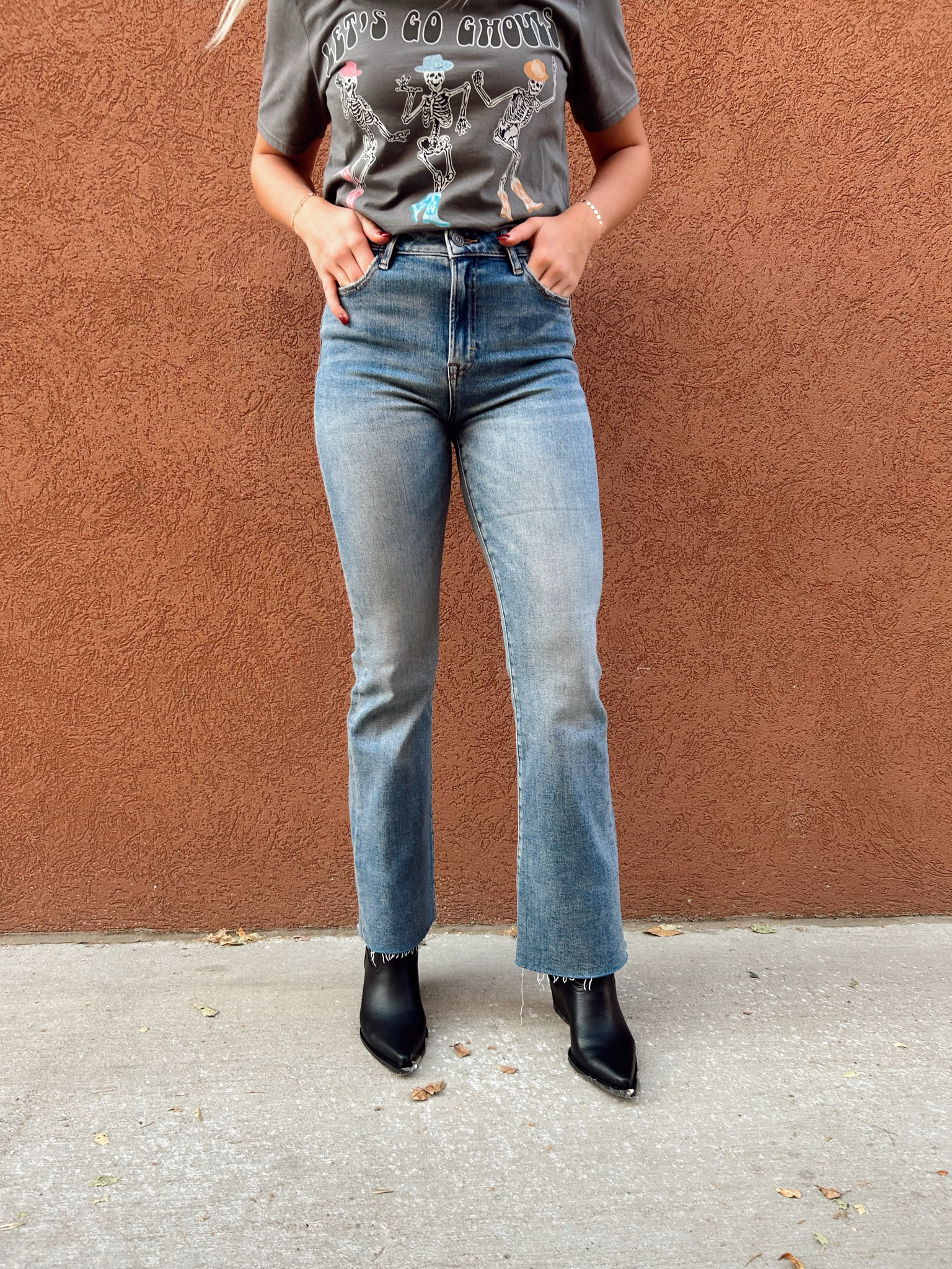 Step into timeless style with our classic curve bootcut jeans. Designed to flatter and elongate your silhouette, these jeans offer the perfect balance of comfort and elegance. With a contoured fit through the hips and thighs and a subtle flare at the bottom, they are versatile enough for a casual day out or a night on the town.