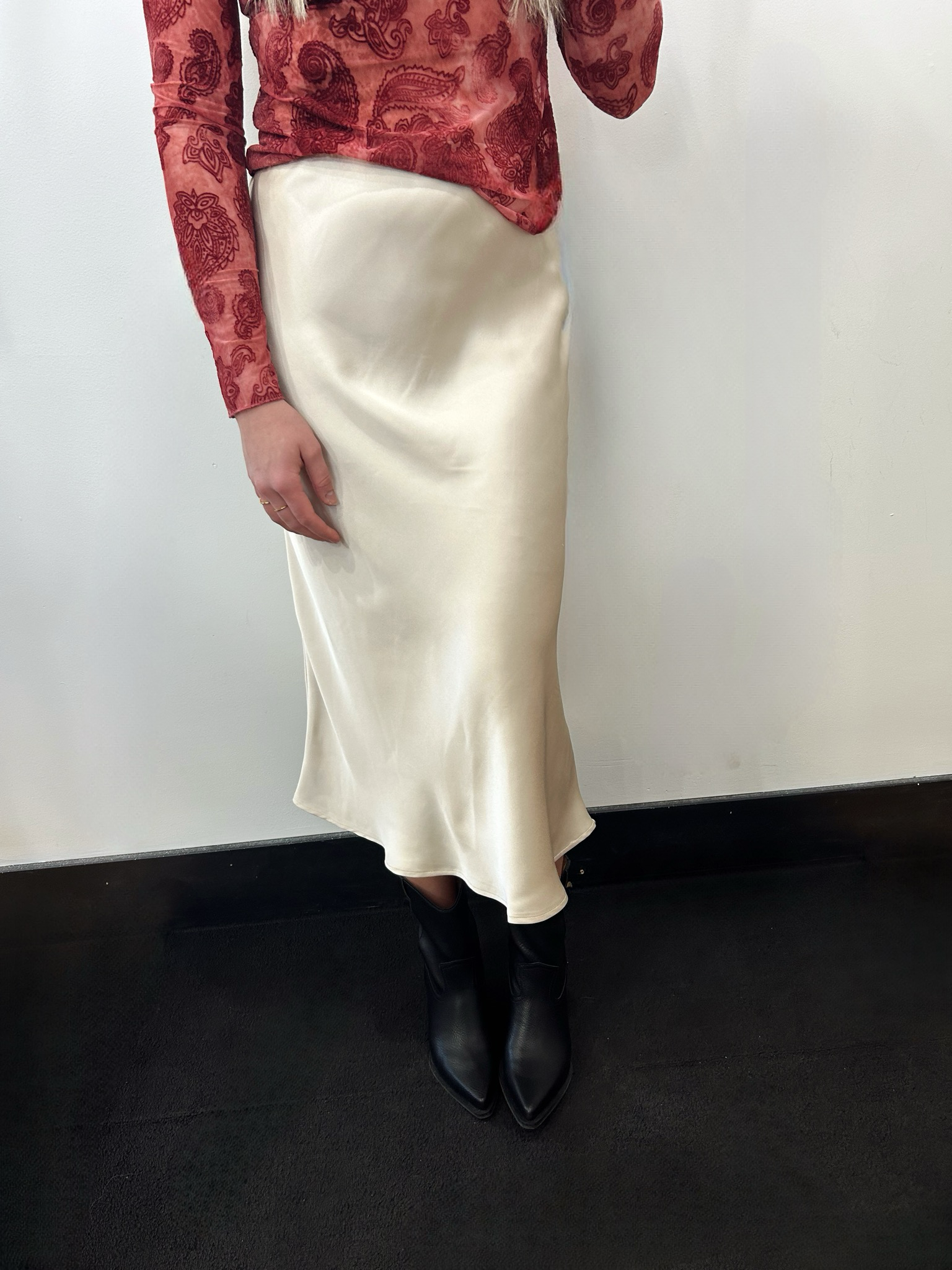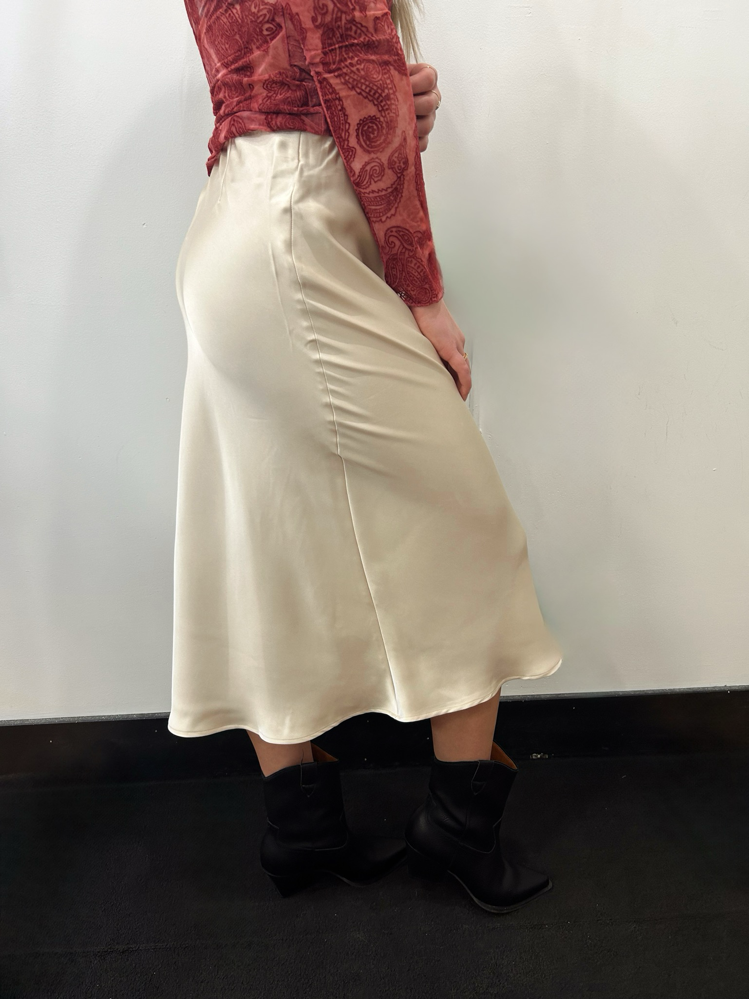 Elegance meets versatility in our Cream Satin Skirt! Designed with a silky-smooth finish and a flattering flow, this timeless piece drapes beautifully for a luxe look. Whether dressed up with a blouse and heels or styles casually with a graphic and sneakers, this skirt is a versatile must-have for all seasons.