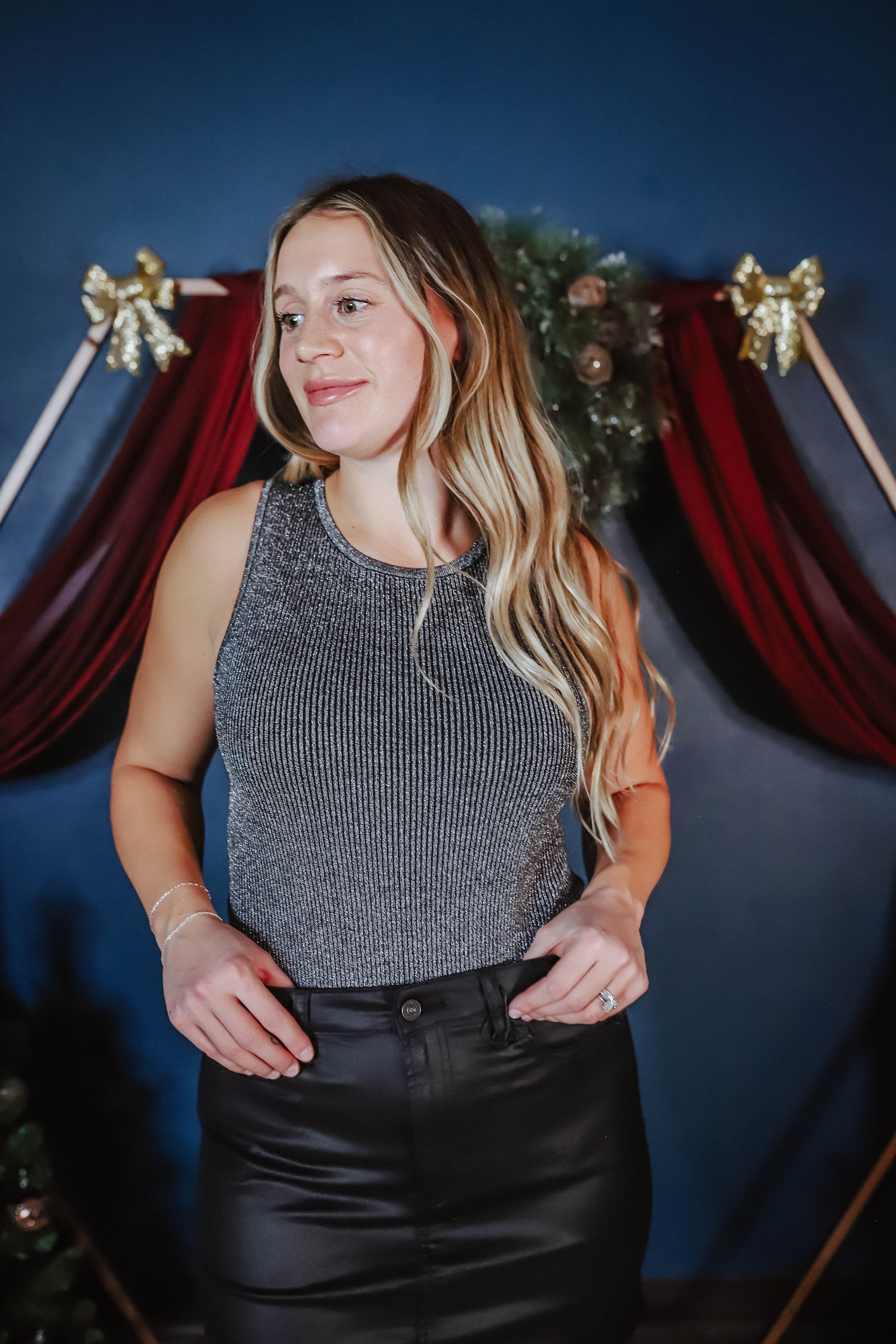 Shine bright this season in our shimmer line bodysuit. Designed with subtle metallic accents and a sleek, flattering fit, it's the ultimate statement piece for holiday parties and celebrations. Pair it with high-waisted bottoms for a glamorous look.