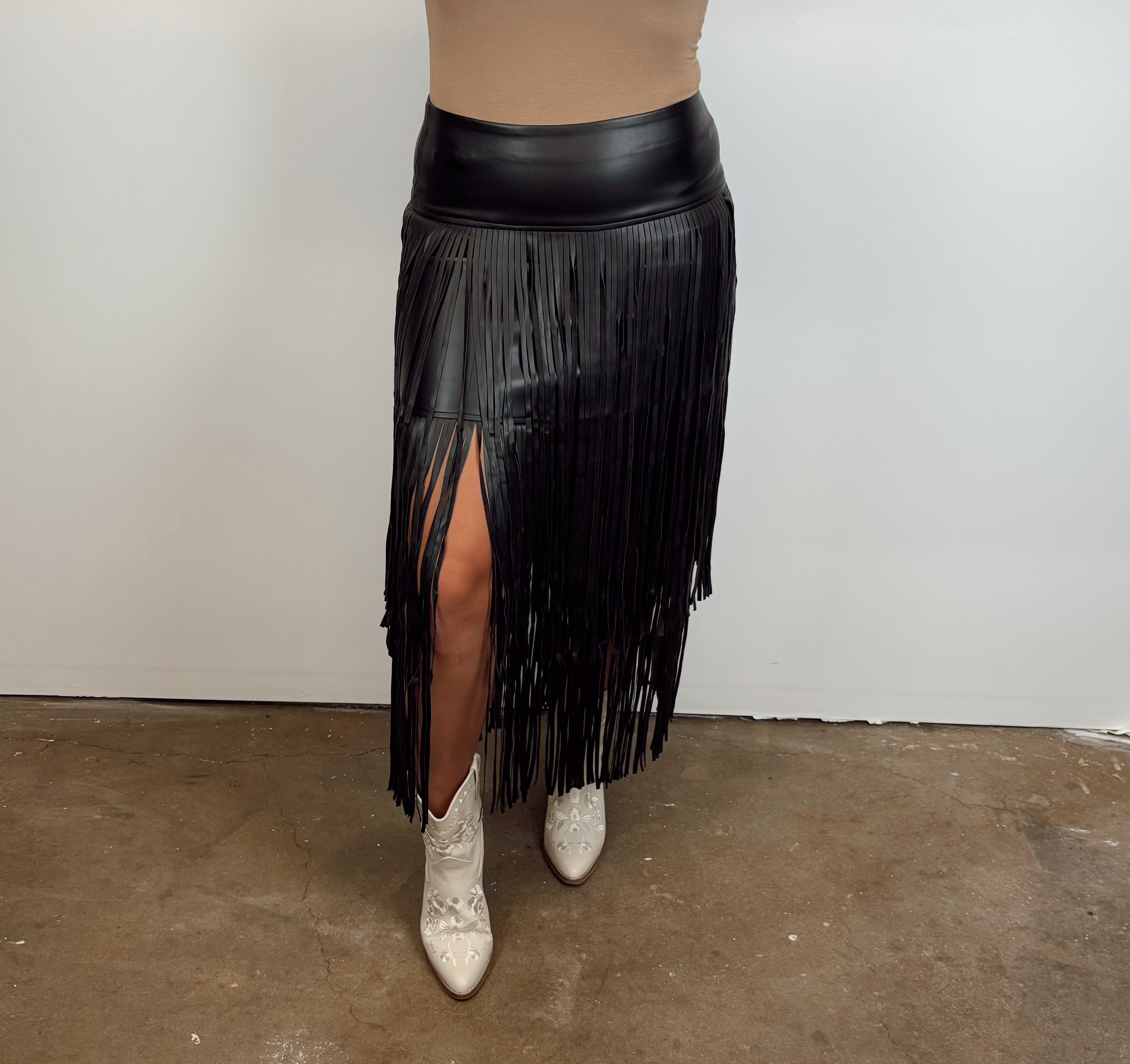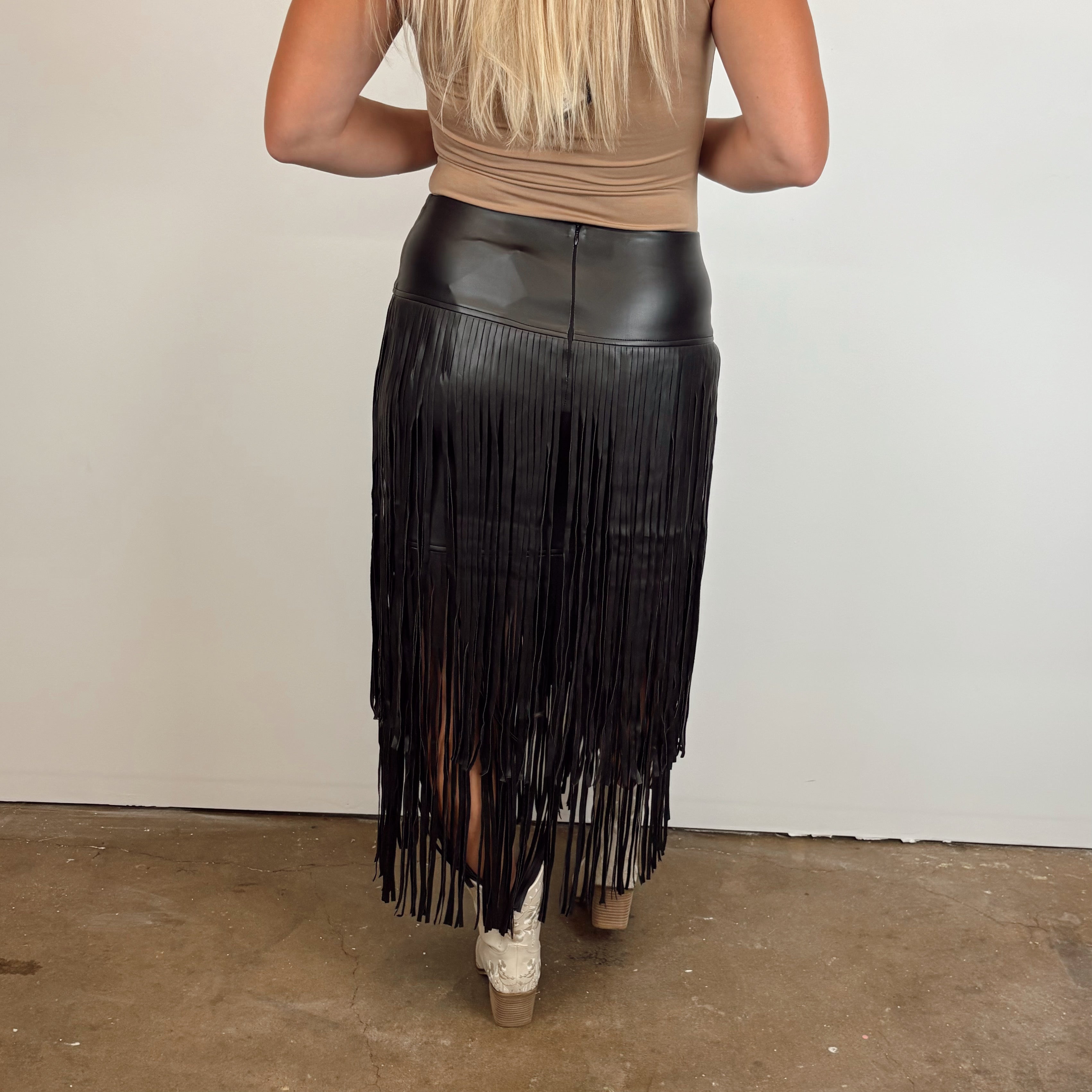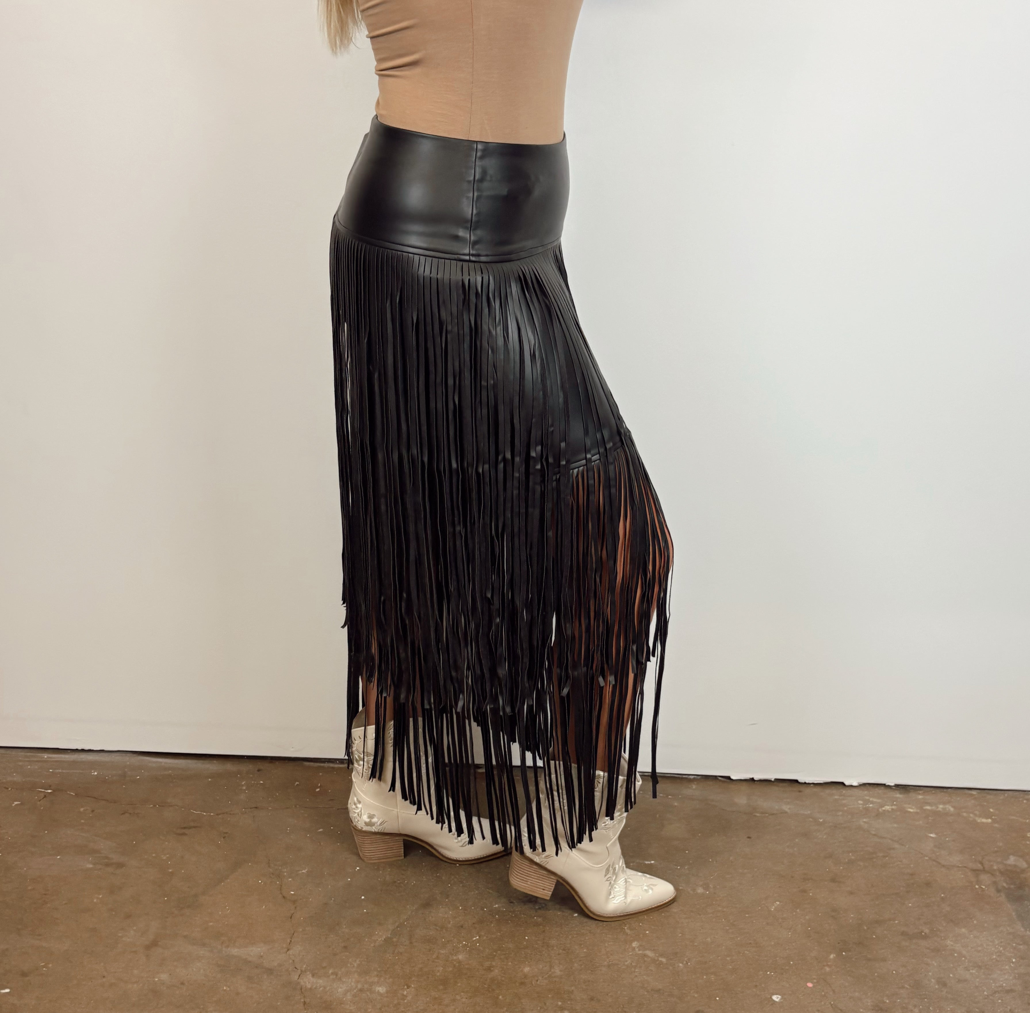Faux Leather Tiered Fringe Maxi Skirt - Fun & Flirty