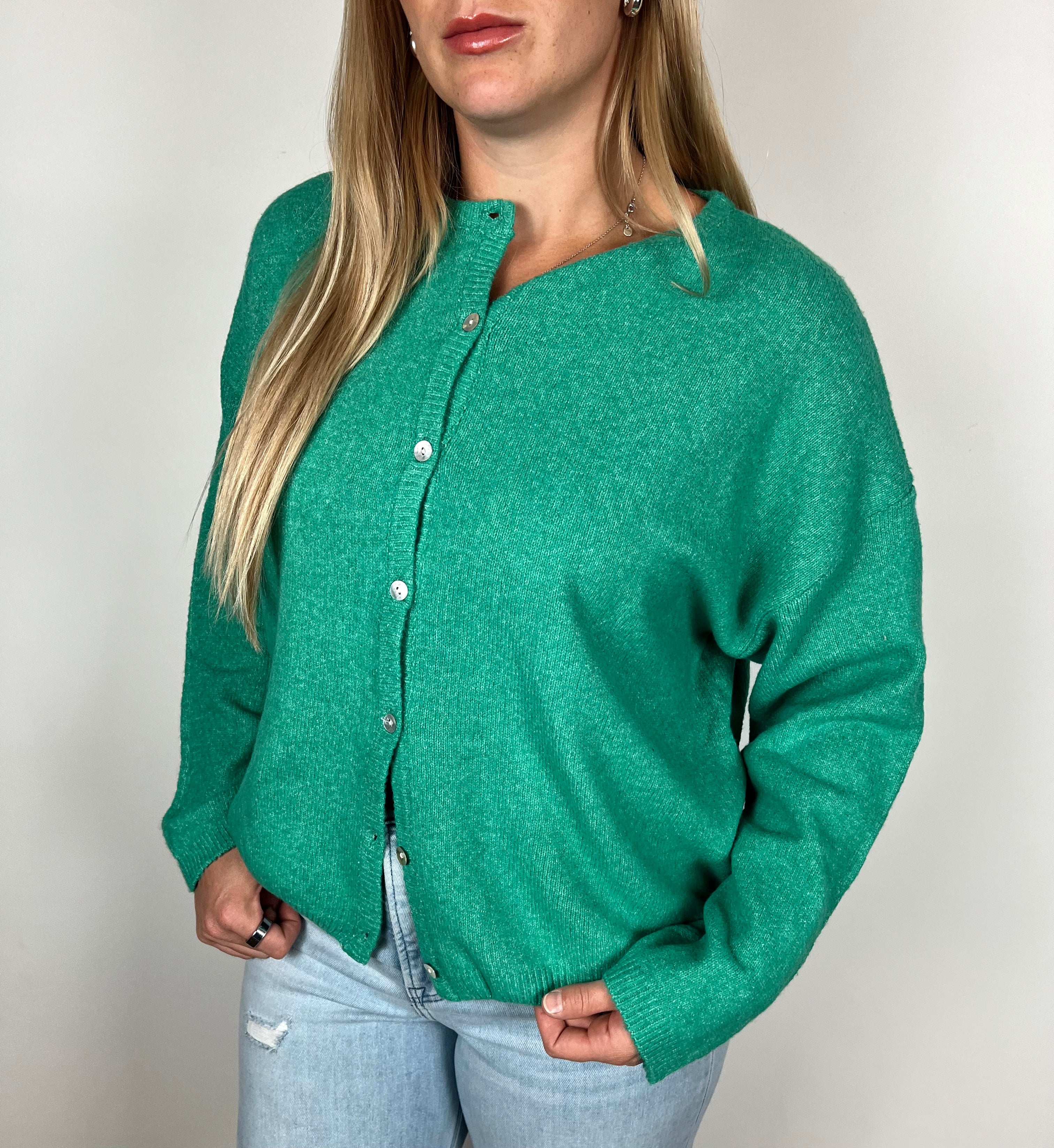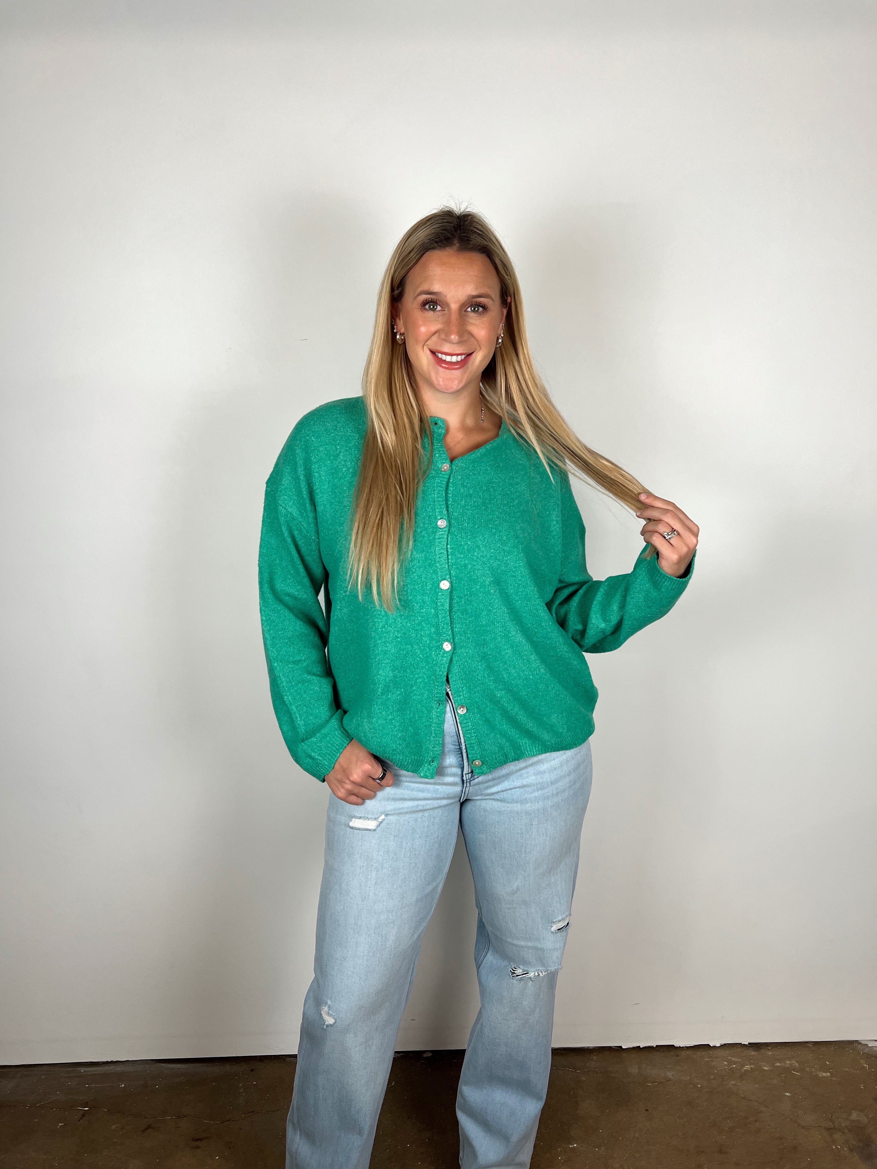 Bring a pop of color to your wardrobe with this soft button-up cardigan in the prettiest shade of green. Designed with a relaxed fit, lightweight knit, and classic button front, it's the perfect throw-on-and-go piece for casual days or layering over your favorite tanks. Pair it with light denim for a fresh, laid-back look that feels effortlessly chic all season long.