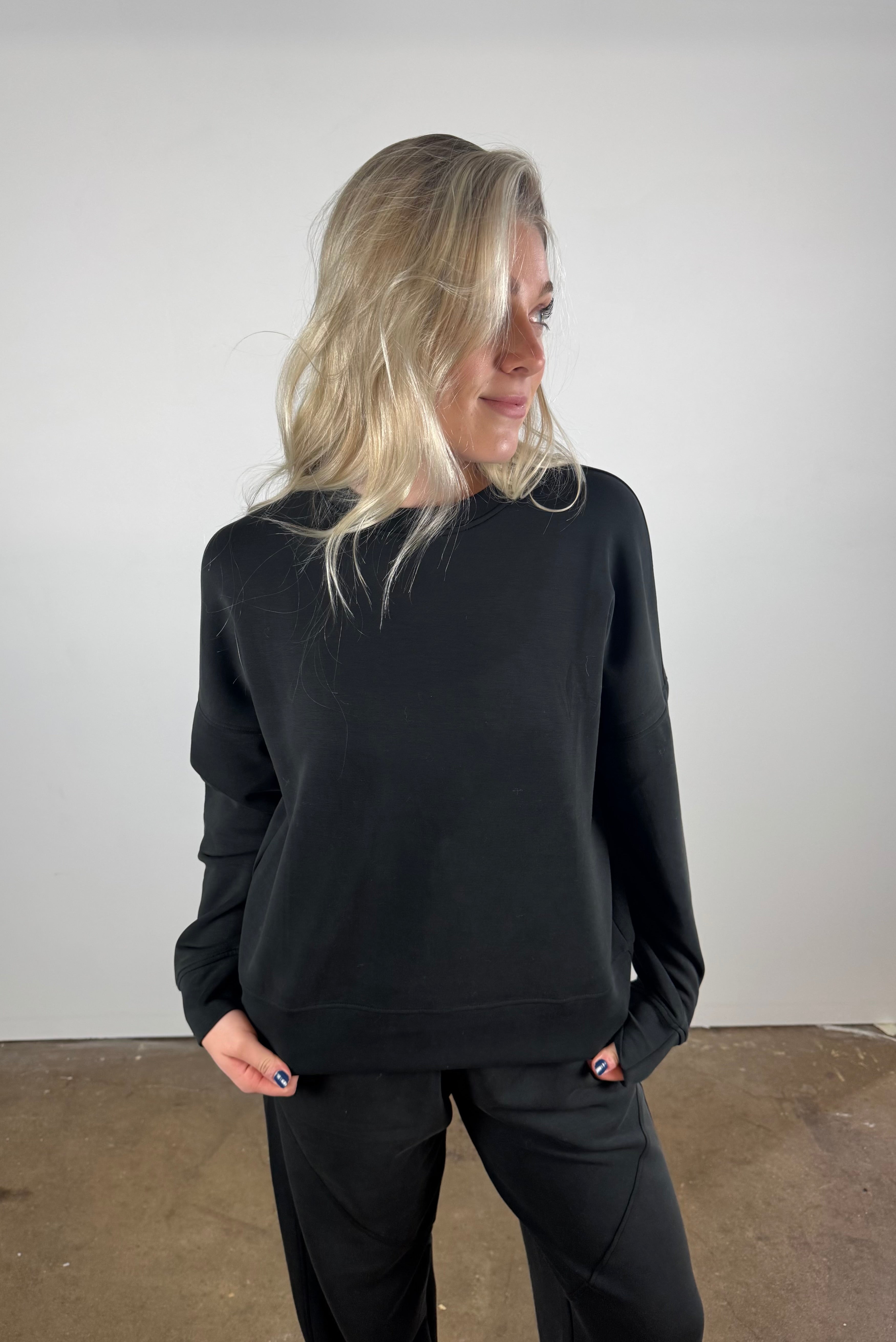 Grab this sleek black crew before it’s gone — the perfect everyday staple you’ll reach for again and again. Add to cart and elevate your comfy style!