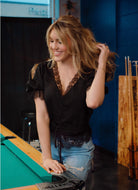 This luxe, flirty satin top is the perfect mix of feminine charm and modern edge. With its delicate lace trim, mini button-front detail, and adjustable drawstring waist, it creates the prettiest silhouette while still feeling effortless. The soft satin sheen elevates any outfit, while the lace hem and sleeves add that romantic touch your wardrobe’s been missing. Pair it with denim for a chic contrast or dress it up for a night out — this top does it all.