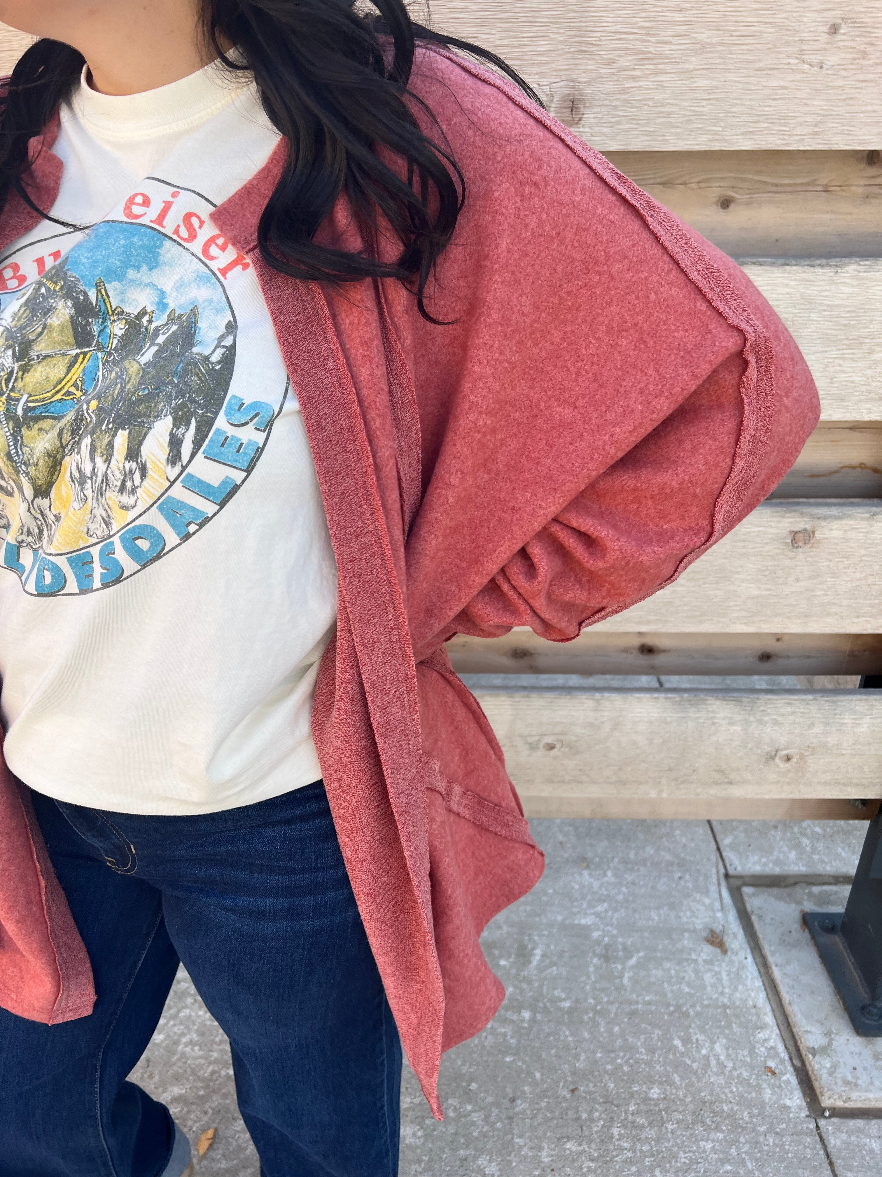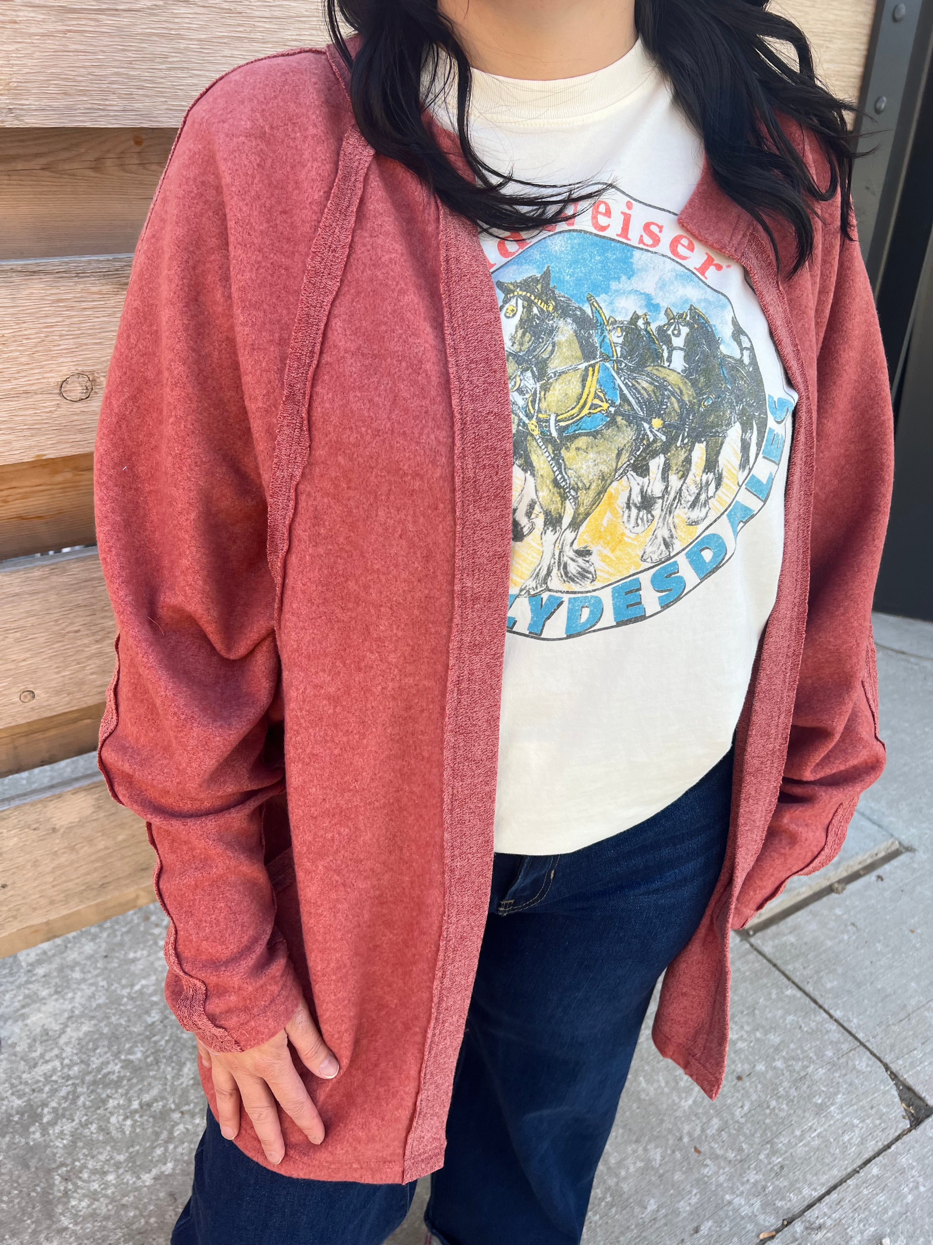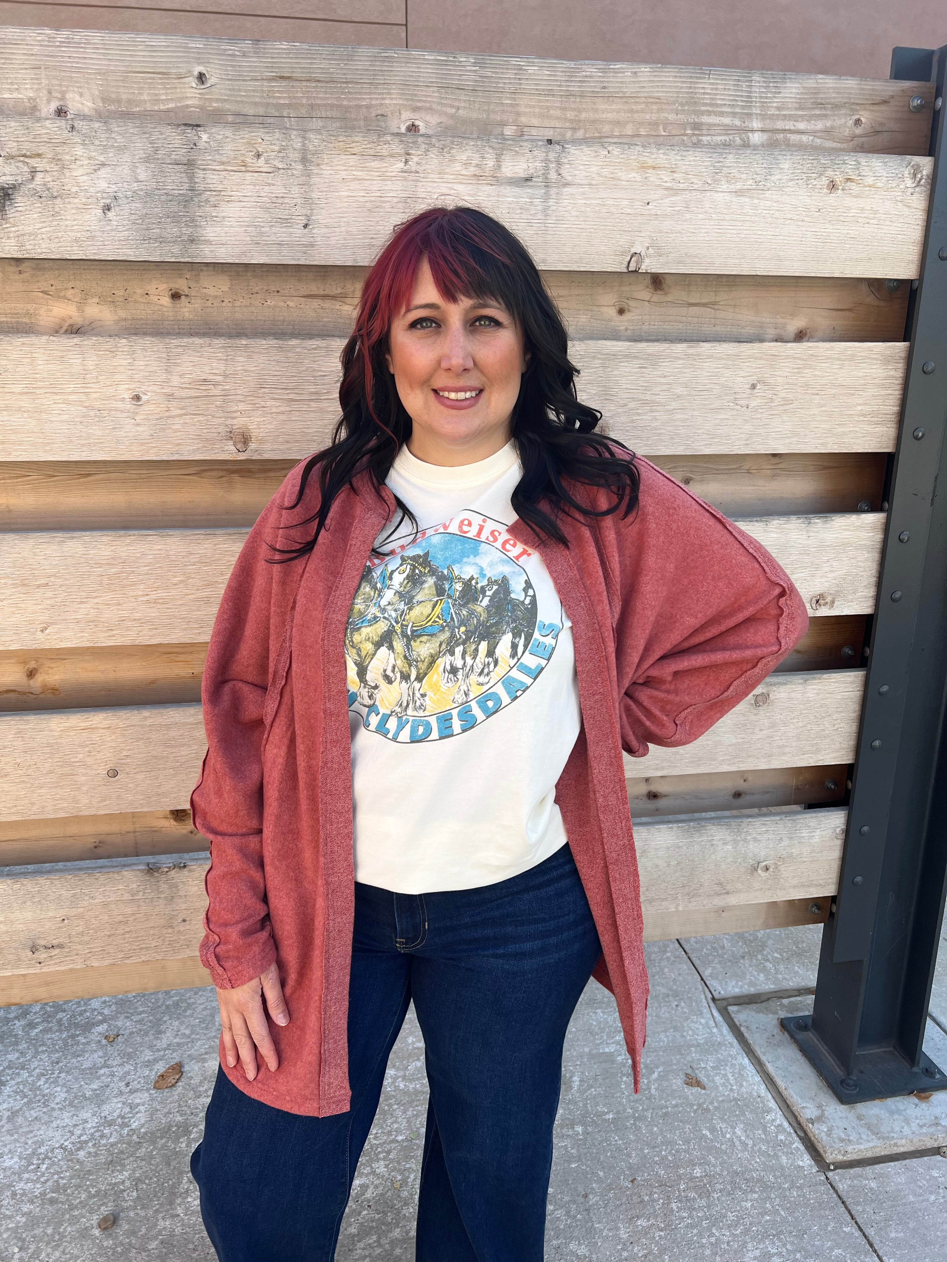 Wrap yourself in comfort with this soft open-front cardigan- the perfect blend of laid-back and stylish. Its relaxed fit and lightweight knit make it ideal for layering over your favorite graphic tees or tanks. Whether you're heading out for errands or lounging at home, this cardigan adds that effortlessly put-together vibe every outfit needs.