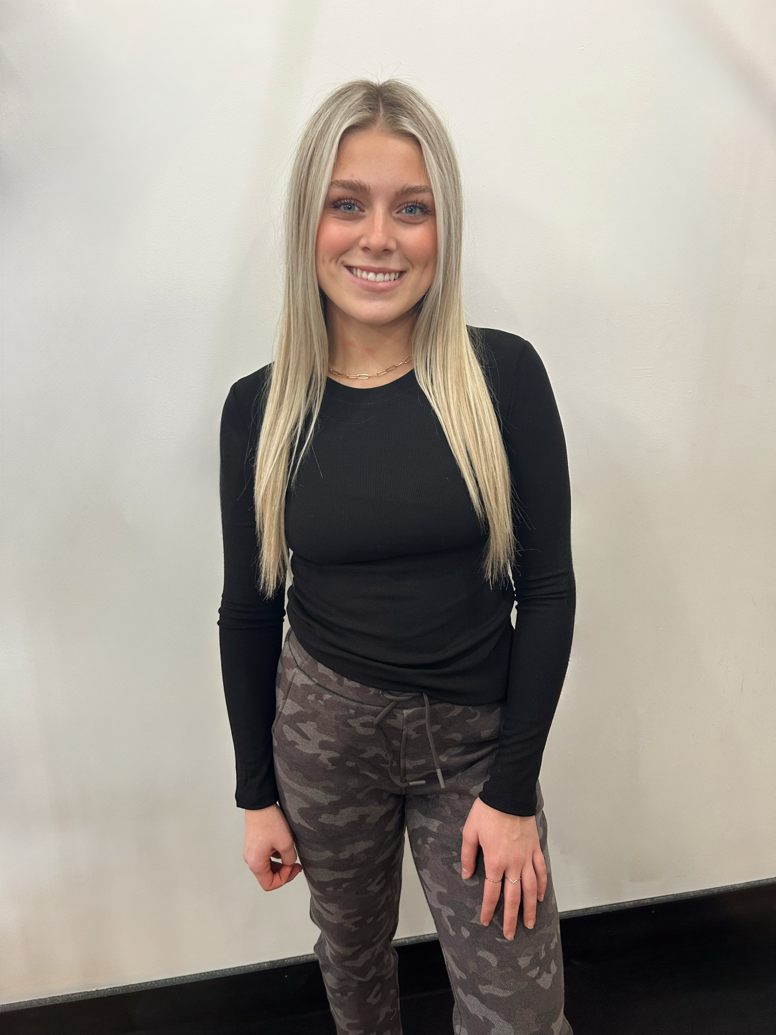 A wardrobe essential, our ribbed long sleeve top is the perfect blend of comfort and style. Crafted from a soft, stretchy fabric, this fitted top contours to your body, offering a flattering silhouette while providing all-day comfort.