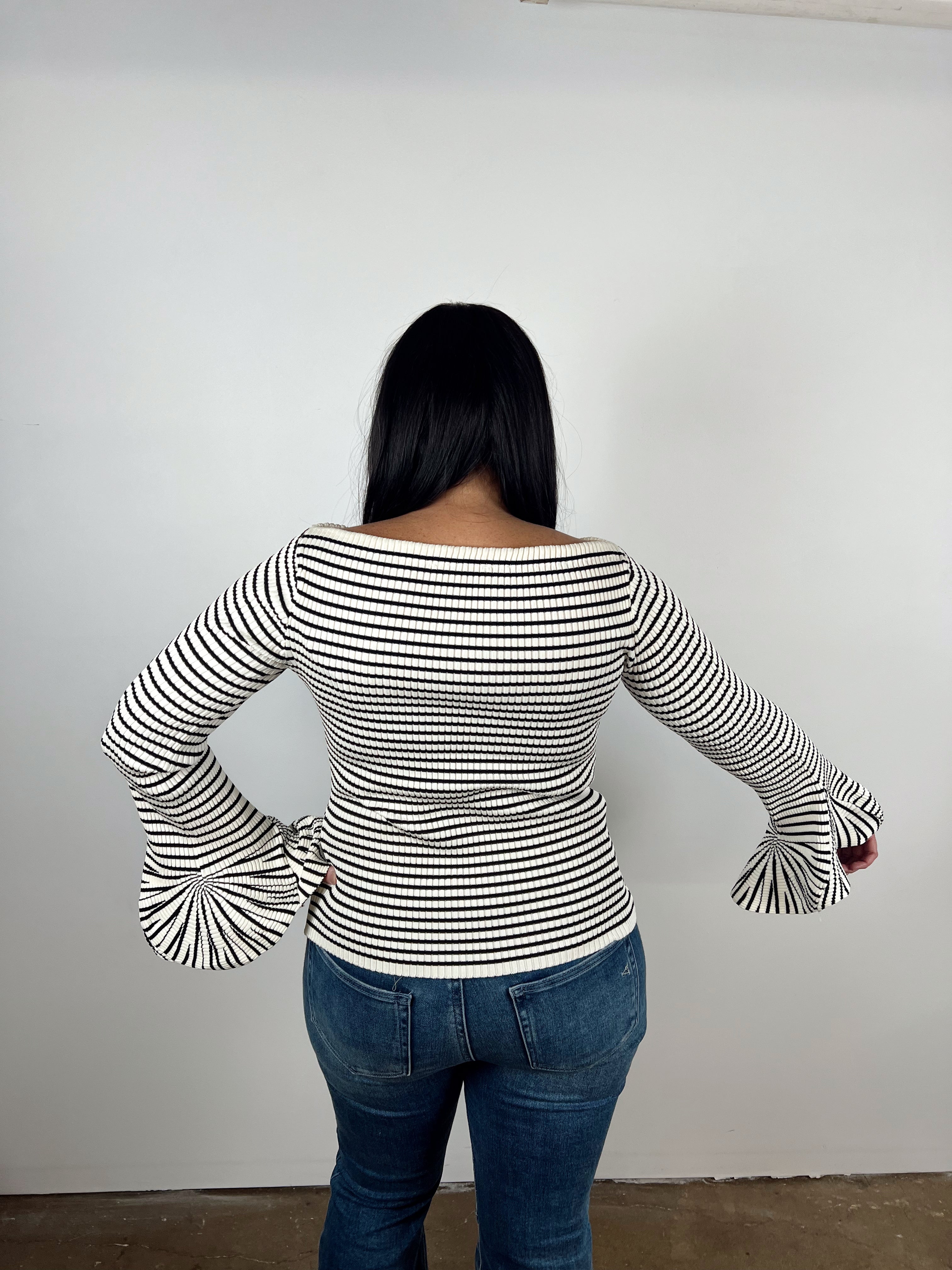 Add a little flair to your everyday style- grab this striped bell sleeve top before it's gone!