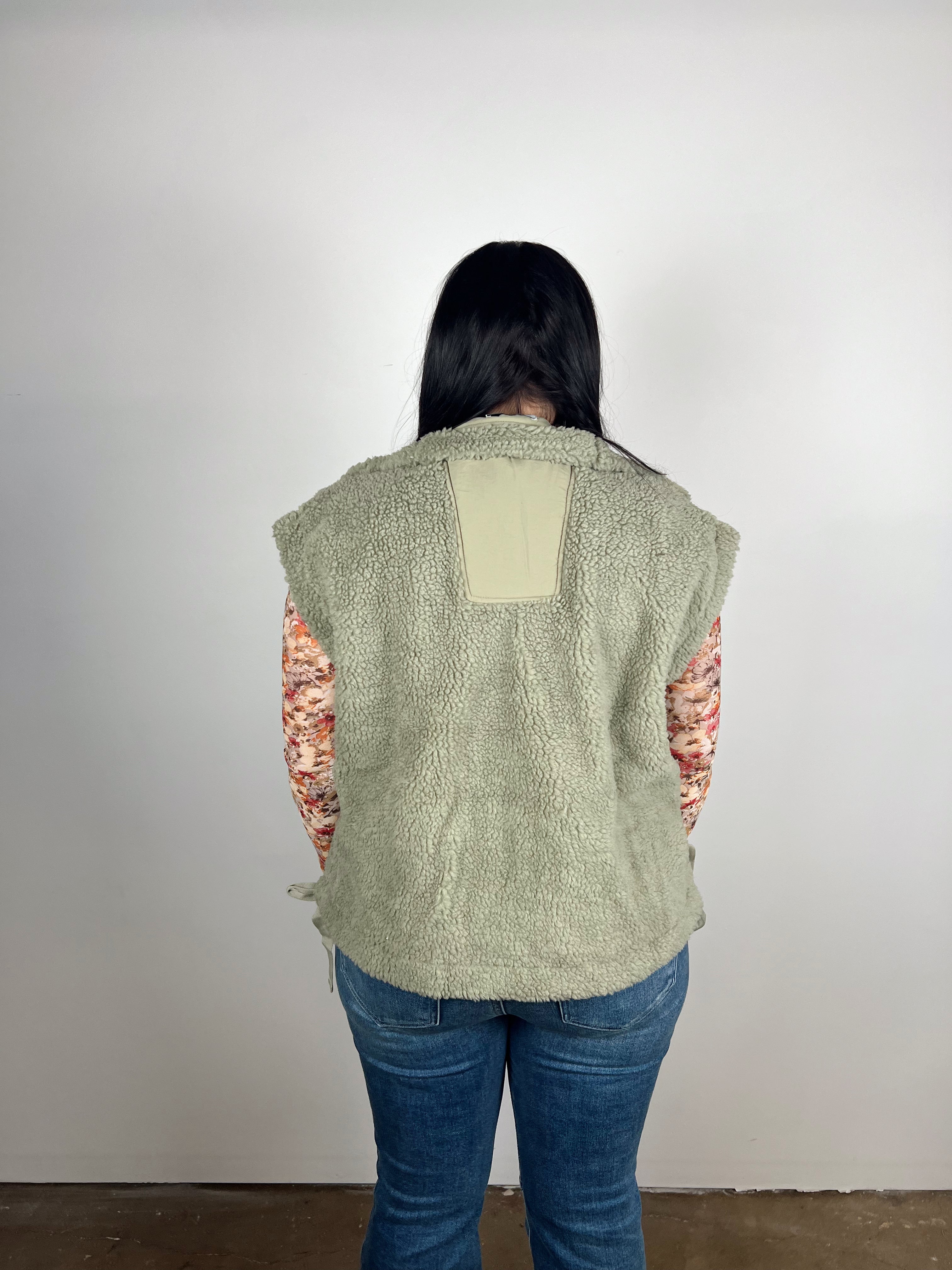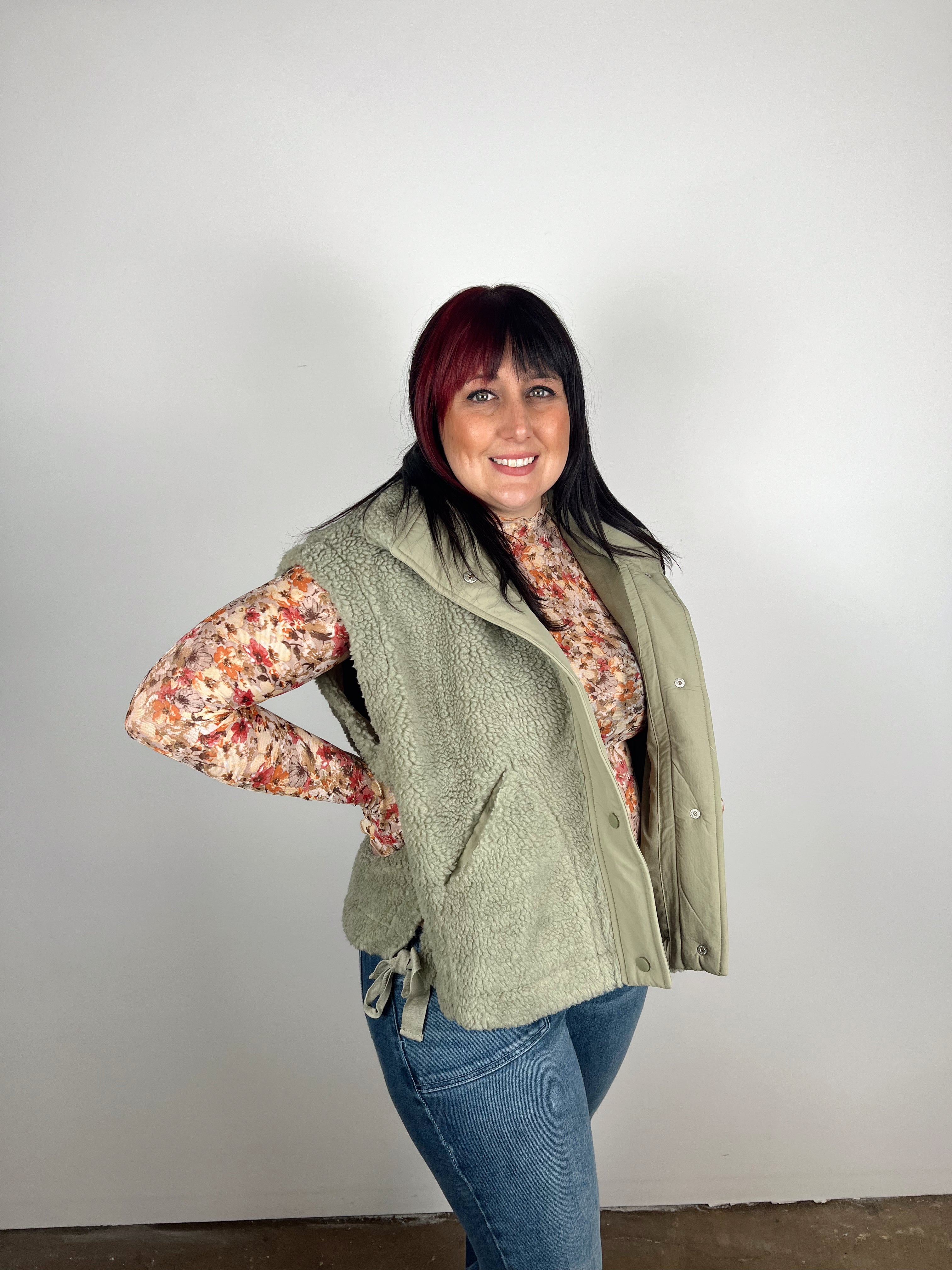 Wrap yourself in warmth and style with this ultra-soft sherpa vest in a dreamy sage hue. Designed with a plush teddy texture, side tie details, and snap-button closure, it’s the perfect blend of casual comfort and modern flair. Layer it over your favorite turtlenecks, flannels, or long sleeves for that effortlessly cozy-girl vibe that looks as good as it feels.