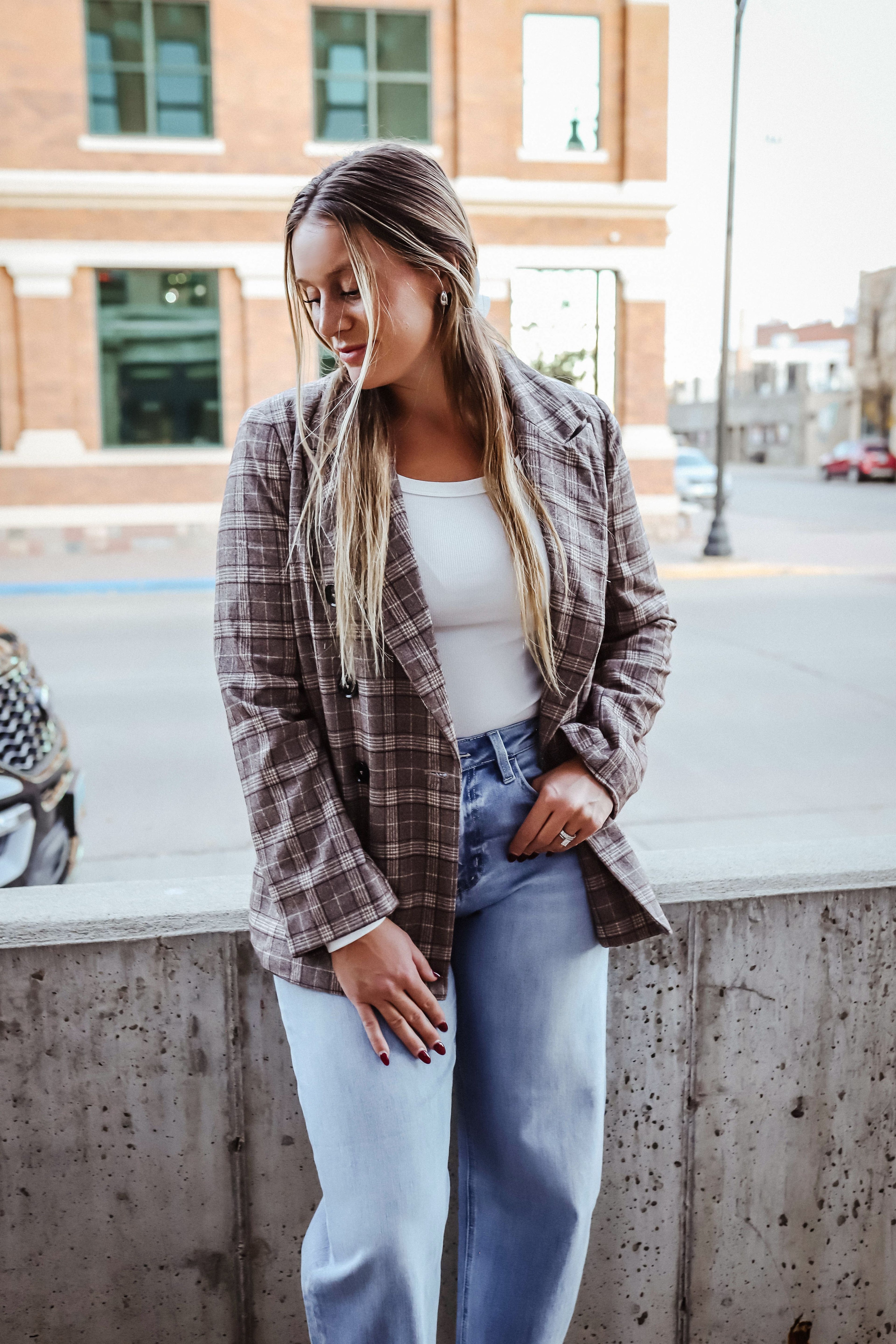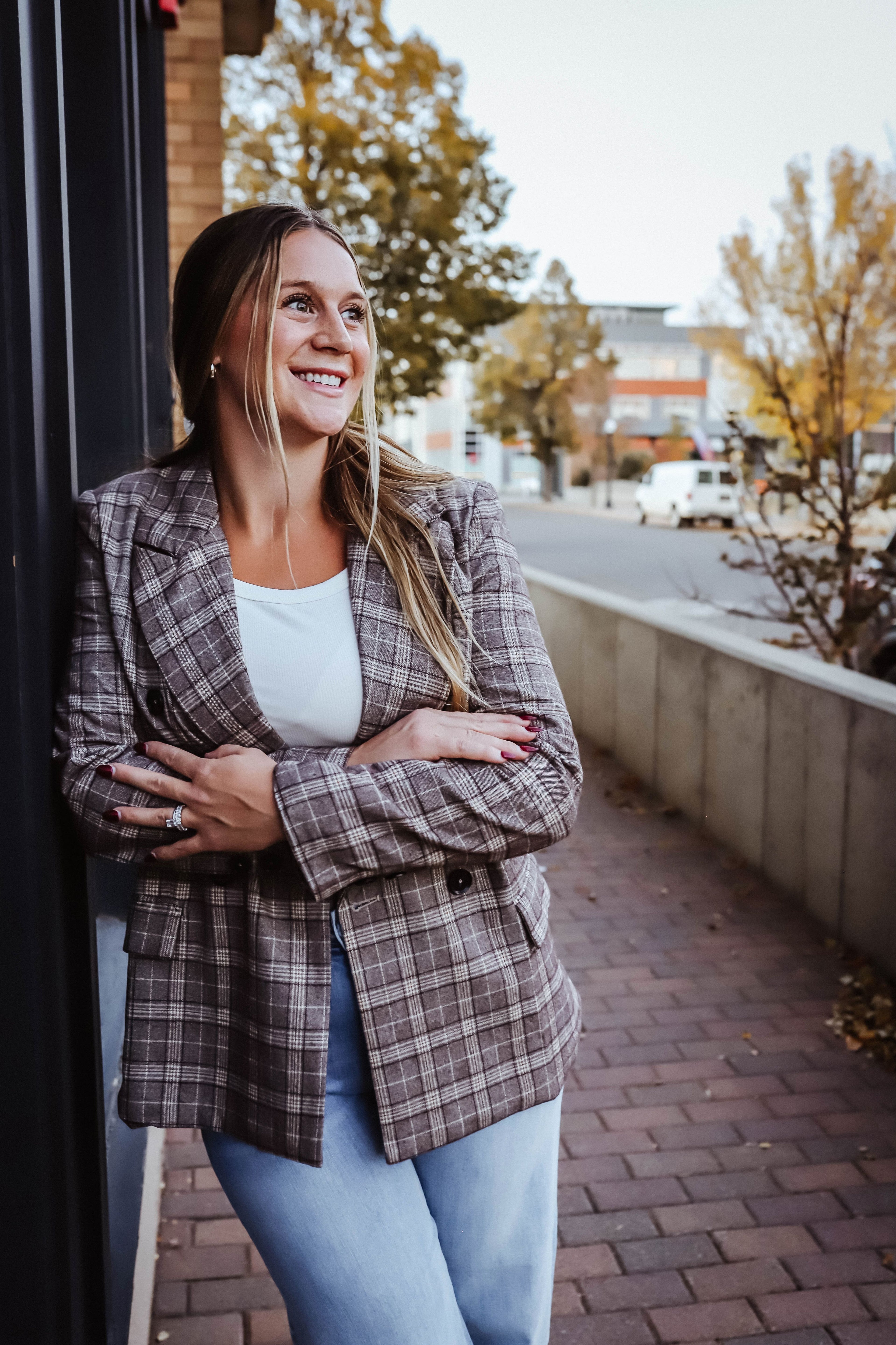 Upgrade your wardrobe with our {Smoky Hazel Plaid Blazer.} Crafted from premium-quality fabric for a luxe feel and lasting durability, this blazer offers a structured fit and classic plaid pattern. Perfect for layering over blouses or knits, it's a timeless piece that transitions effortlessly from work to weekend chic.