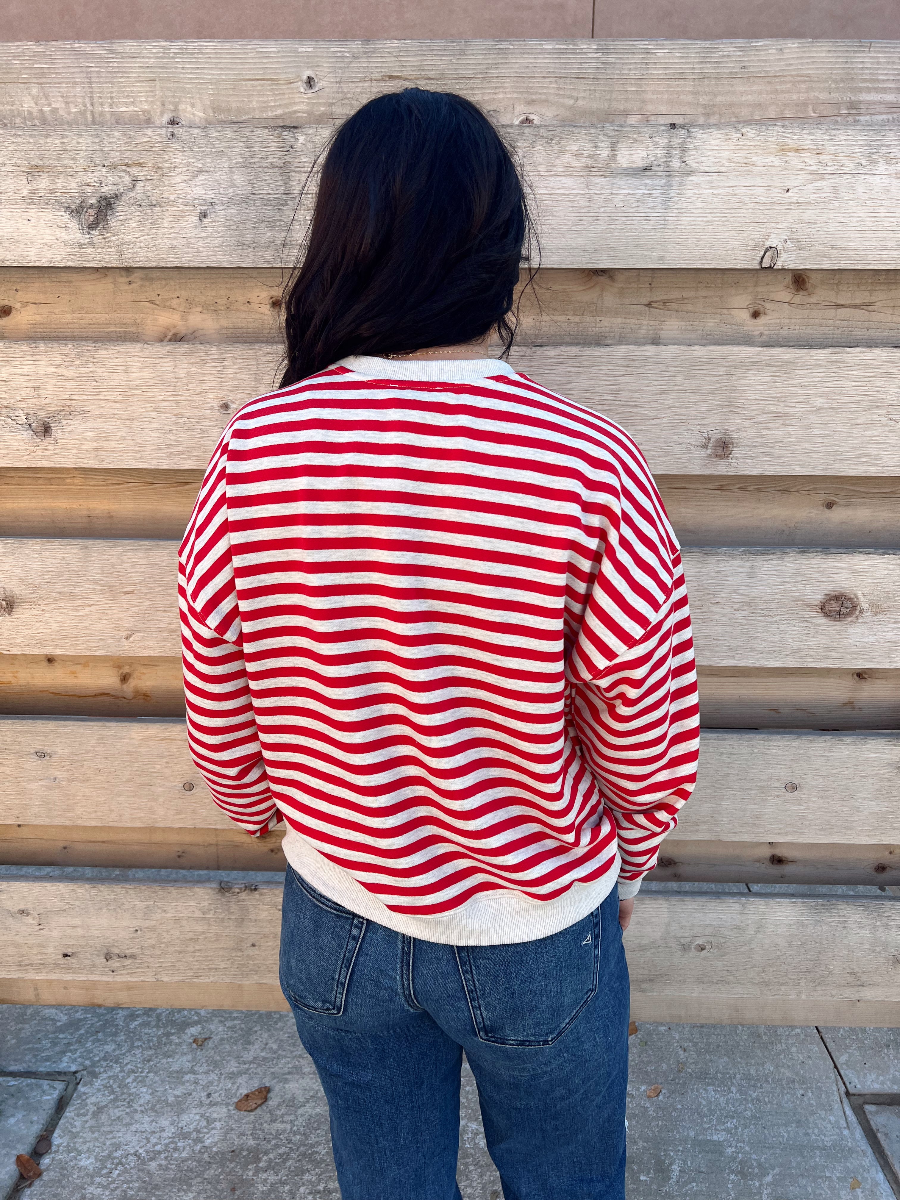 Classic stripes, cozy vibes- the perfect throw-on sweatshirt for any day of the week. Grab yours before it's gone!