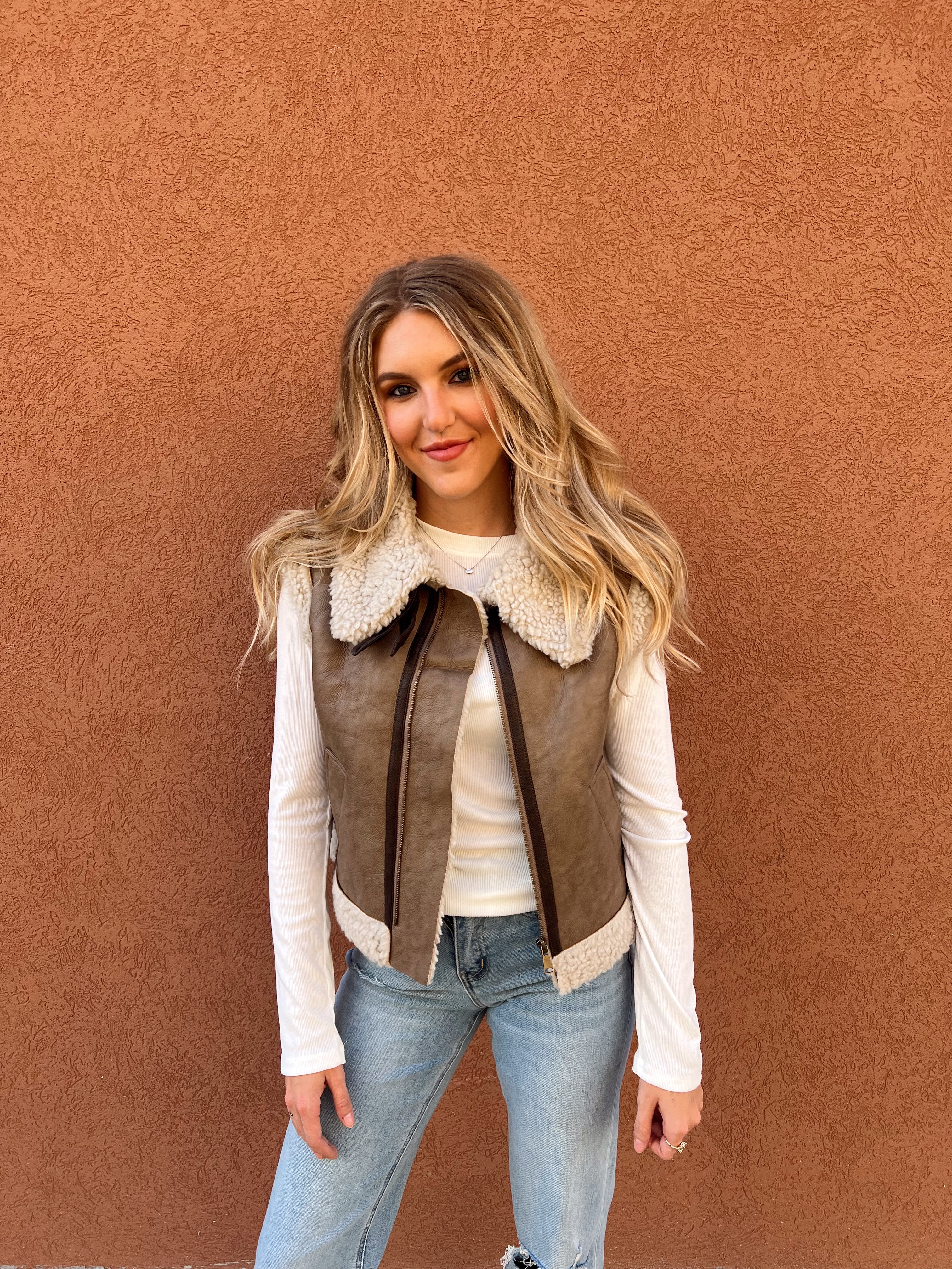 Your new fall layering obsession is here- cozy, chic, and made to turn heads. Add this faux suede vest to your cart before it's gone!