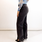 These washed-black straight leg jeans bring that perfect blend of structure and stretch, giving you a long, clean silhouette with a subtly edgy vibe. Designed with a flattering high rise and chic front slits, they elevate every outfit from daytime casual to dinner-ready polished.