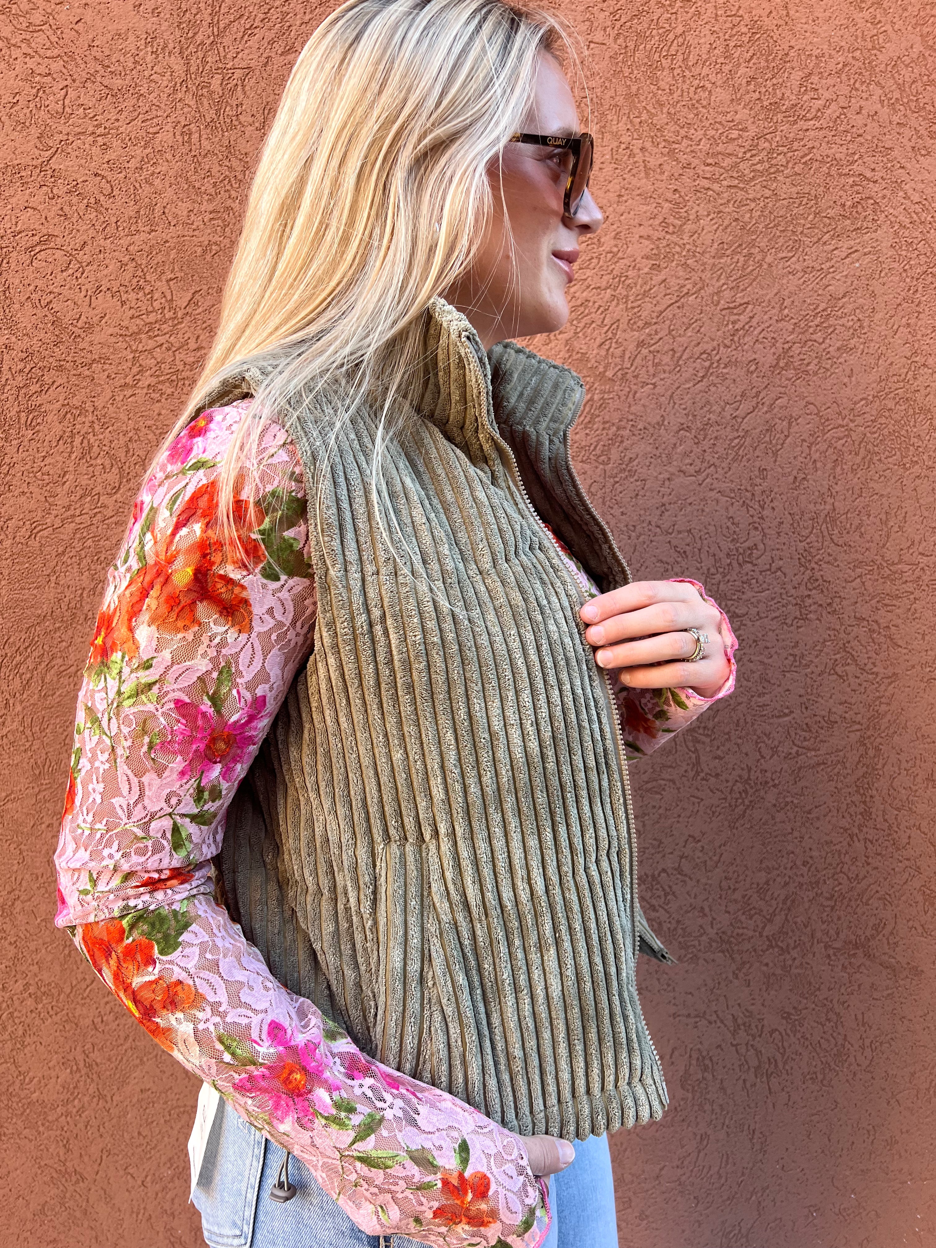 Stay warm, stay stylish- this corded vest is the cozy layer your fall wardrobe has been missing. Grab it now!