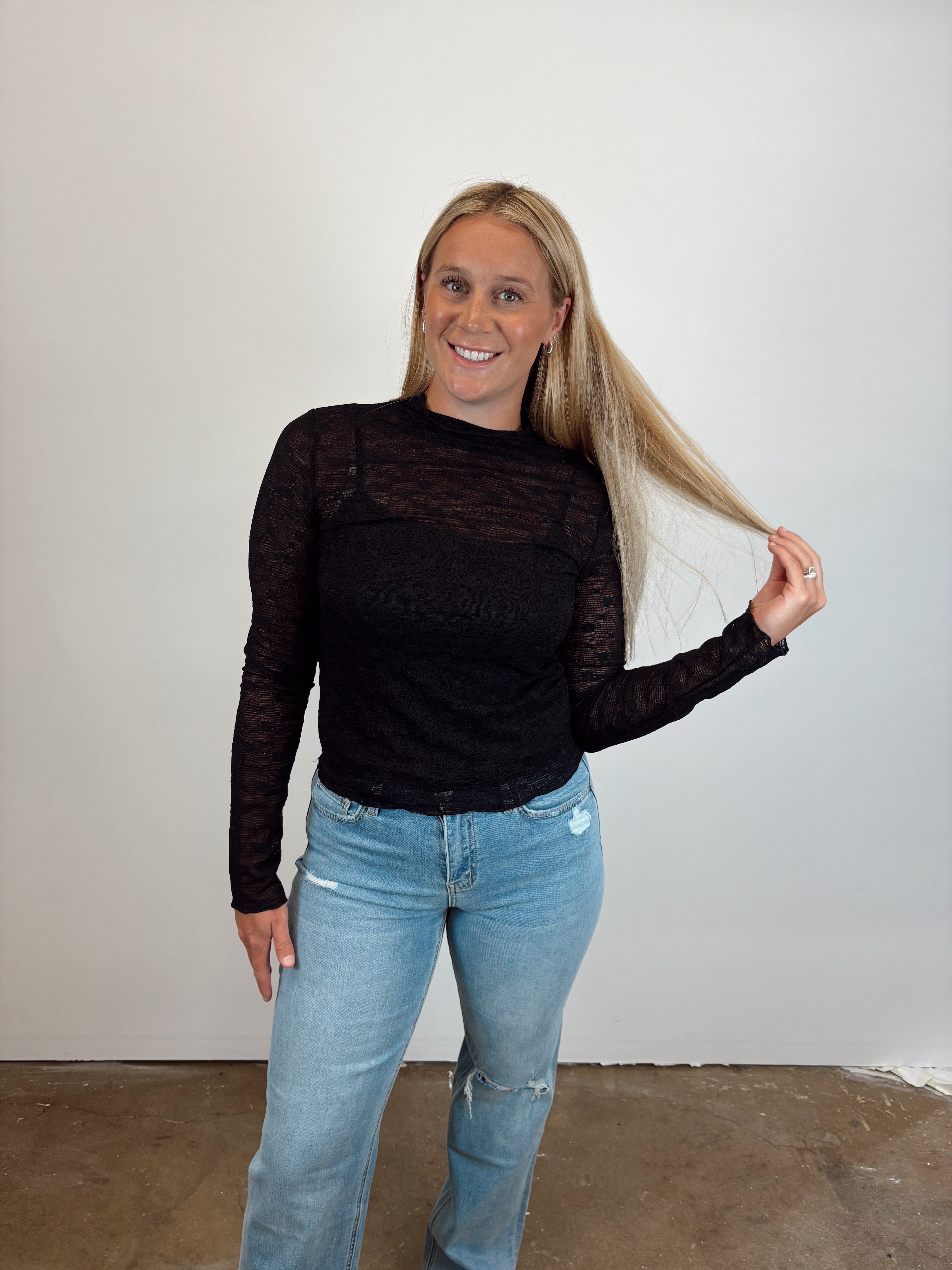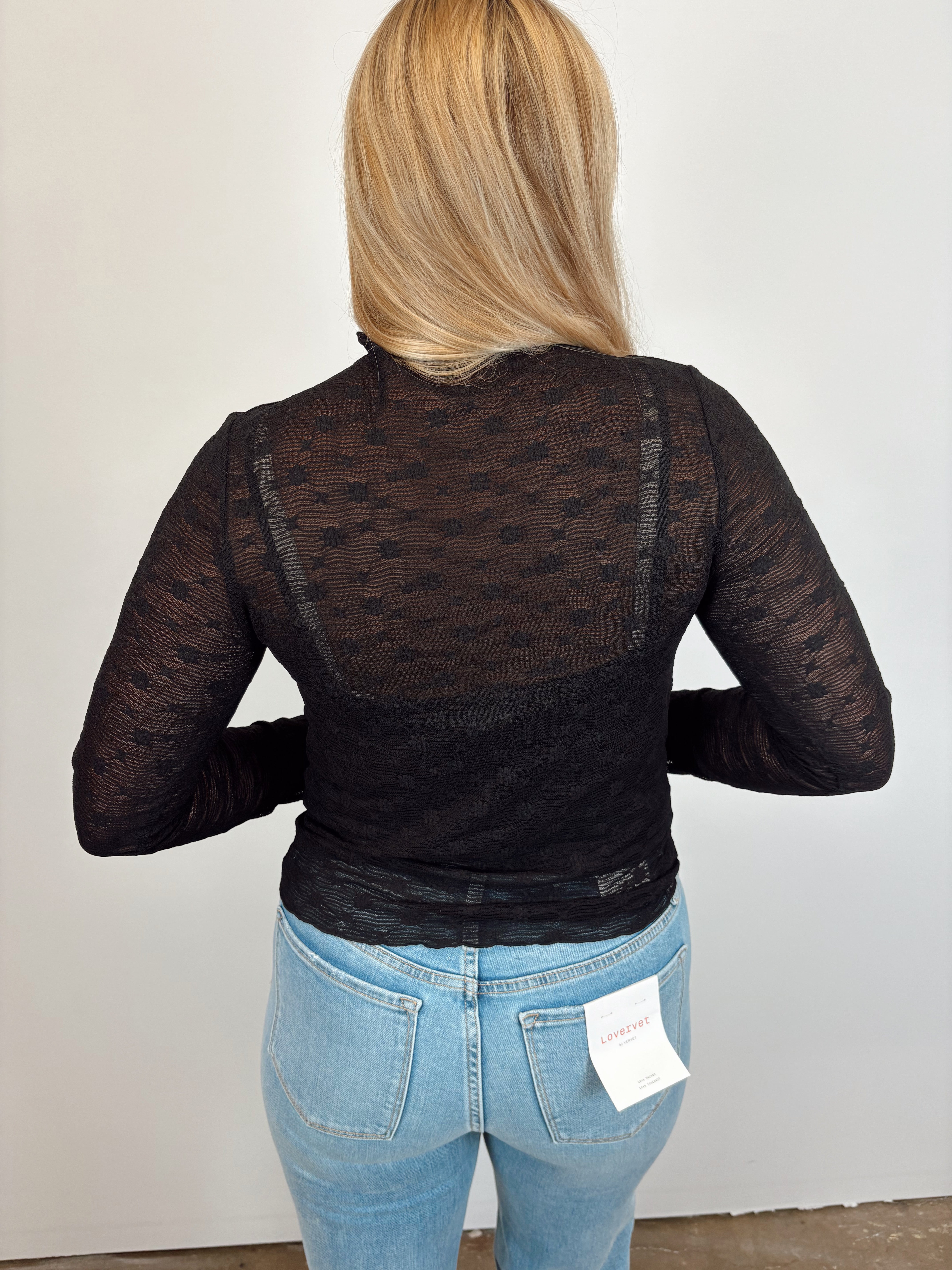 Elegance meets ease in this beautifully crafted long sleeve lace top. Designed with intricate, high-quality lace and a built-in tank for added coverage, it’s the perfect balance of delicate and practical. The sheer sleeves add a soft, romantic touch while the flattering silhouette keeps it polished. Whether you dress it up with trousers or keep it casual with denim, this top brings elevated style to any occasion—no layering required.