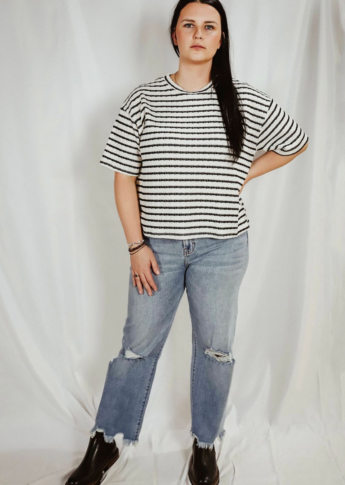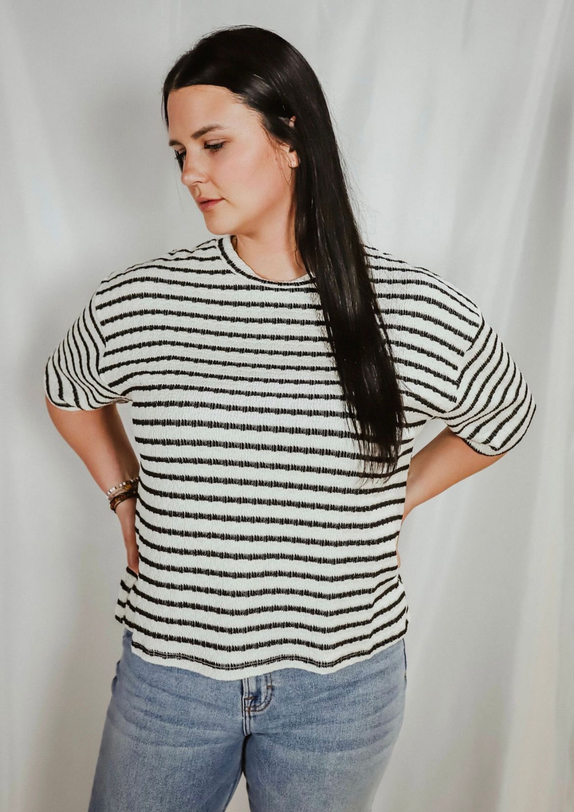 Elevate your everyday style with our Luxe Weave Crew Top! This wardrobe essential features classic stripes and a comfortable fit, perfect for layering or wearing on its own. Dress it up with a blazer or keep it casual with jeans- either way, it's a timeless piece you'll reach for again and again.