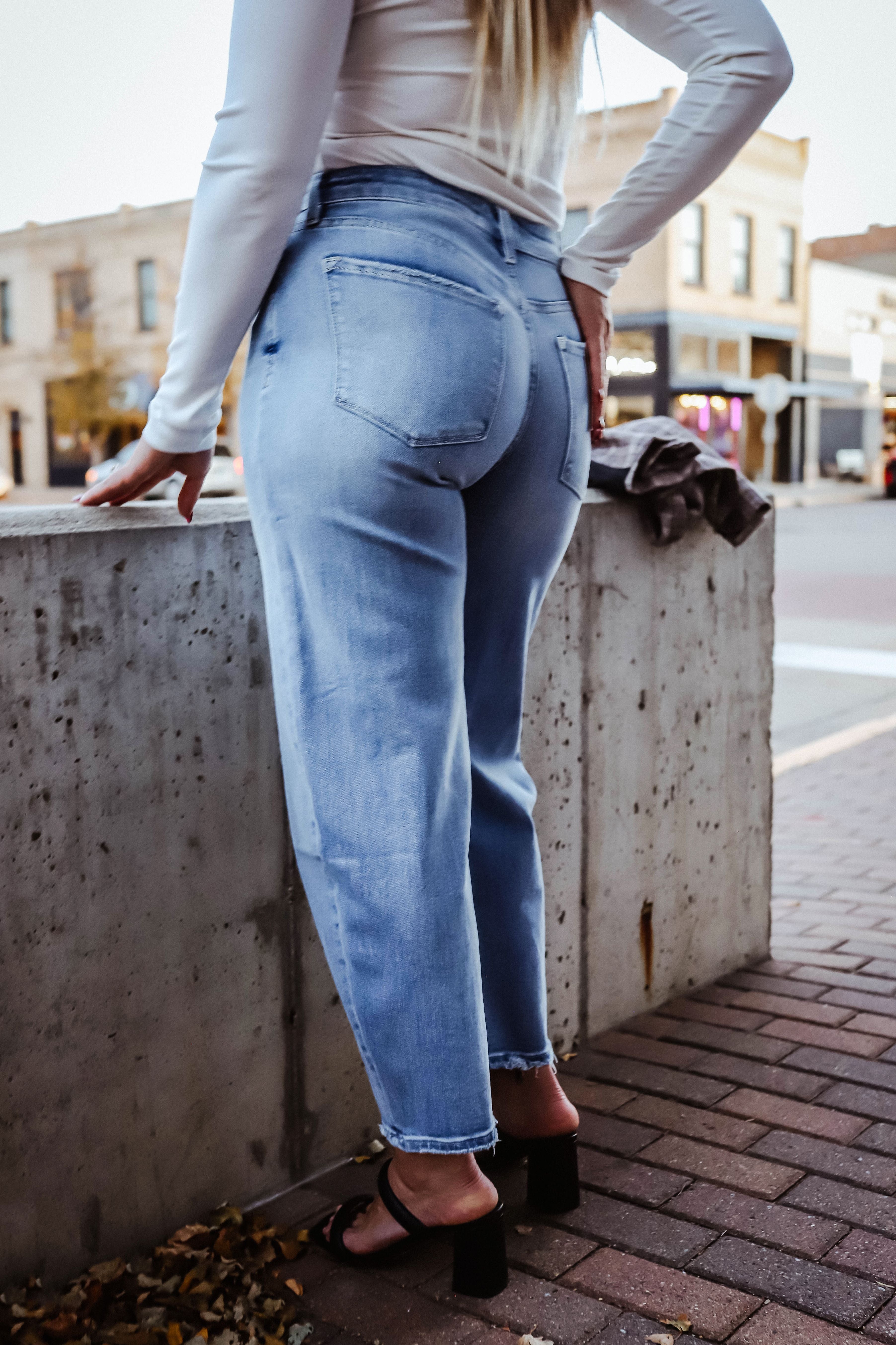 High Rise / Barrel / Ankle Length / Comfort Stretch Denim
