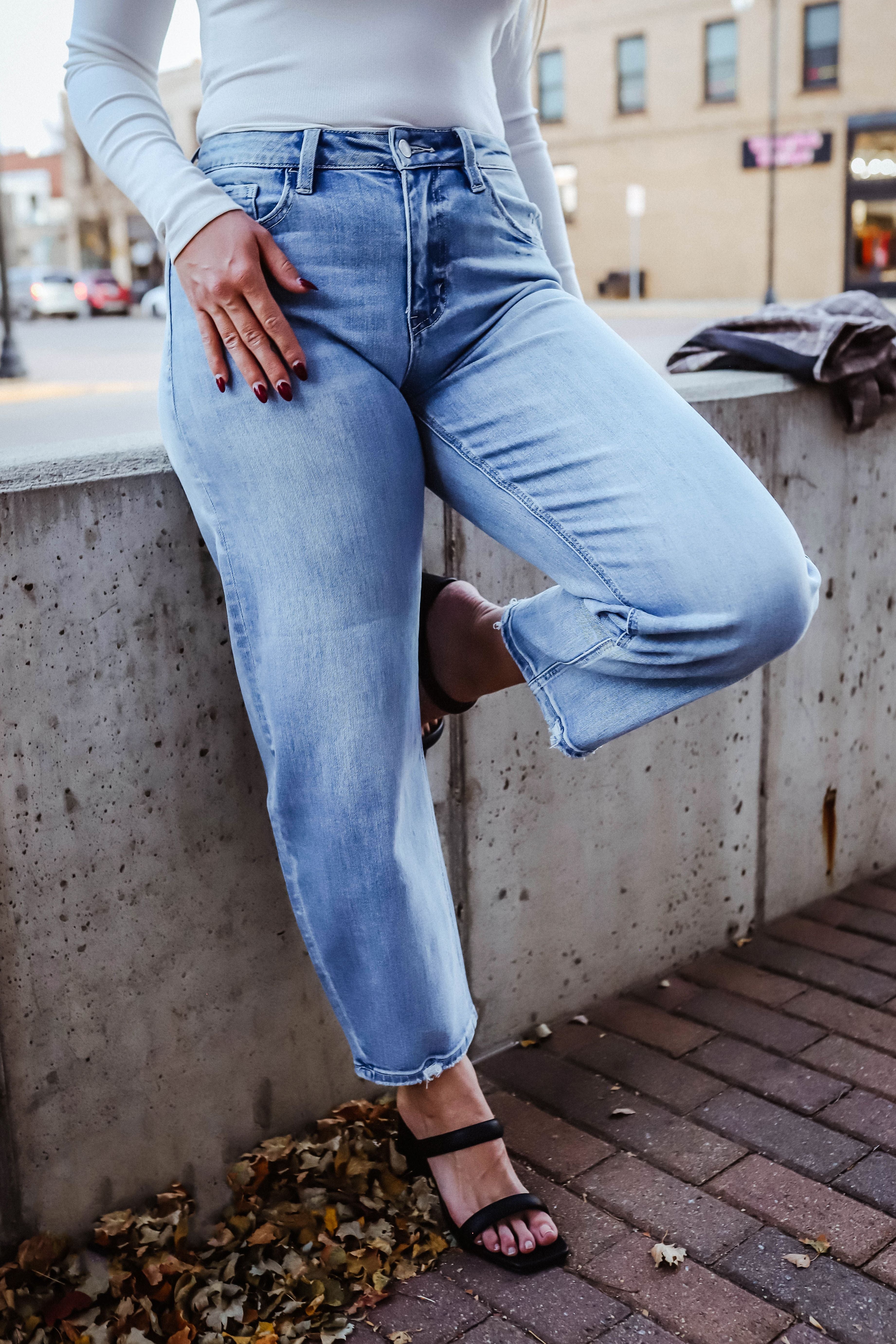Unique, curved leg silhouette and a clean, no-holes design, these jeans blend modern style with touch of vintage flair. With a comfortable high-rise fit, they're perfect for creating effortlessly chic looks, whether dressed up or down.