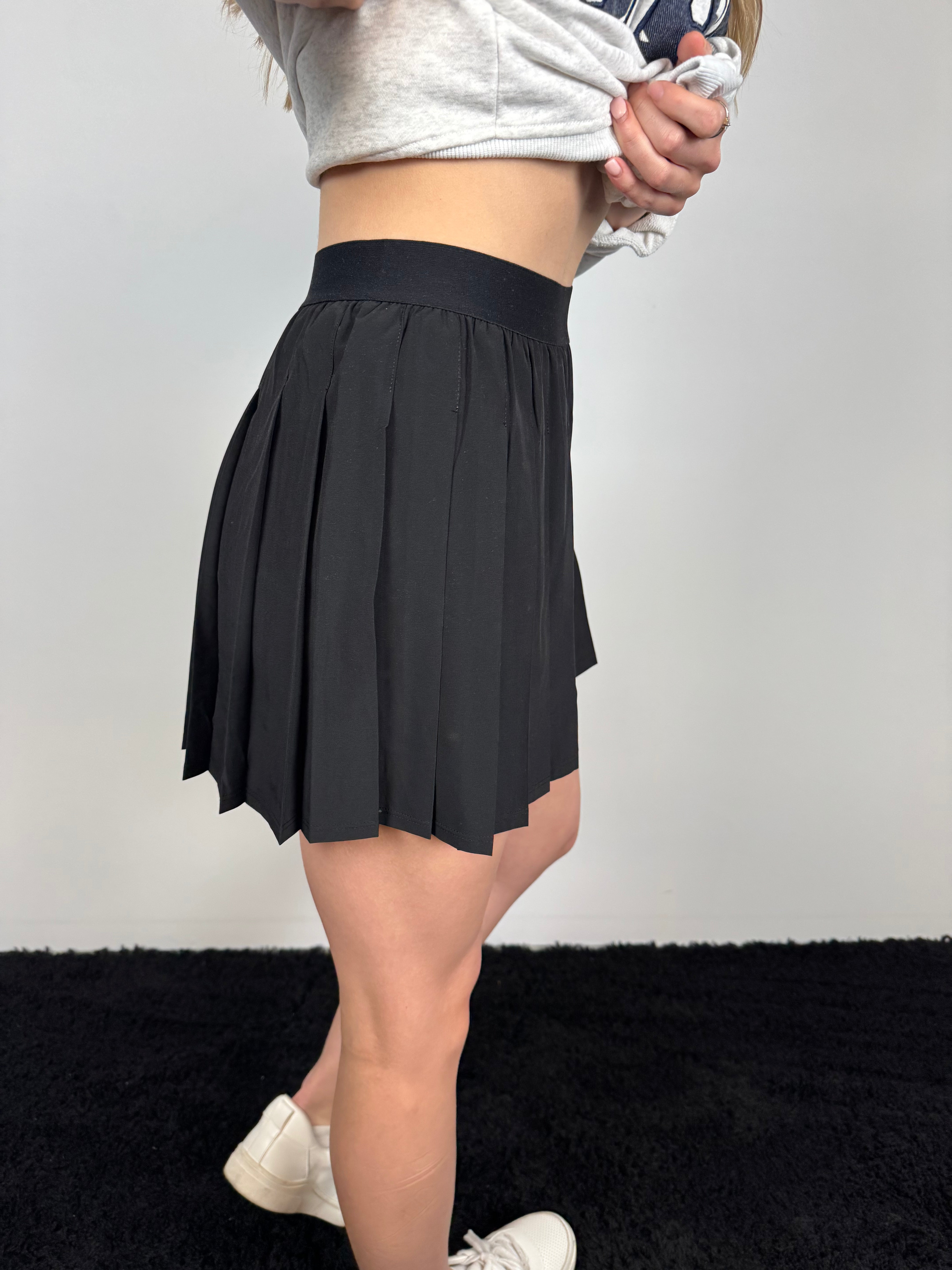 Serve sporty-chic vibes in this pleated tennis skort, complete with built-in shorts for comfort and style on or off the court.