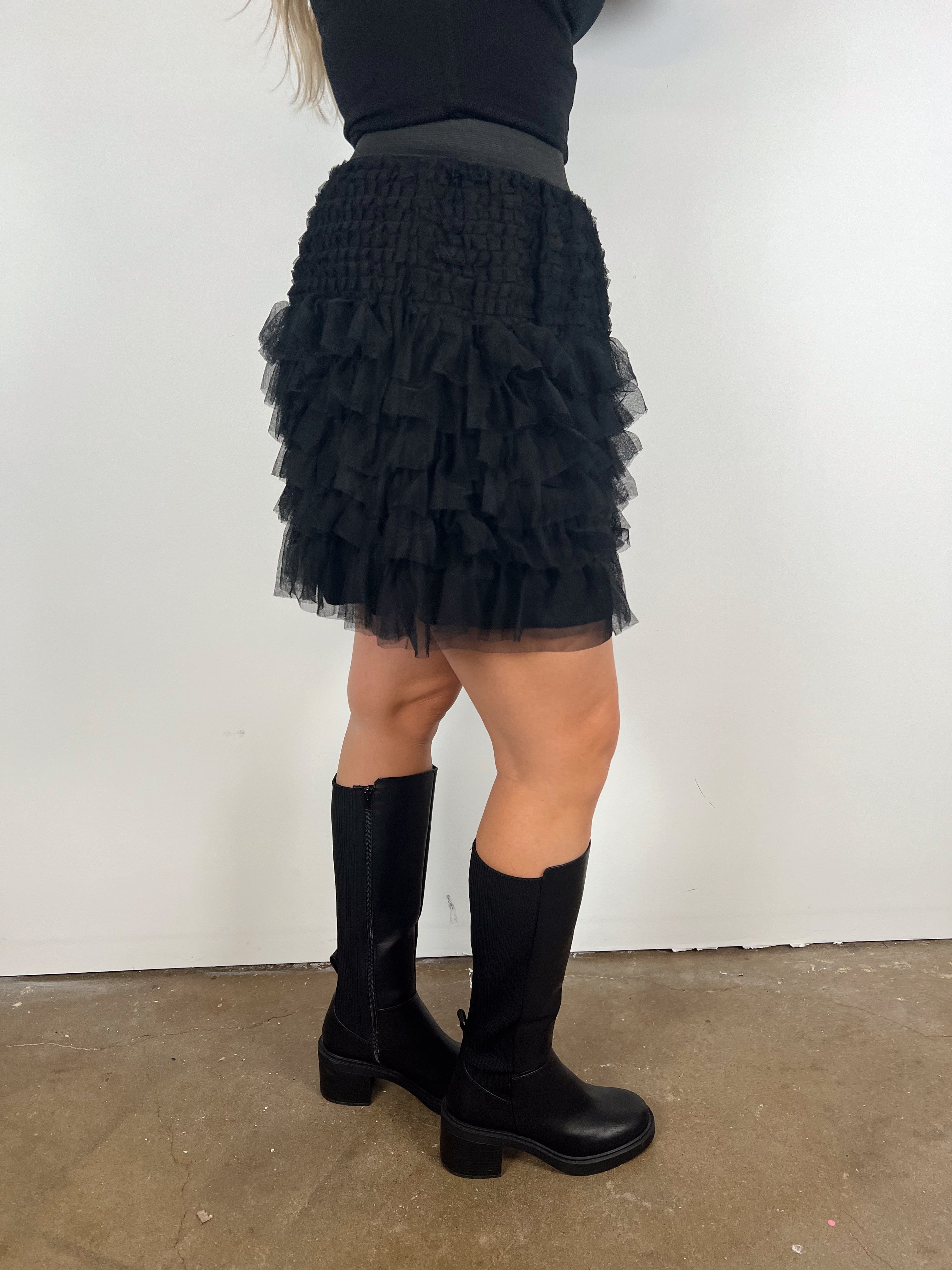 Bring all the fun and flair with this tiered ruffle mini skirt — the perfect statement piece for holiday parties, girls’ nights, and any moment you want to feel extra cute. Layers of soft, airy tulle create gorgeous movement with every step, while the stretchy waistband keeps it comfortable and easy to wear.