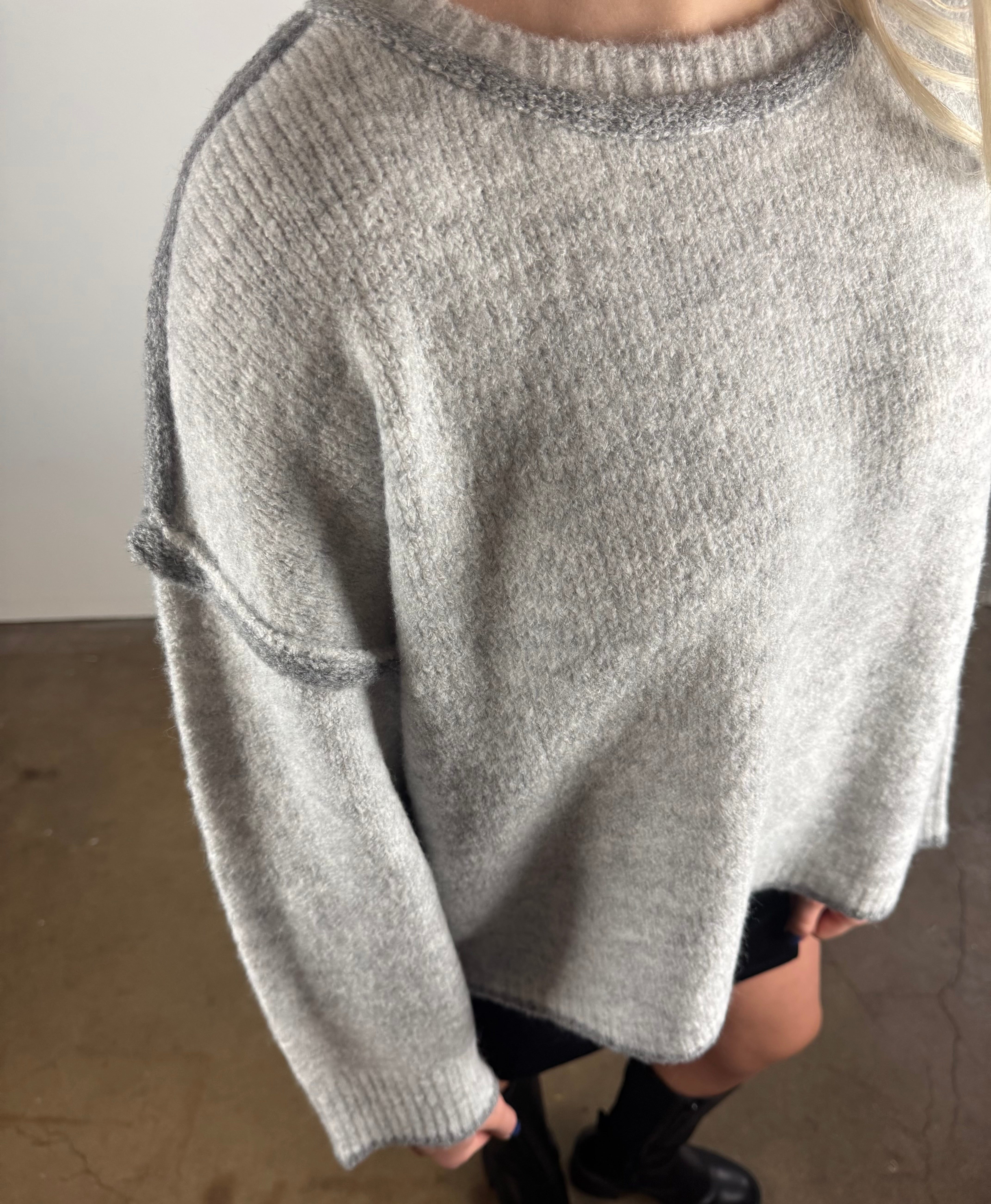 This heather grey sweater is the definition of easy, throw-on style—soft, slouchy, and perfectly relaxed. With exposed seam details and a slightly oversized fit, it gives that cool, effortless vibe while keeping you cozy all season long.