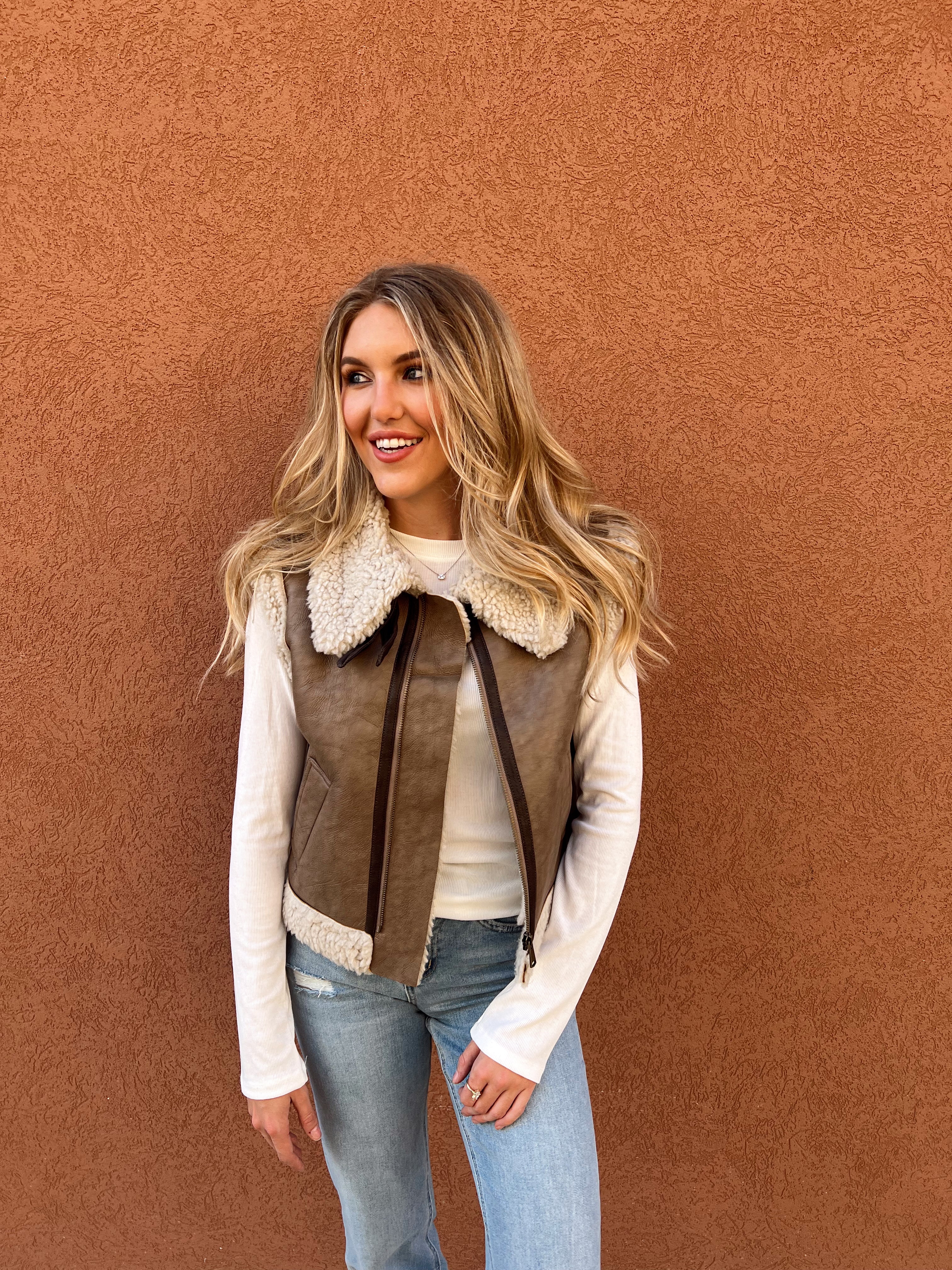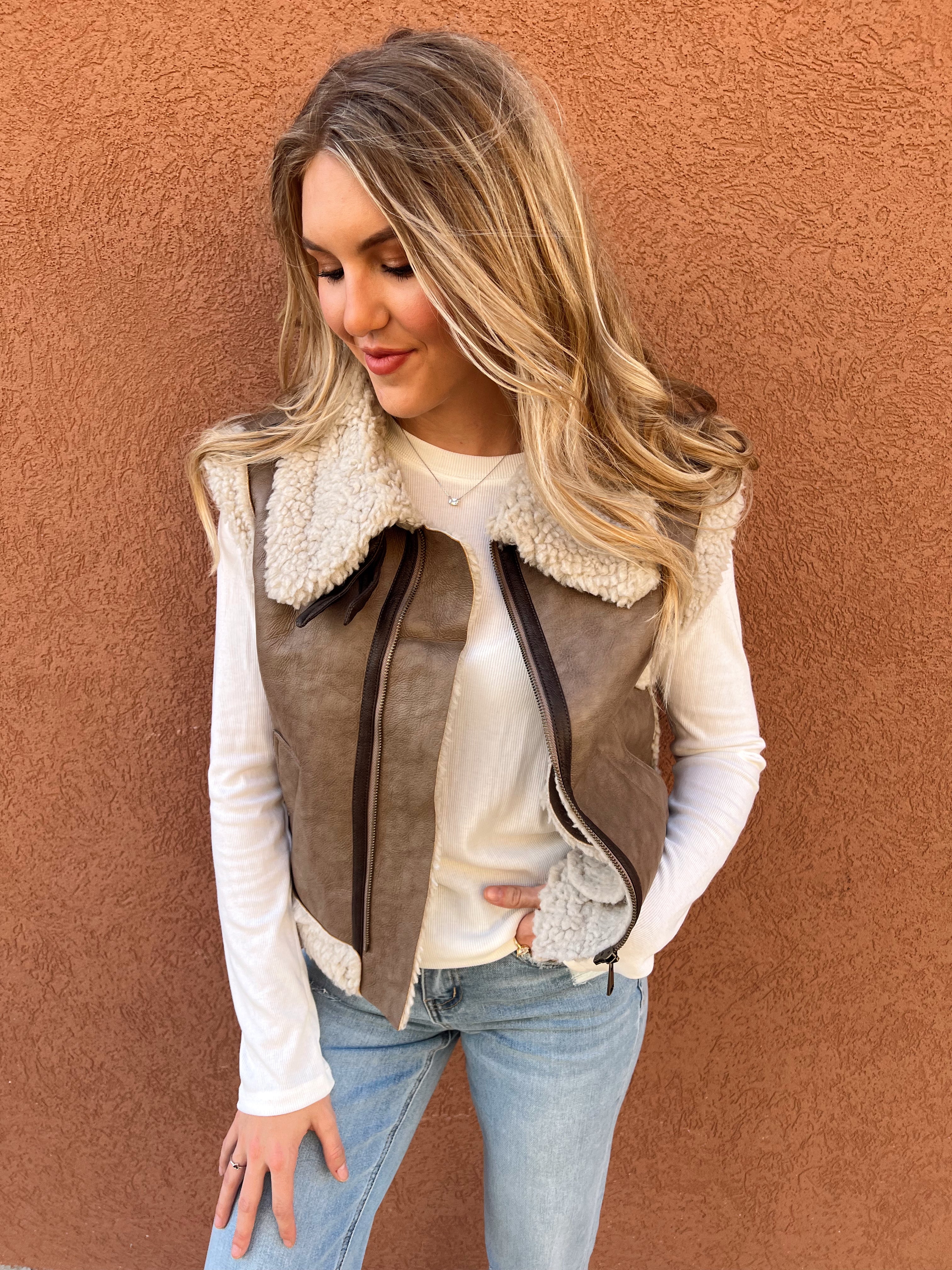 Your new fall layering obsession is here- cozy, chic, and made to turn heads. Add this faux suede vest to your cart before it's gone!